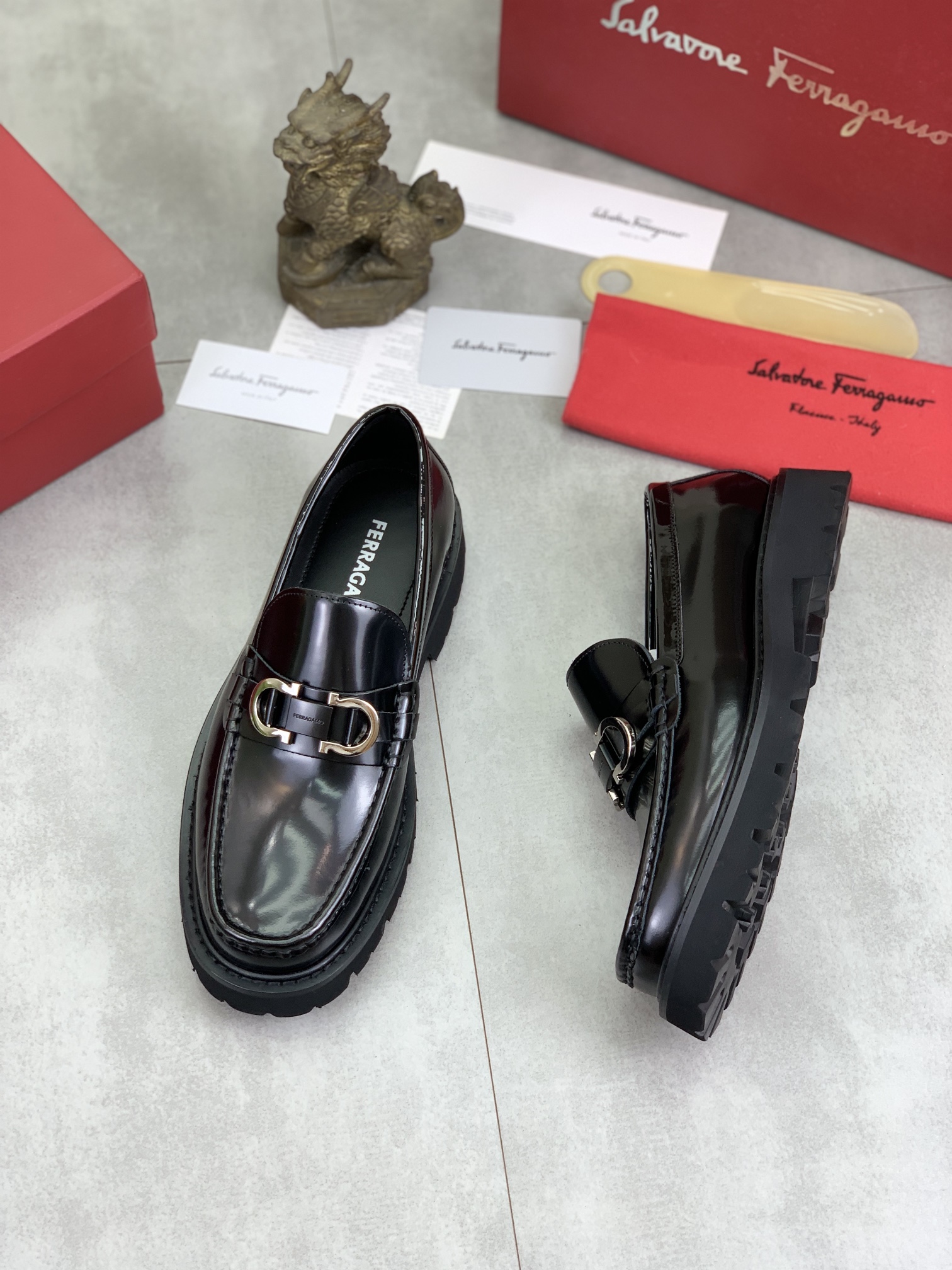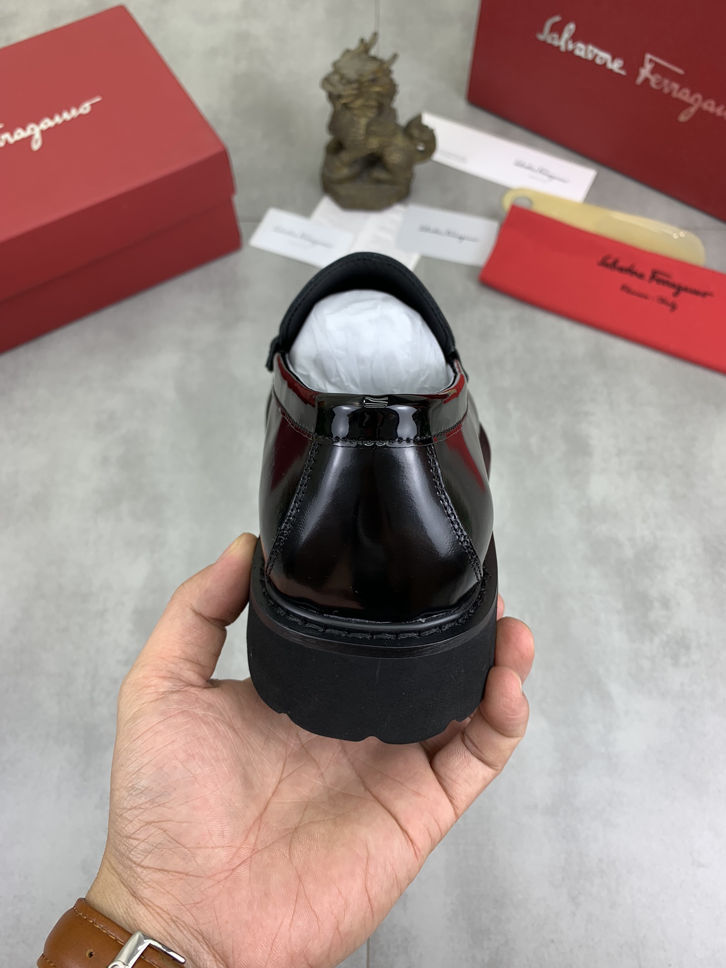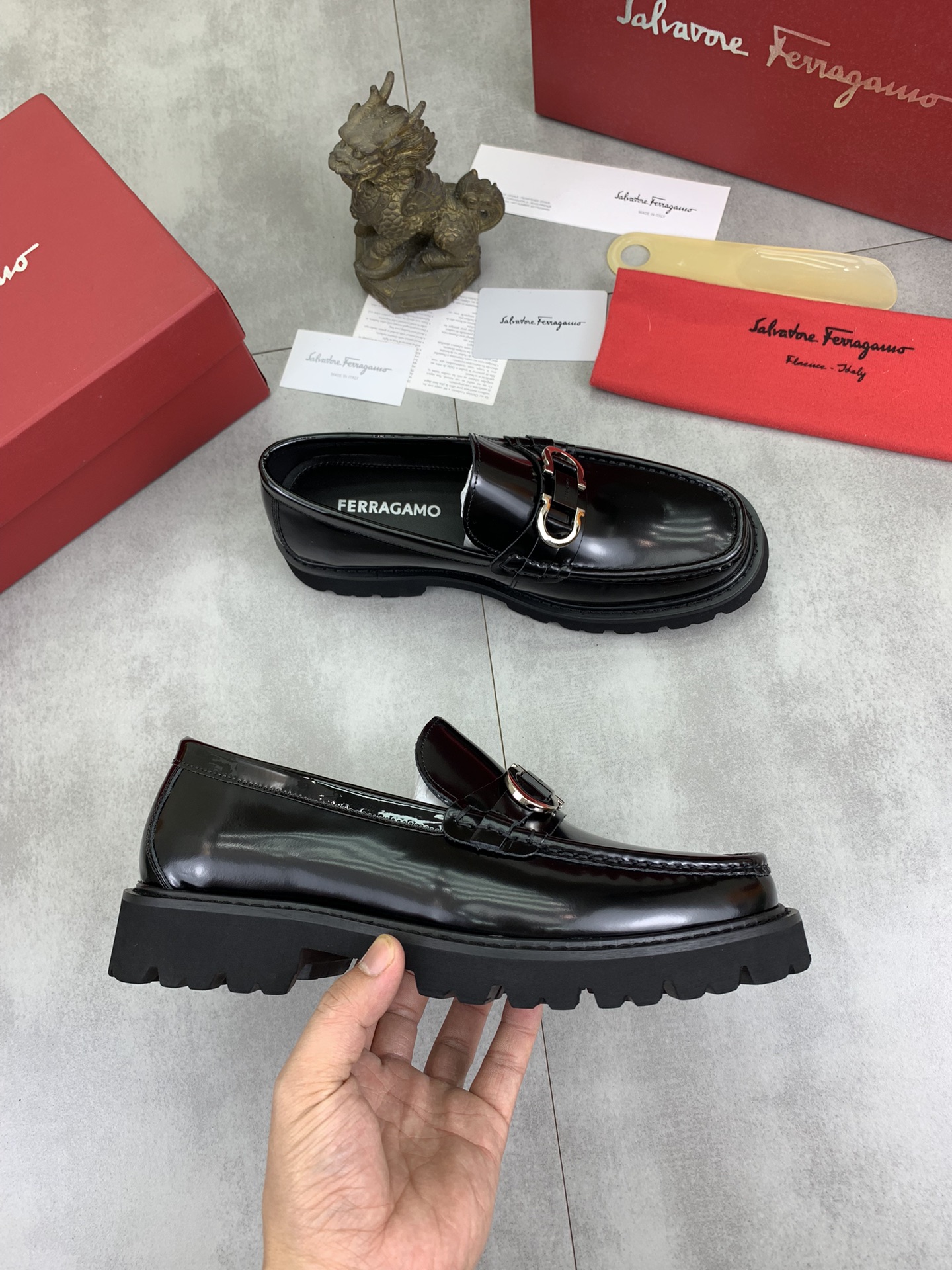 这款鞋子是AAAAA 1:1 质量 (非常棒). 使用了和原版一模一样的材料. 商标部分也保持了和菲拉格慕/Salvatore Ferragamo一样. 图片拍摄是实物鞋子拍摄, 您所收到的实物保证和我们图片一模一样.