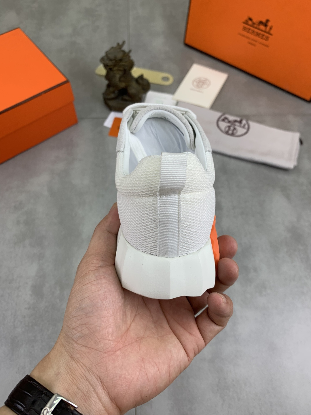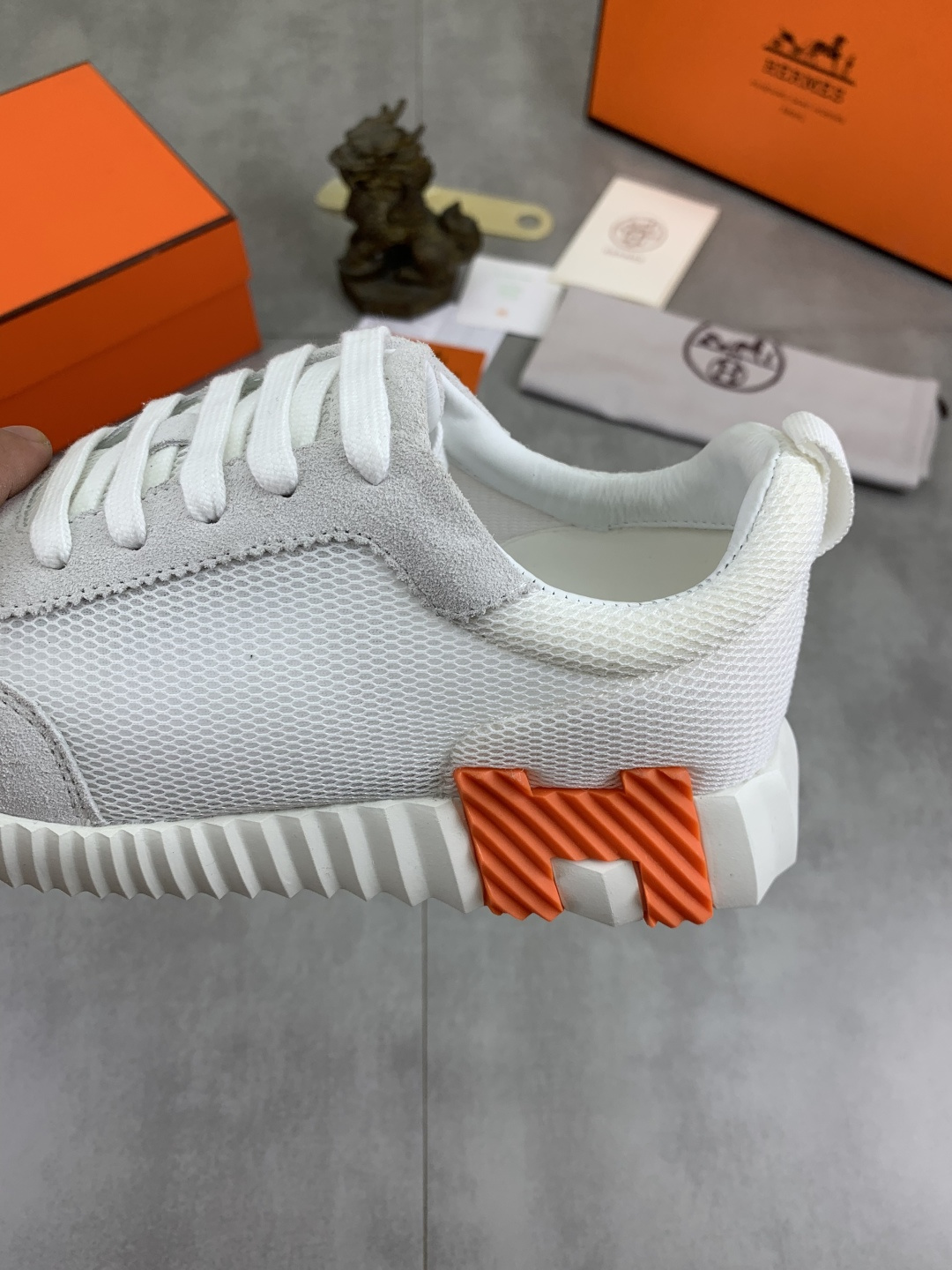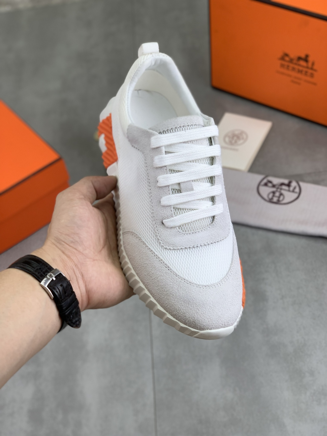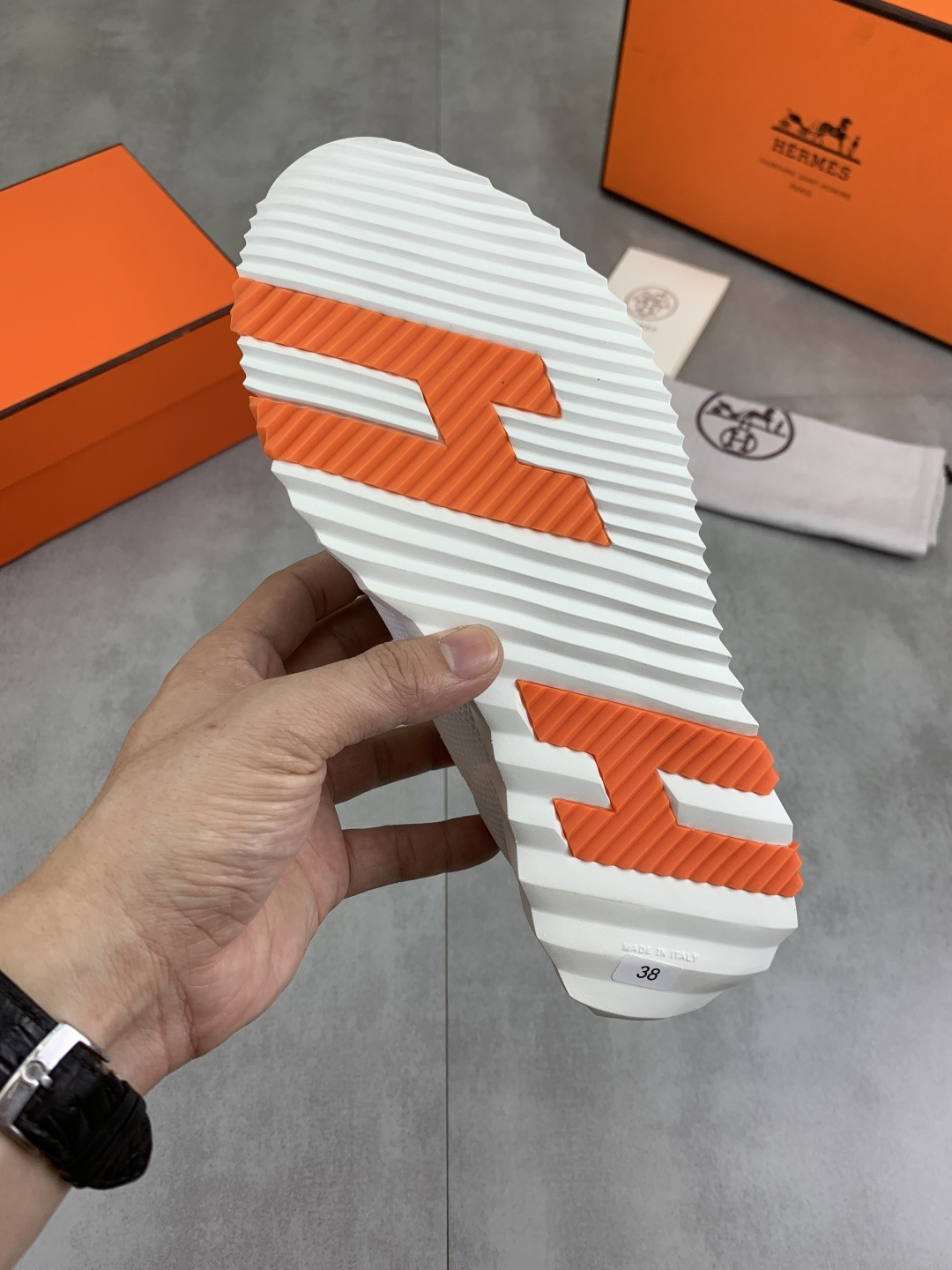 这款鞋子是AAAAA 1:1 质量 (非常棒). 使用了和原版一模一样的材料. 商标部分也保持了和爱马仕/Hermes一样. 图片拍摄是实物鞋子拍摄, 您所收到的实物保证和我们图片一模一样.