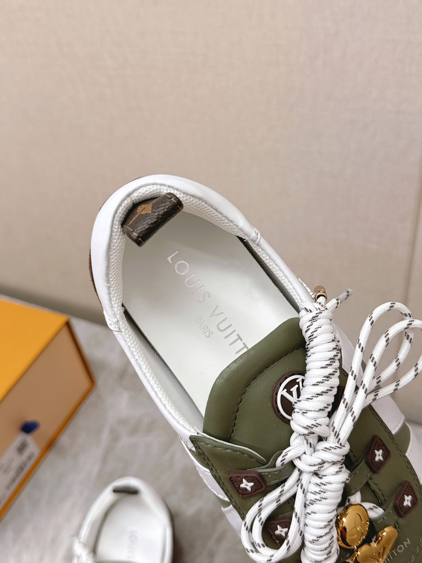这款鞋子是AAAAA 1:1 质量 (非常棒). 使用了和原版一模一样的材料. 商标部分也保持了和路易威登/Louis Vuitton一样. 图片拍摄是实物鞋子拍摄, 您所收到的实物保证和我们图片一模一样.