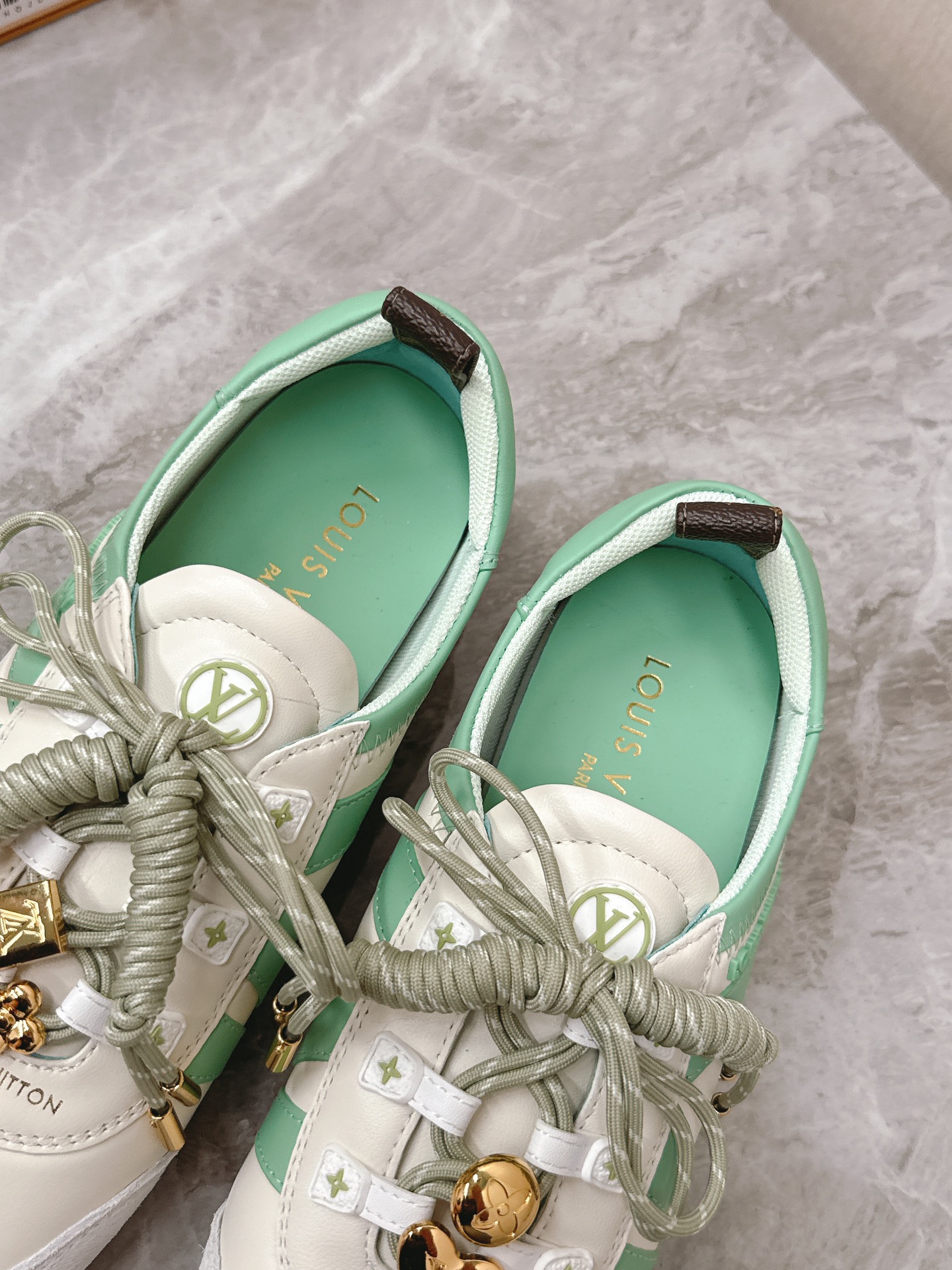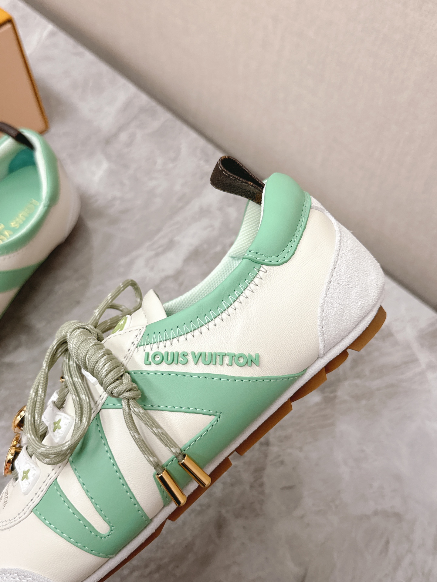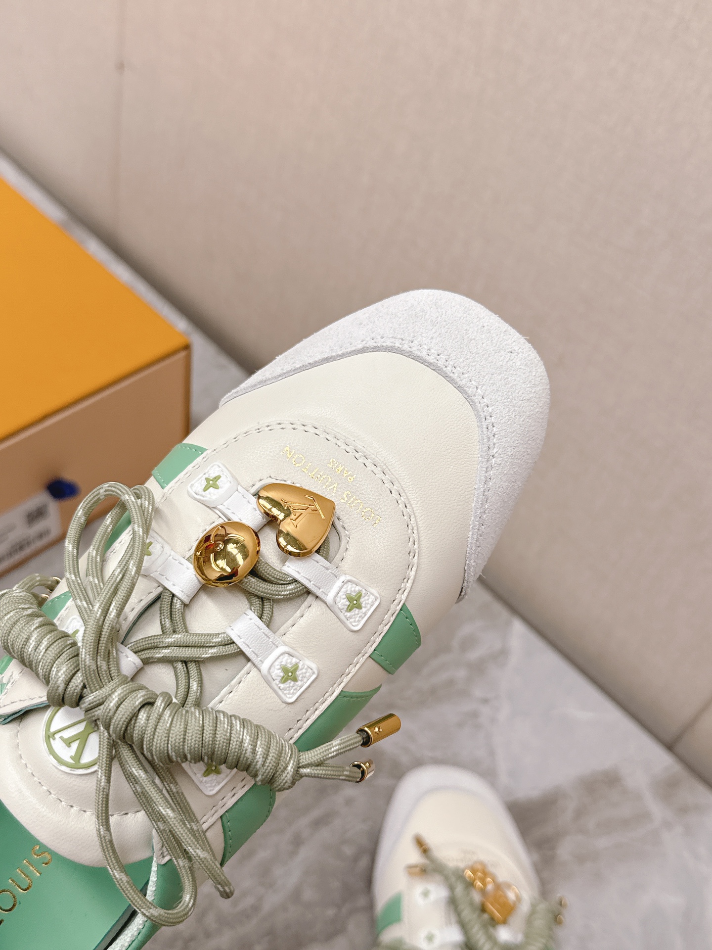 这款鞋子是AAAAA 1:1 质量 (非常棒). 使用了和原版一模一样的材料. 商标部分也保持了和路易威登/Louis Vuitton一样. 图片拍摄是实物鞋子拍摄, 您所收到的实物保证和我们图片一模一样.