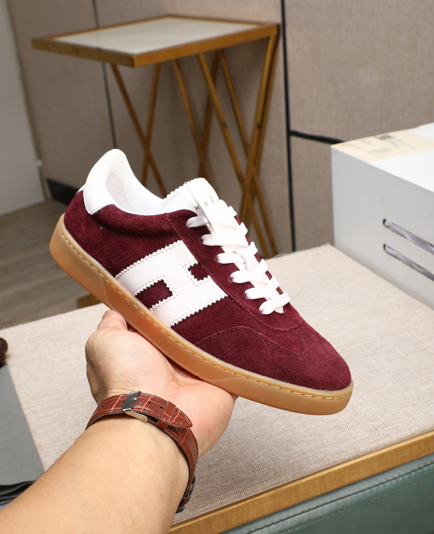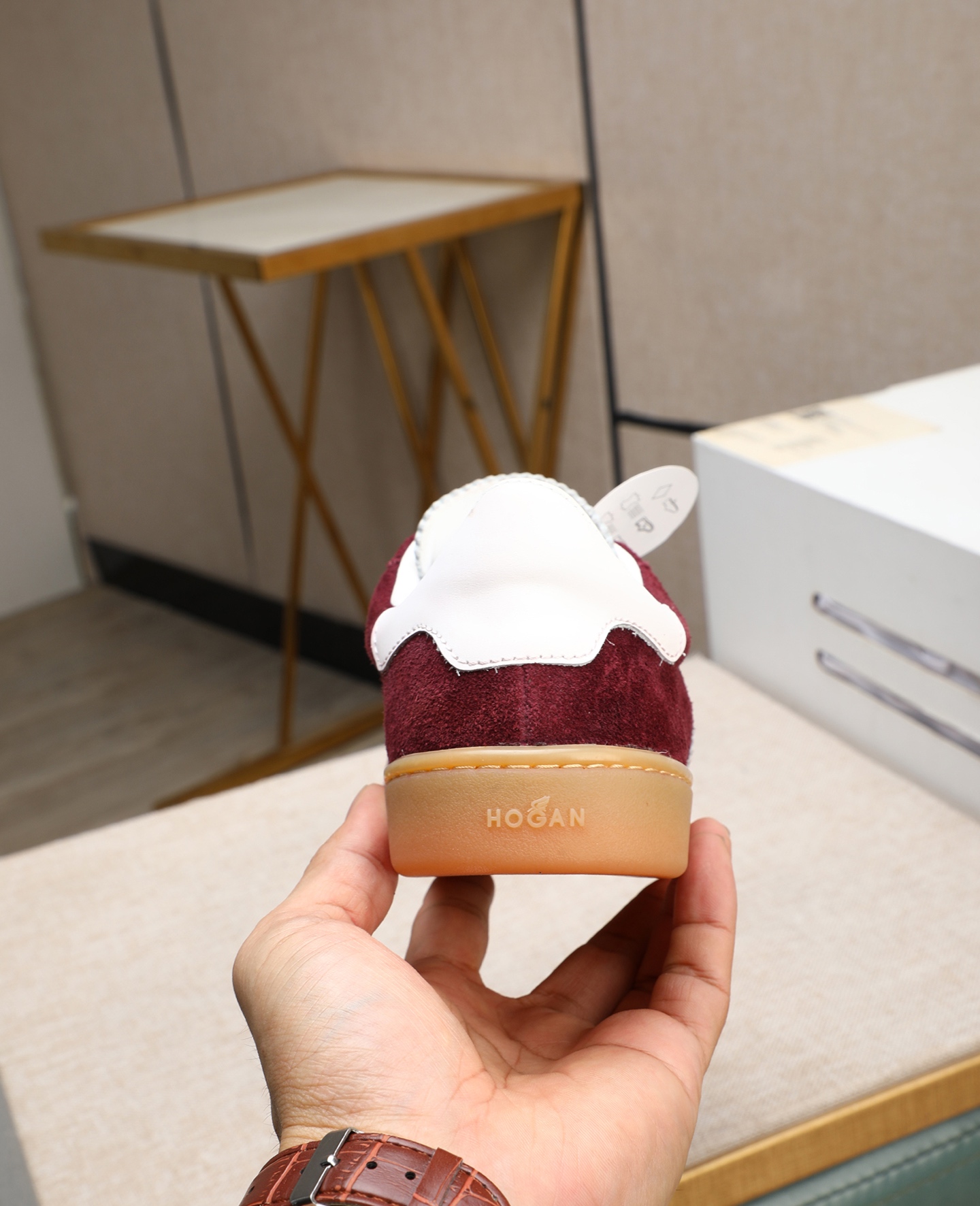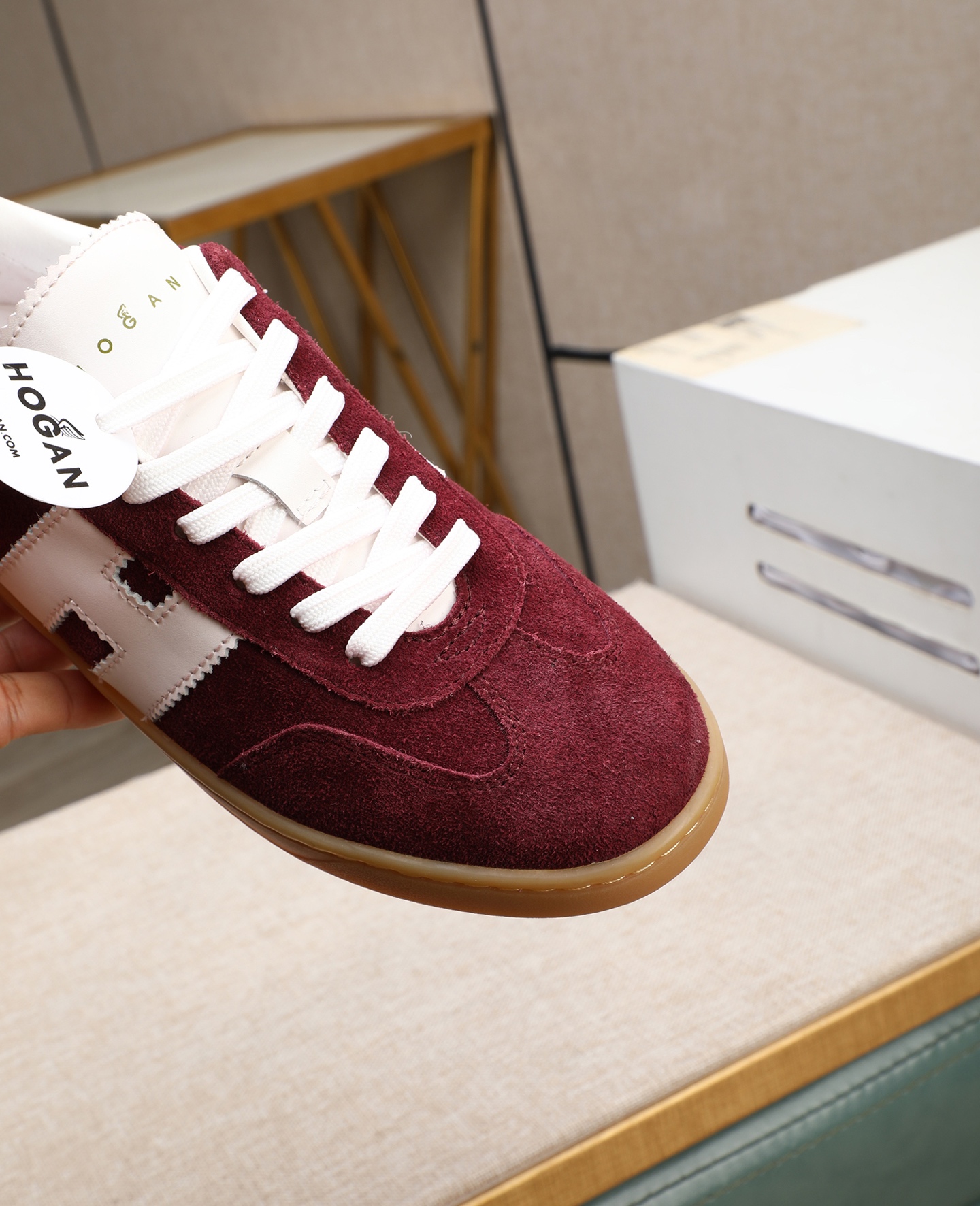 这款鞋子是AAAAA 1:1 质量 (非常棒). 使用了和原版一模一样的材料. 商标部分也保持了和Hogan一样. 图片拍摄是实物鞋子拍摄, 您所收到的实物保证和我们图片一模一样.