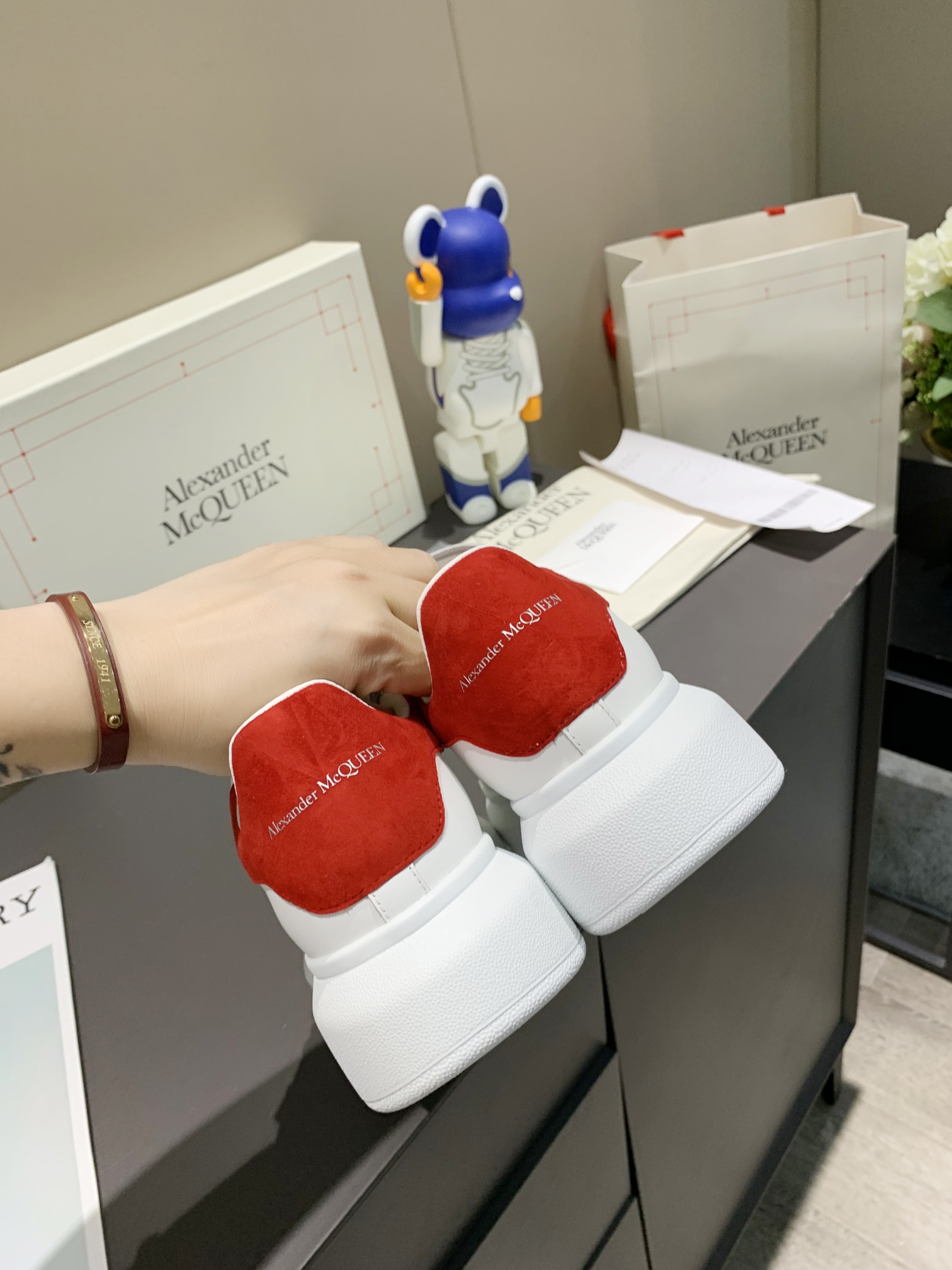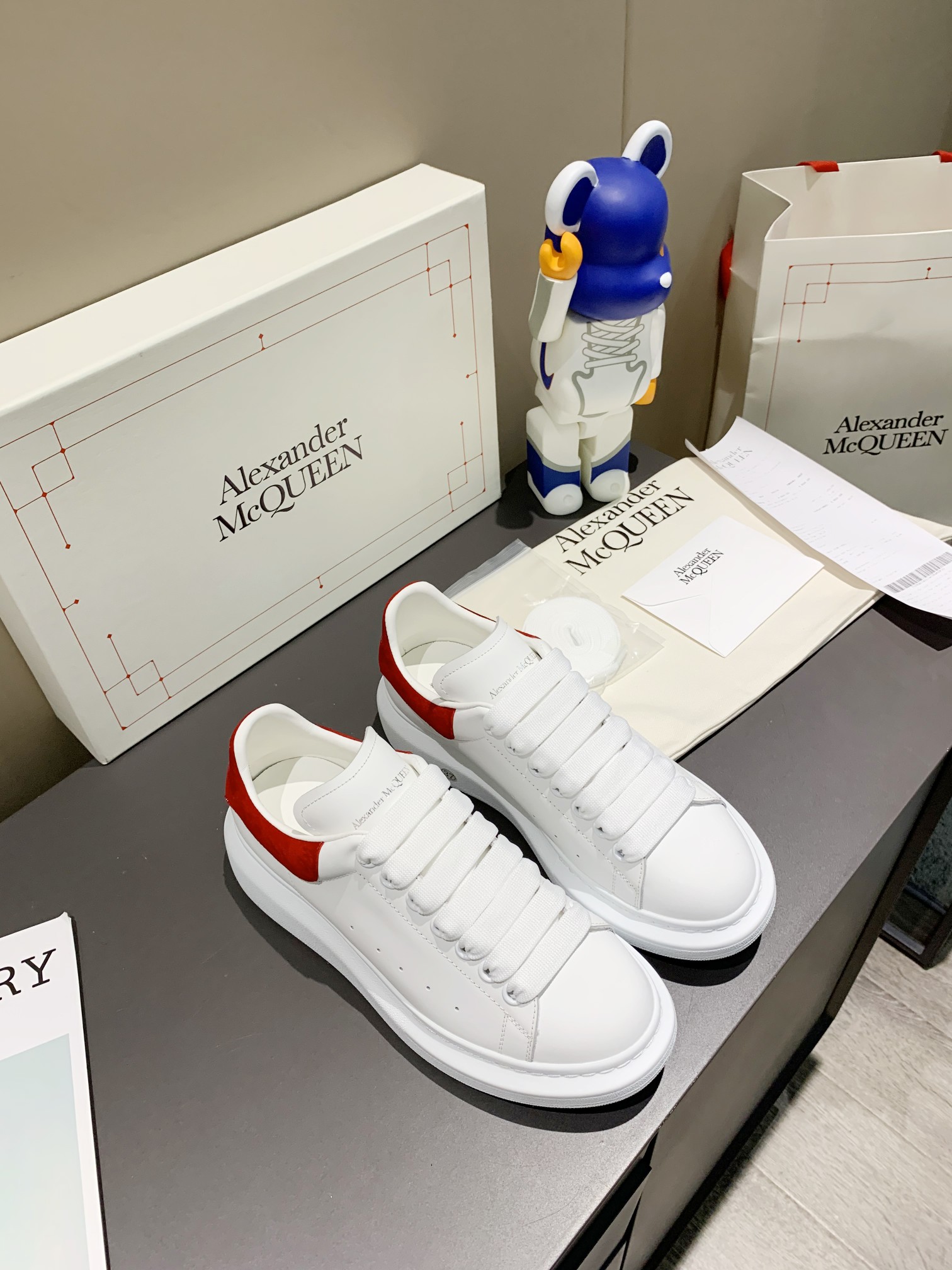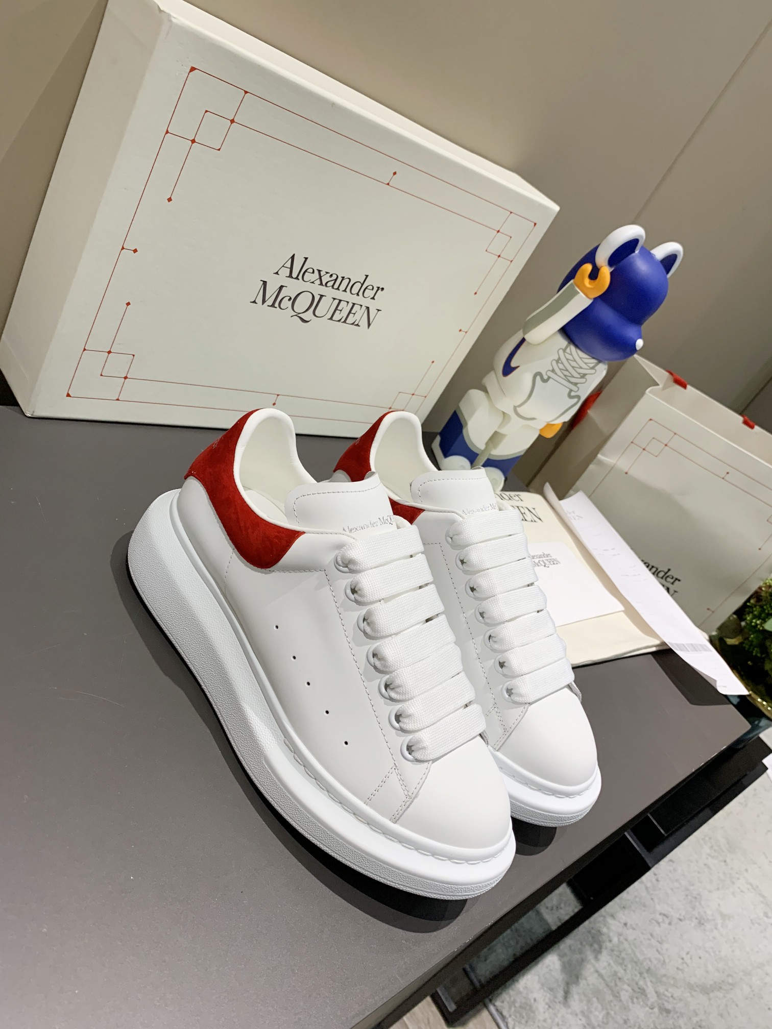 这款鞋子是AAAAA 1:1 质量 (非常棒). 使用了和原版一模一样的材料. 商标部分也保持了和亚历山大·麦昆/McQueen一样. 图片拍摄是实物鞋子拍摄, 您所收到的实物保证和我们图片一模一样.