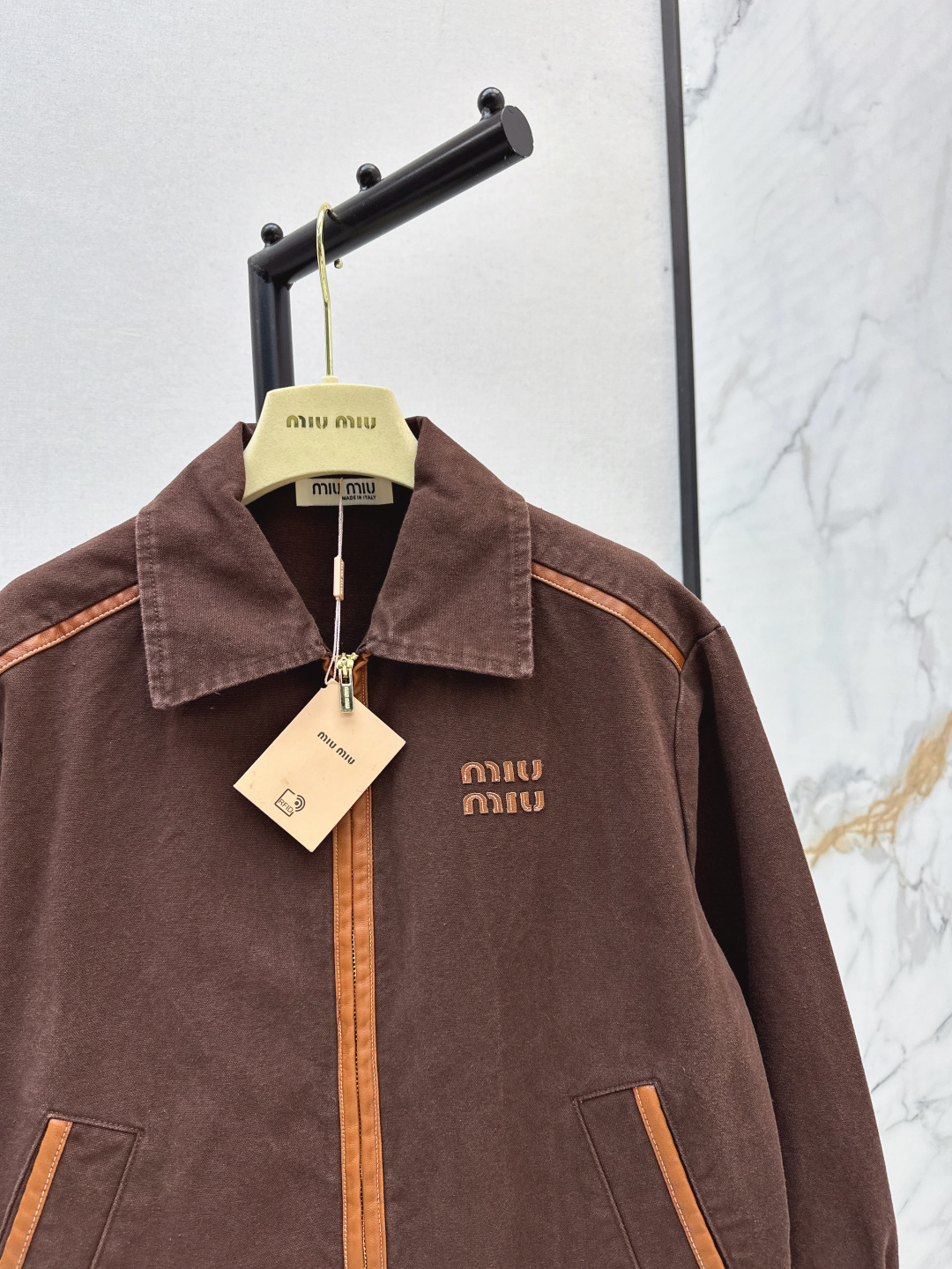 这款衣服是AAAAA 1:1 质量 (非常棒). 使用了和原版一模一样的材料. 商标部分也保持了和缪缪/Miu Miu一样. 图片拍摄是实物衣服拍摄, 您所收到的实物保证和我们图片一模一样.