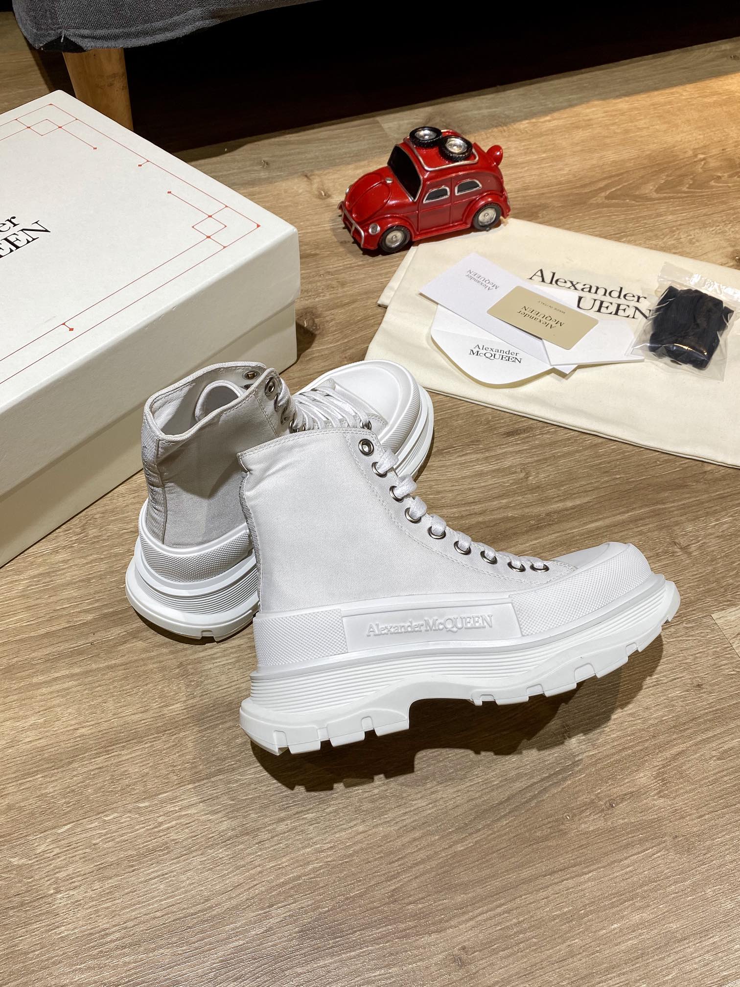 这款鞋子是AAAAA 1:1 质量 (非常棒). 使用了和原版一模一样的材料. 商标部分也保持了和亚历山大·麦昆/McQueen一样. 图片拍摄是实物鞋子拍摄, 您所收到的实物保证和我们图片一模一样.