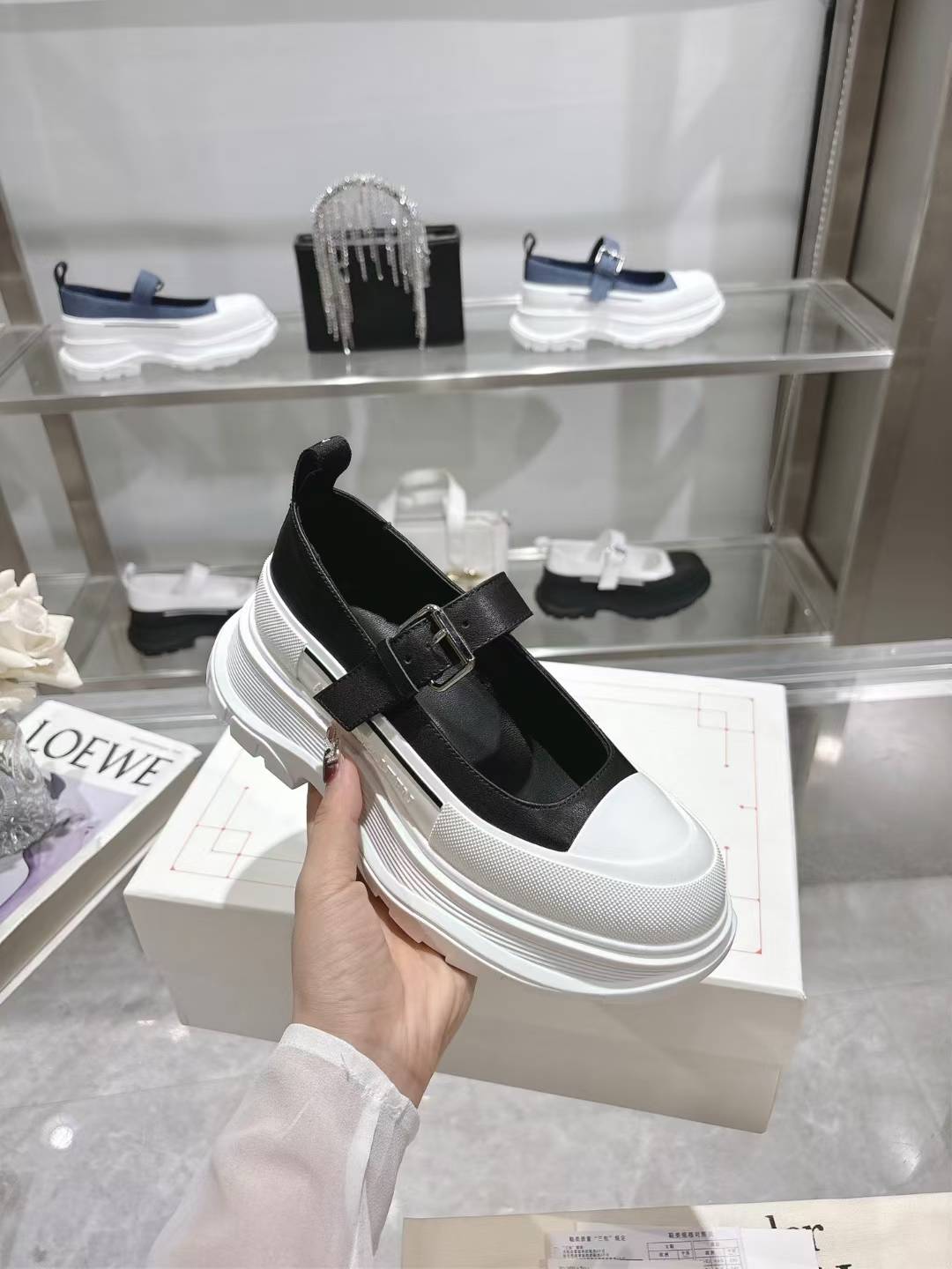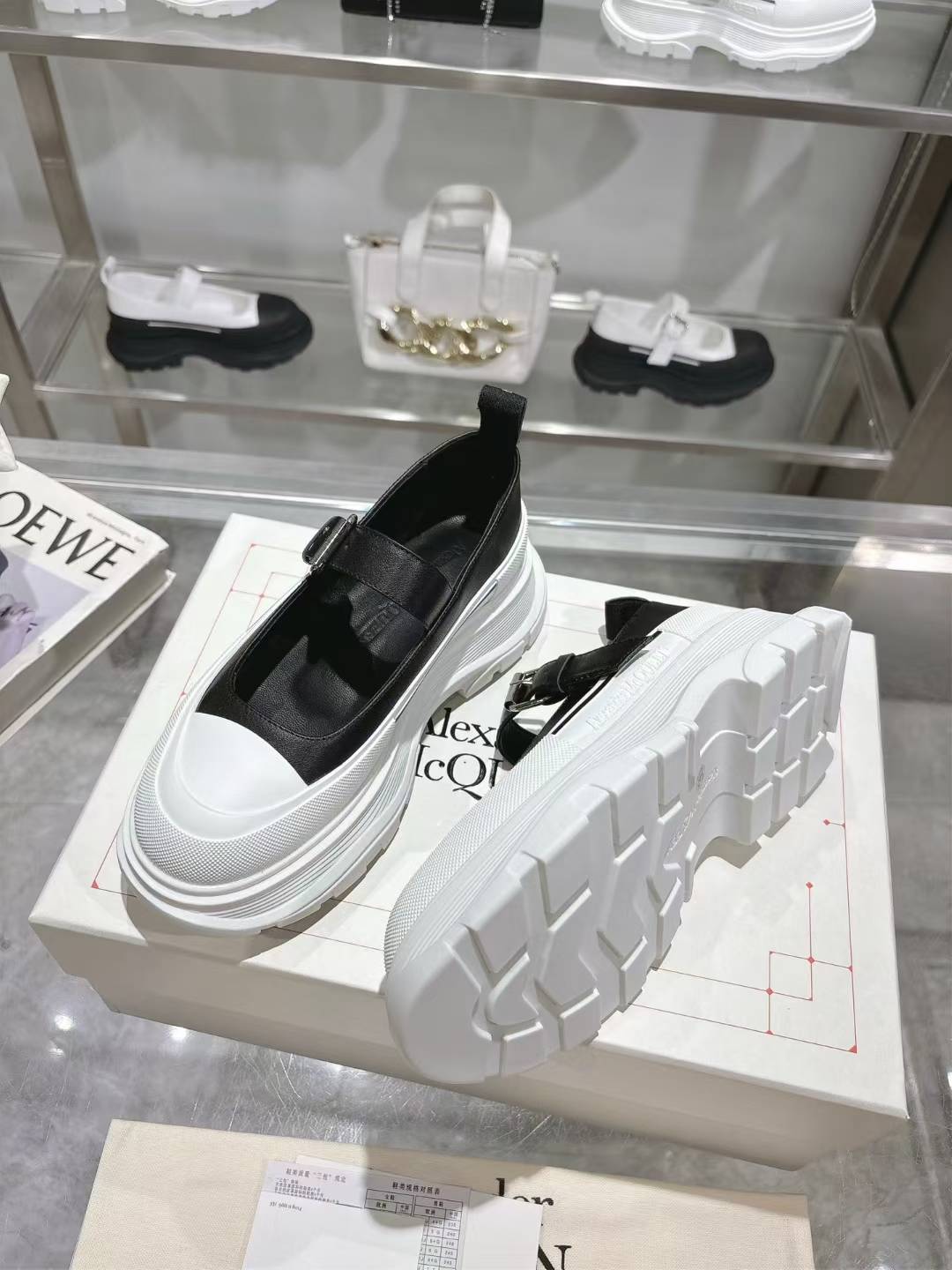 这款鞋子是AAAAA 1:1 质量 (非常棒). 使用了和原版一模一样的材料. 商标部分也保持了和亚历山大·麦昆/McQueen一样. 图片拍摄是实物鞋子拍摄, 您所收到的实物保证和我们图片一模一样.