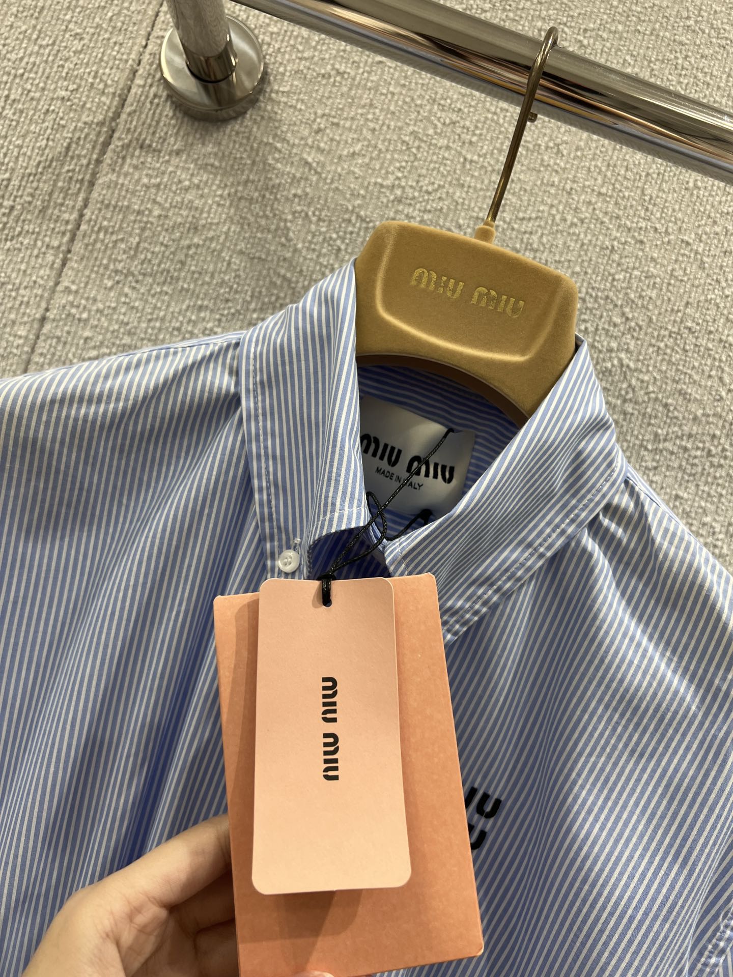 这款衣服是AAAAA 1:1 质量 (非常棒). 使用了和原版一模一样的材料. 商标部分也保持了和缪缪/Miu Miu一样. 图片拍摄是实物衣服拍摄, 您所收到的实物保证和我们图片一模一样.