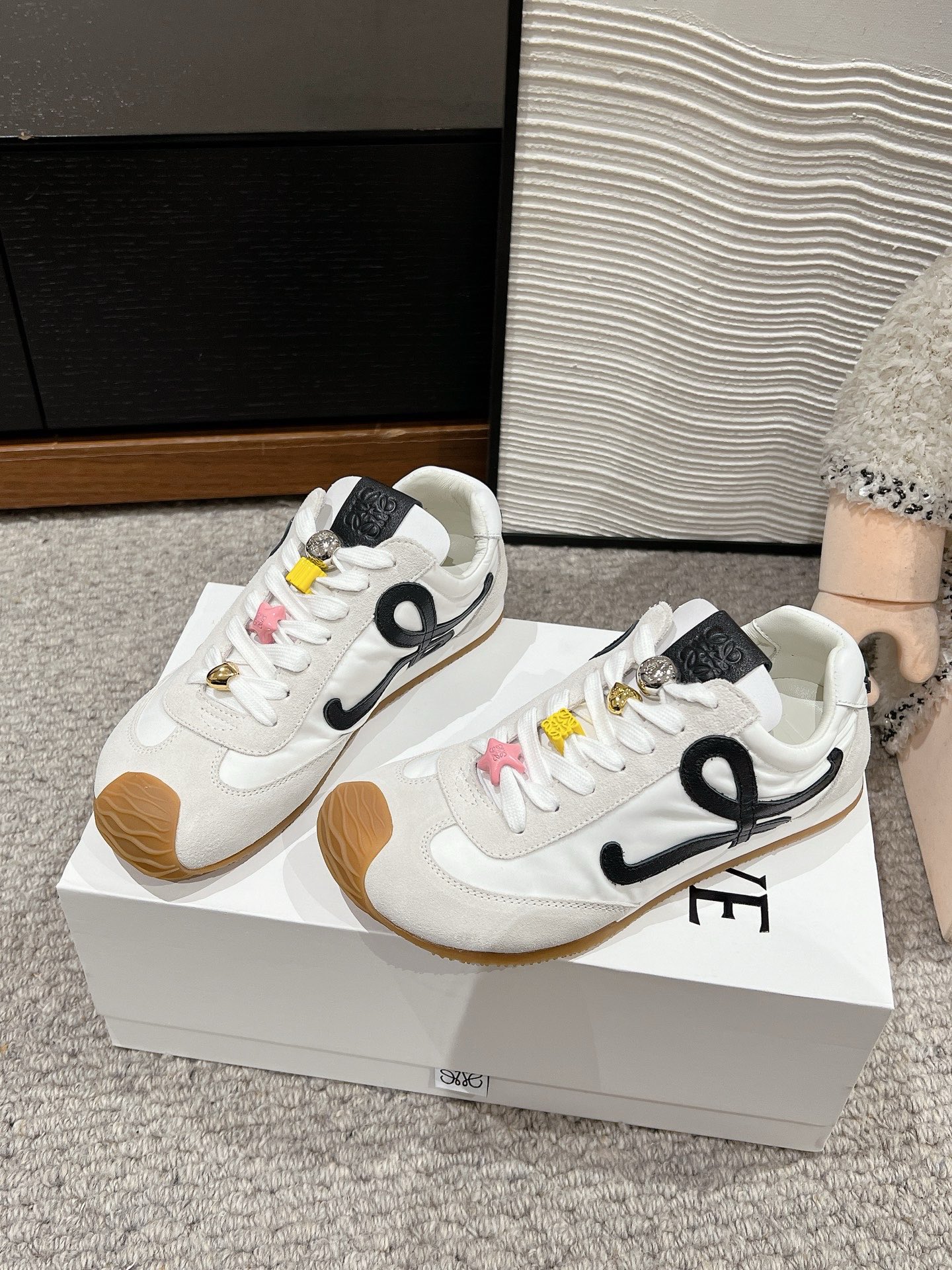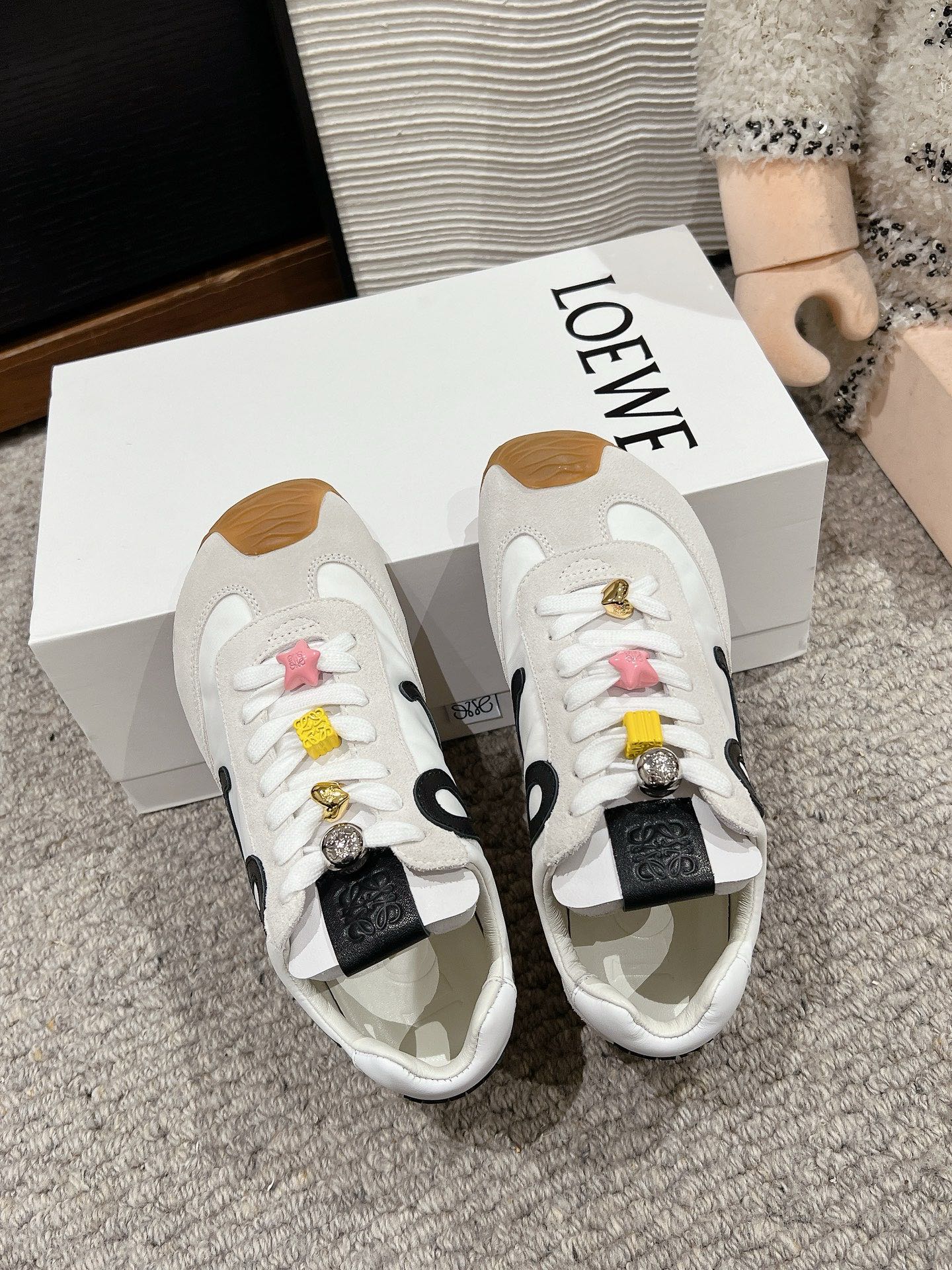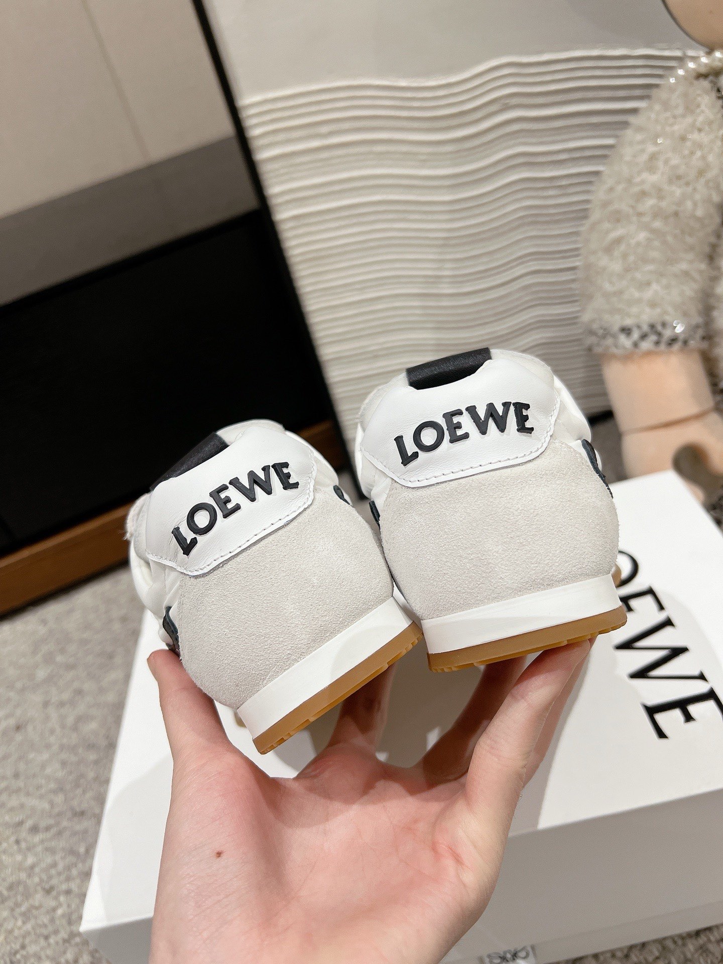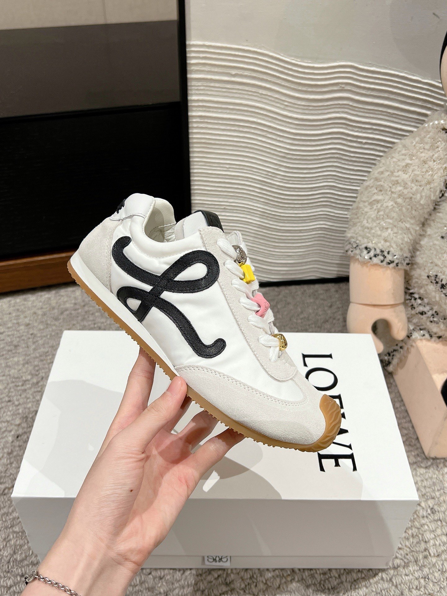 这款鞋子是AAAAA 1:1 质量 (非常棒). 使用了和原版一模一样的材料. 商标部分也保持了和罗意威/Loewe一样. 图片拍摄是实物鞋子拍摄, 您所收到的实物保证和我们图片一模一样.