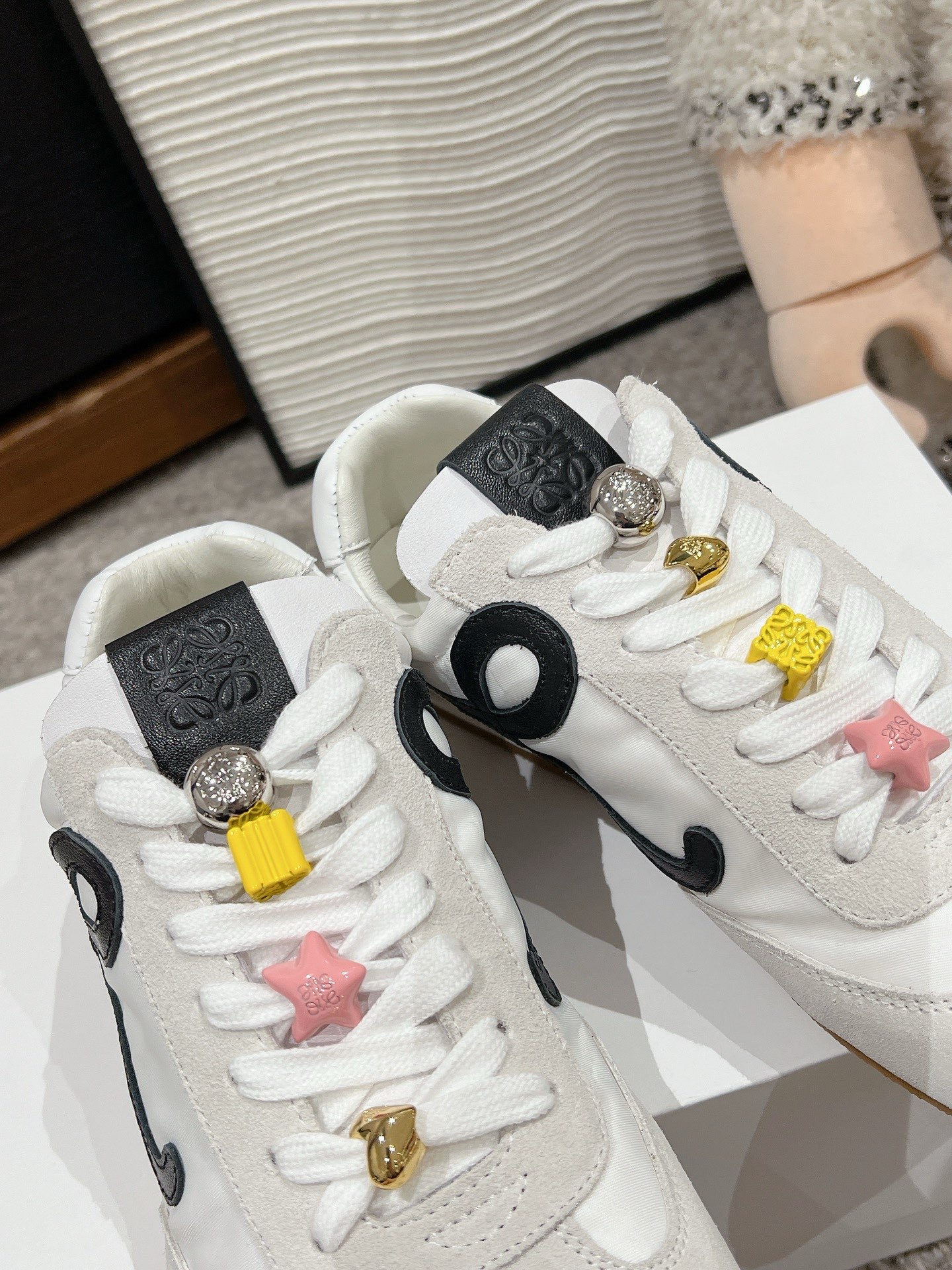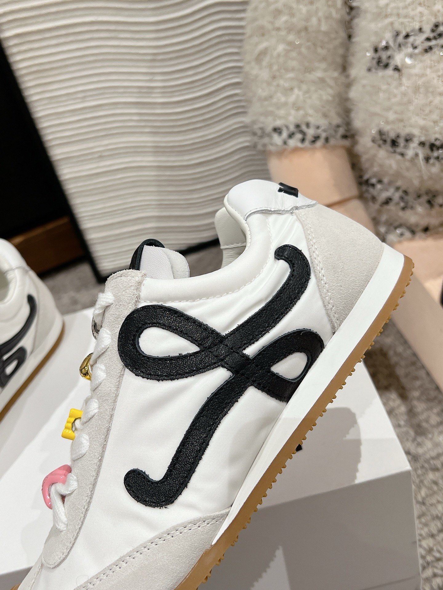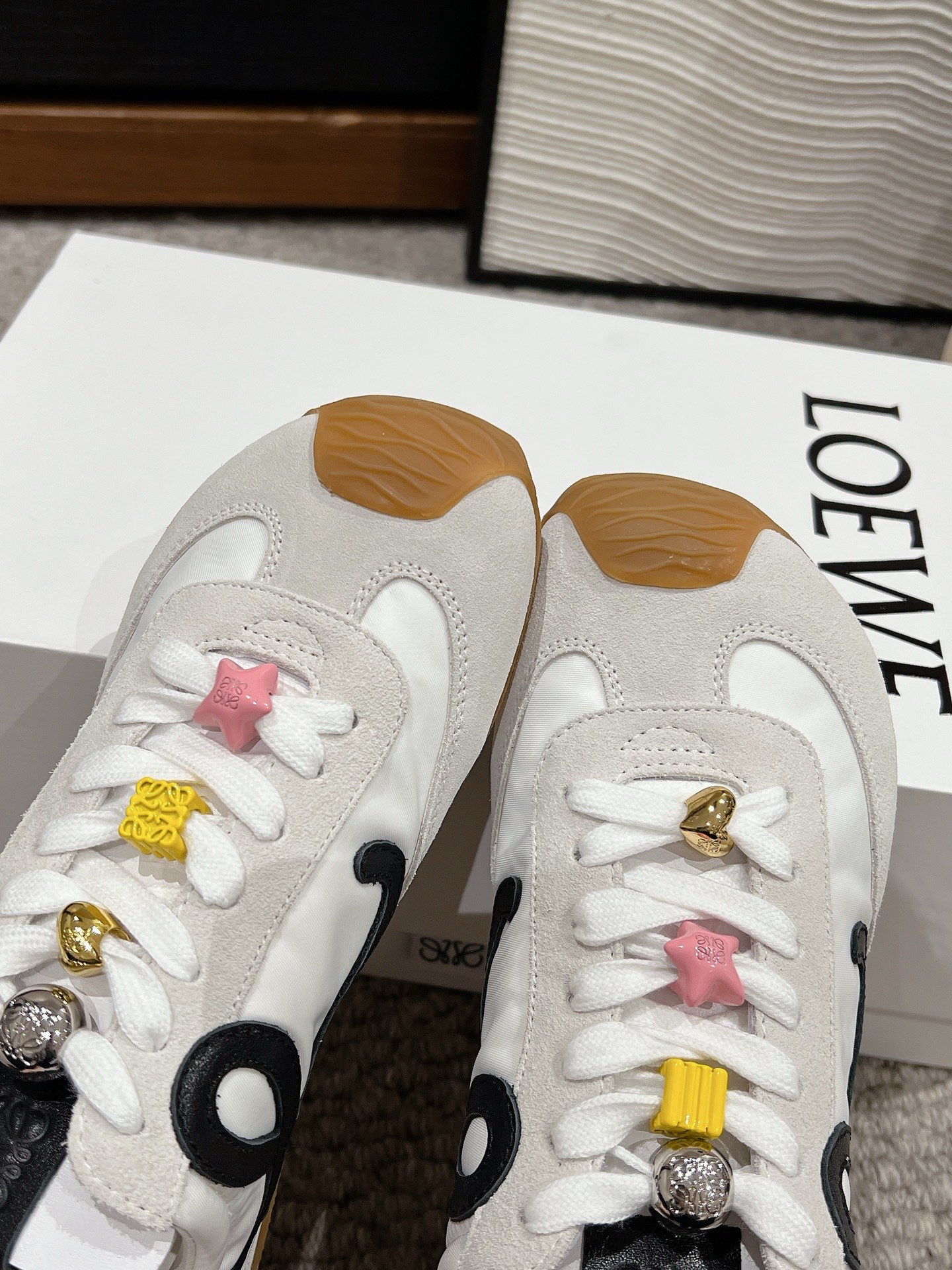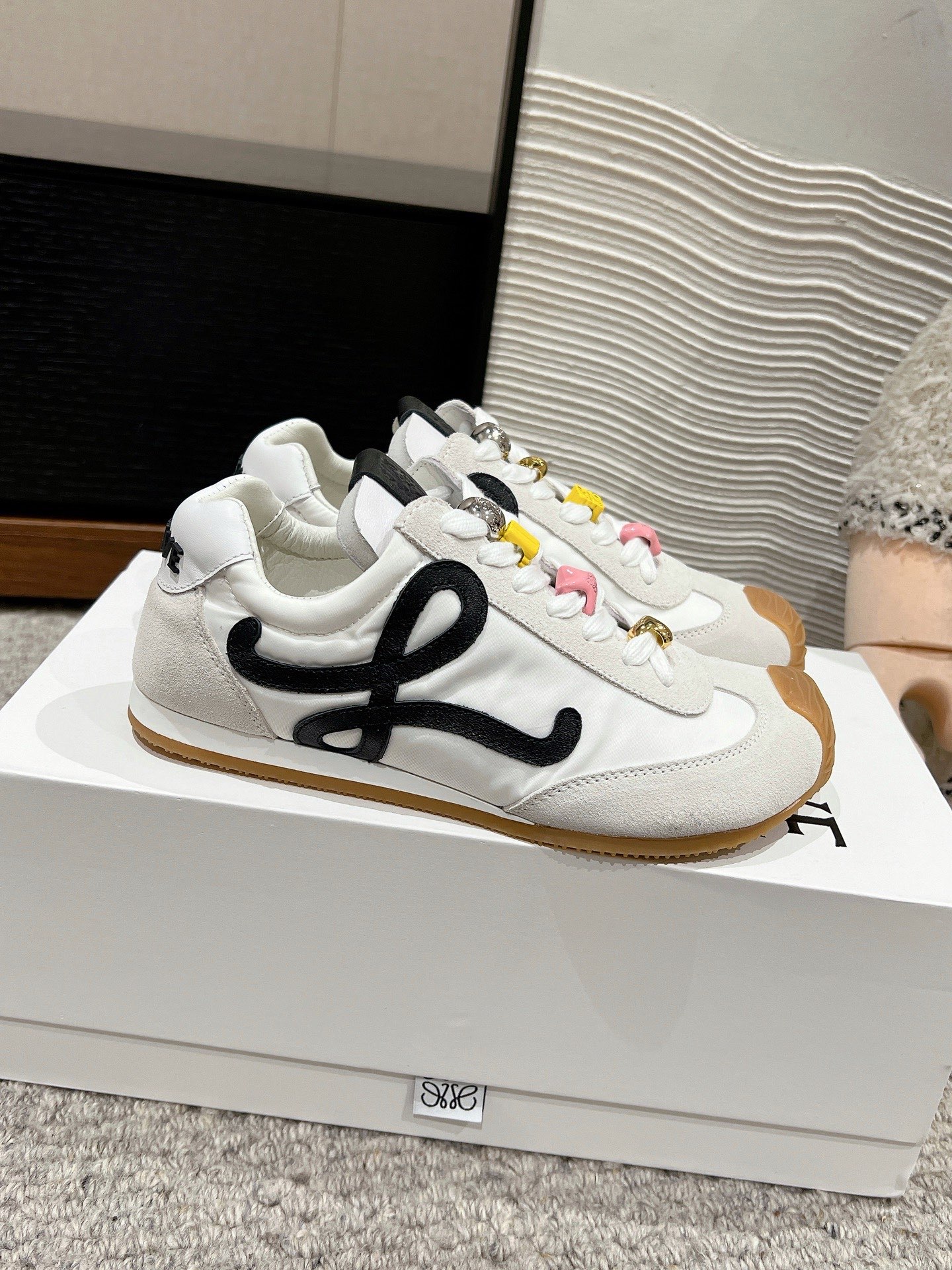 这款鞋子是AAAAA 1:1 质量 (非常棒). 使用了和原版一模一样的材料. 商标部分也保持了和罗意威/Loewe一样. 图片拍摄是实物鞋子拍摄, 您所收到的实物保证和我们图片一模一样.