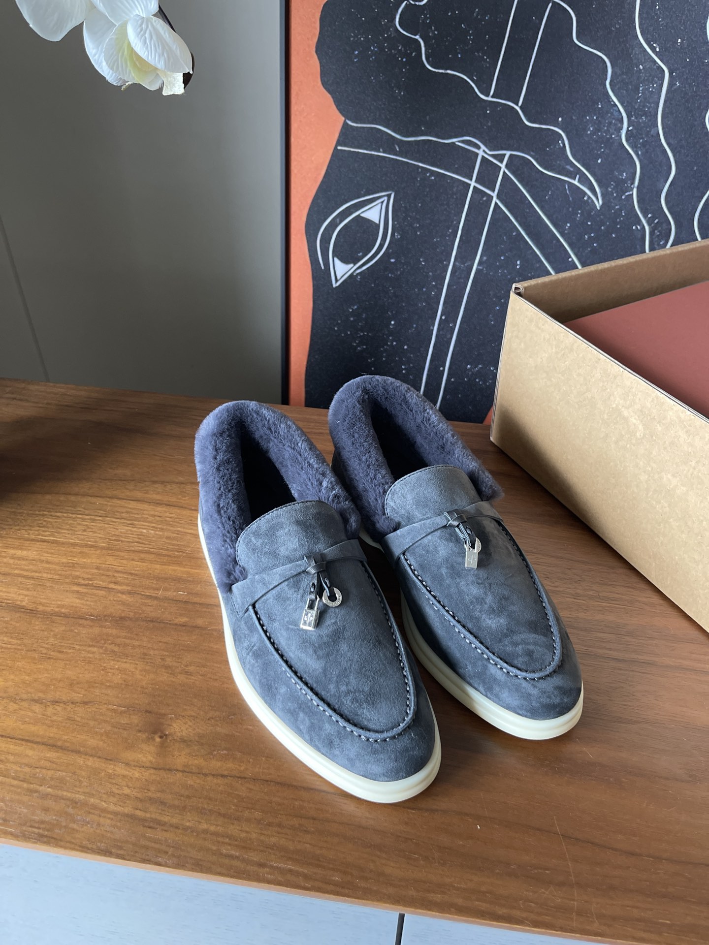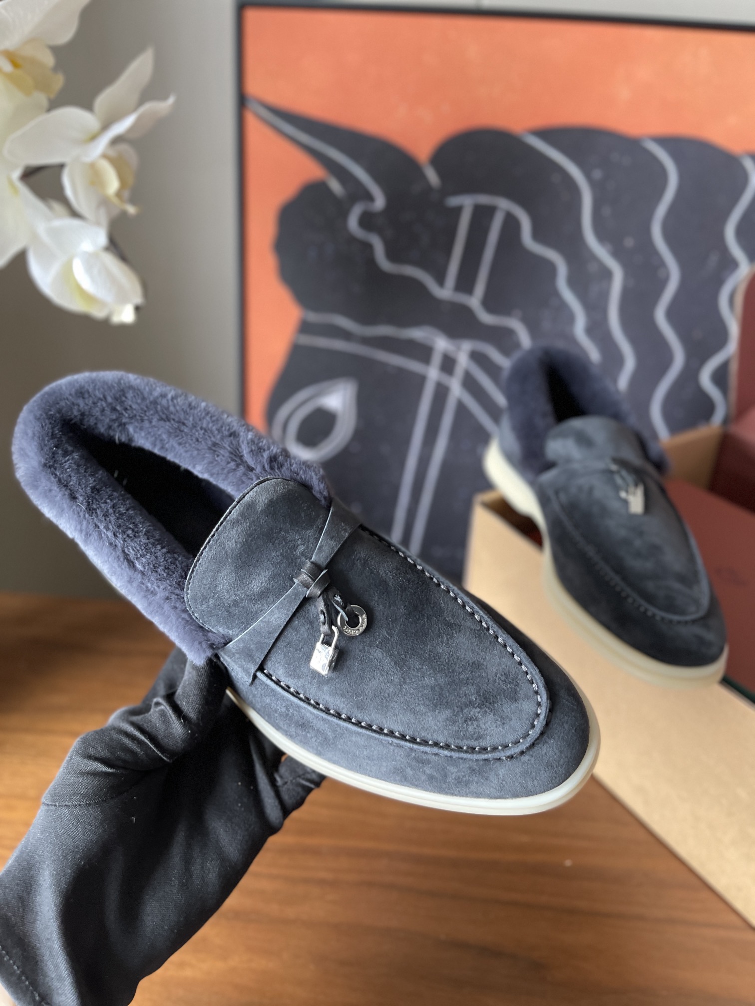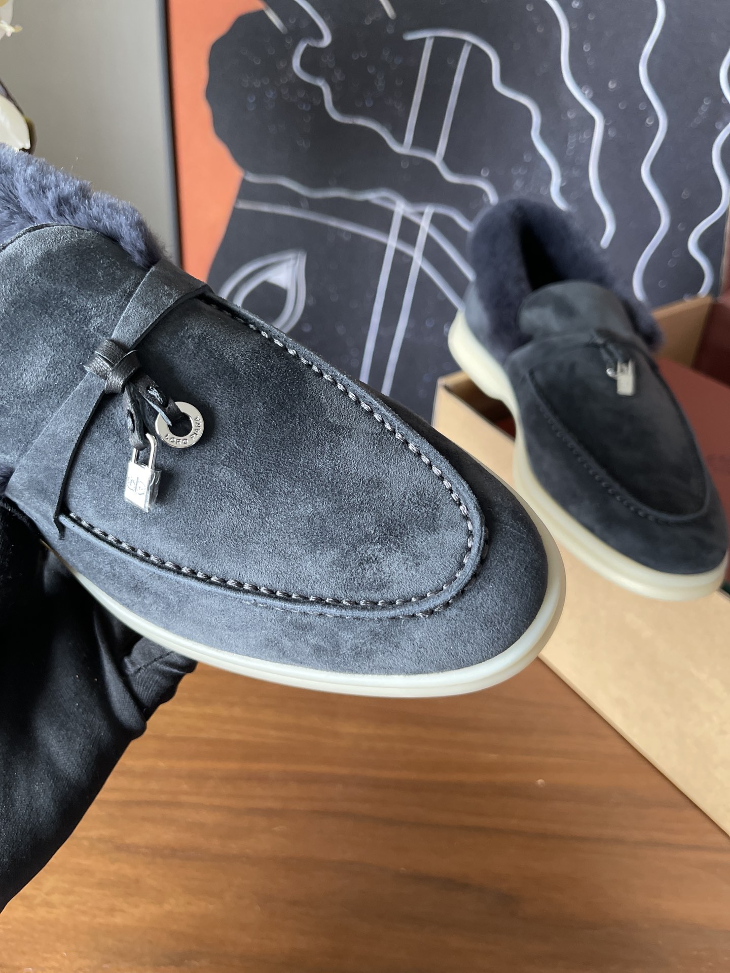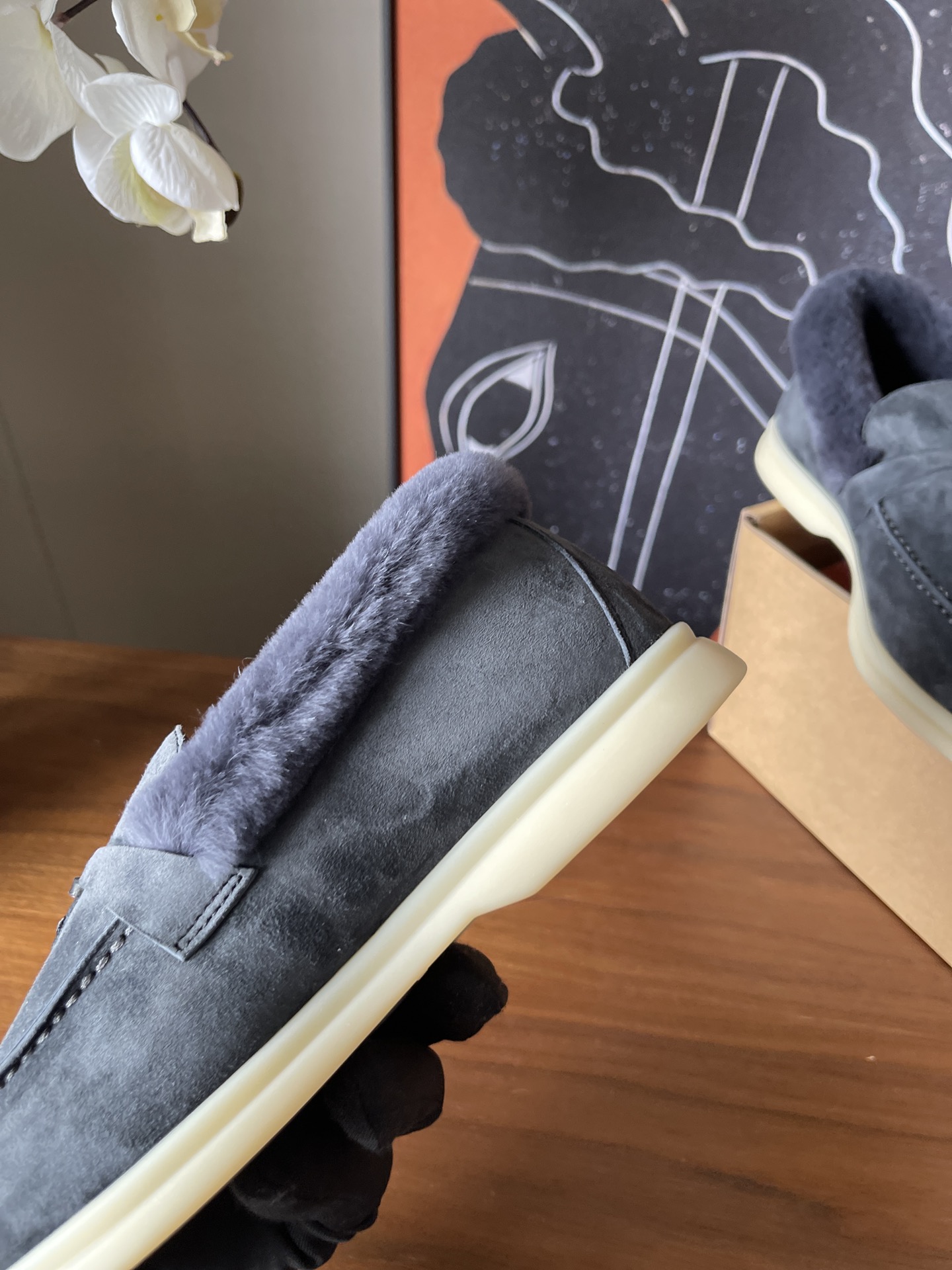 这款鞋子是AAAAA 1:1 质量 (非常棒). 使用了和原版一模一样的材料. 商标部分也保持了和洛罗皮亚纳/Loro Piana一样. 图片拍摄是实物鞋子拍摄, 您所收到的实物保证和我们图片一模一样.