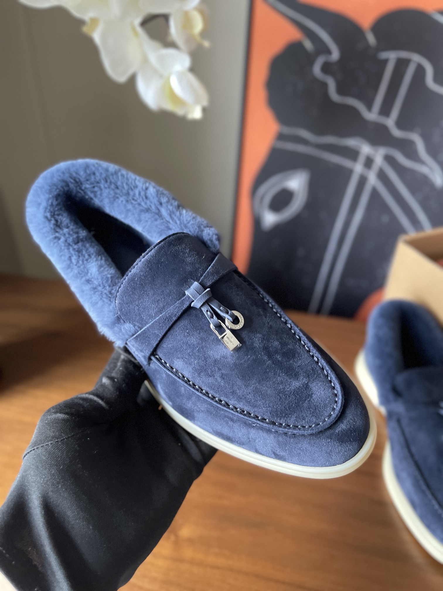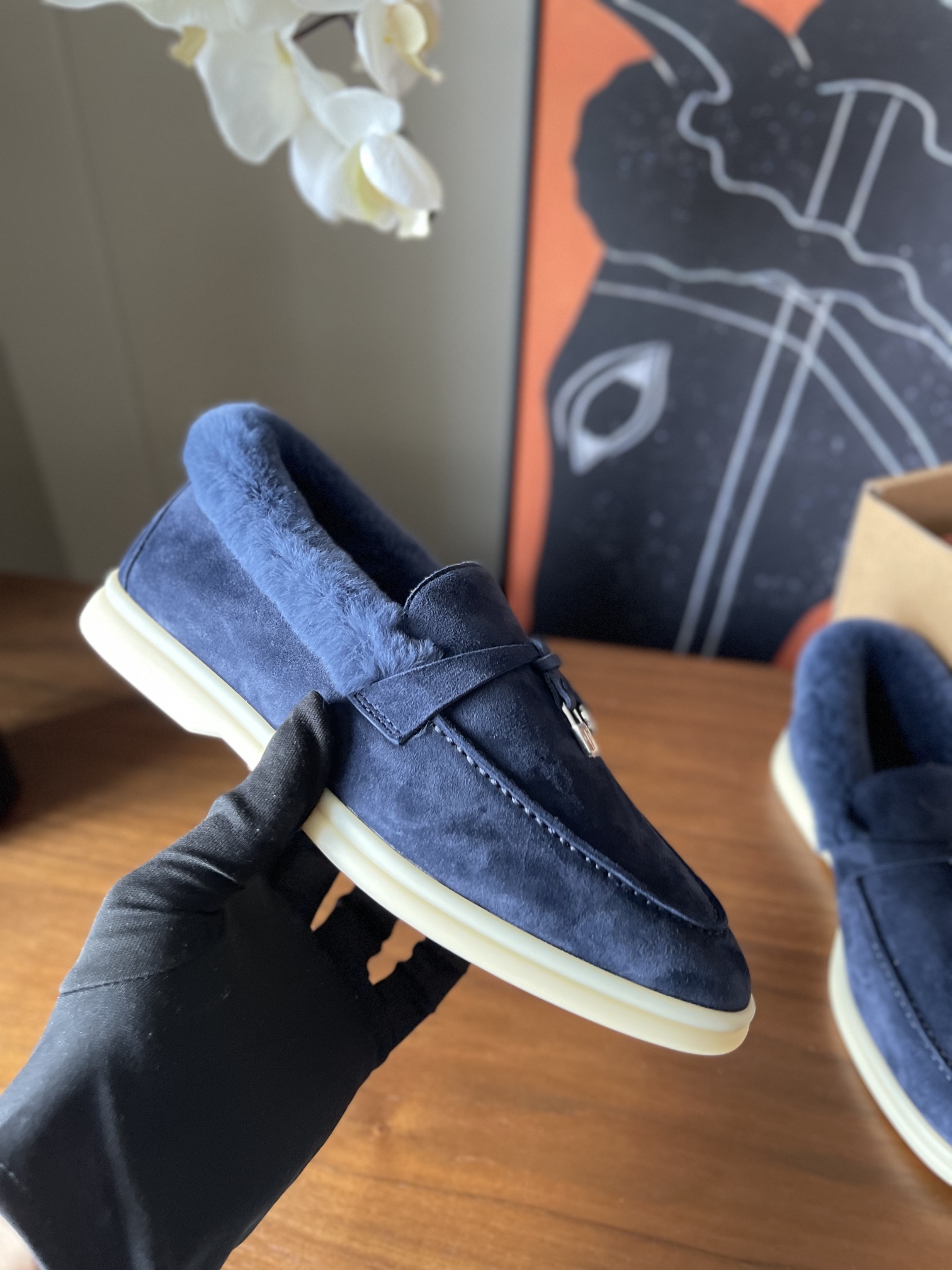 这款鞋子是AAAAA 1:1 质量 (非常棒). 使用了和原版一模一样的材料. 商标部分也保持了和洛罗皮亚纳/Loro Piana一样. 图片拍摄是实物鞋子拍摄, 您所收到的实物保证和我们图片一模一样.