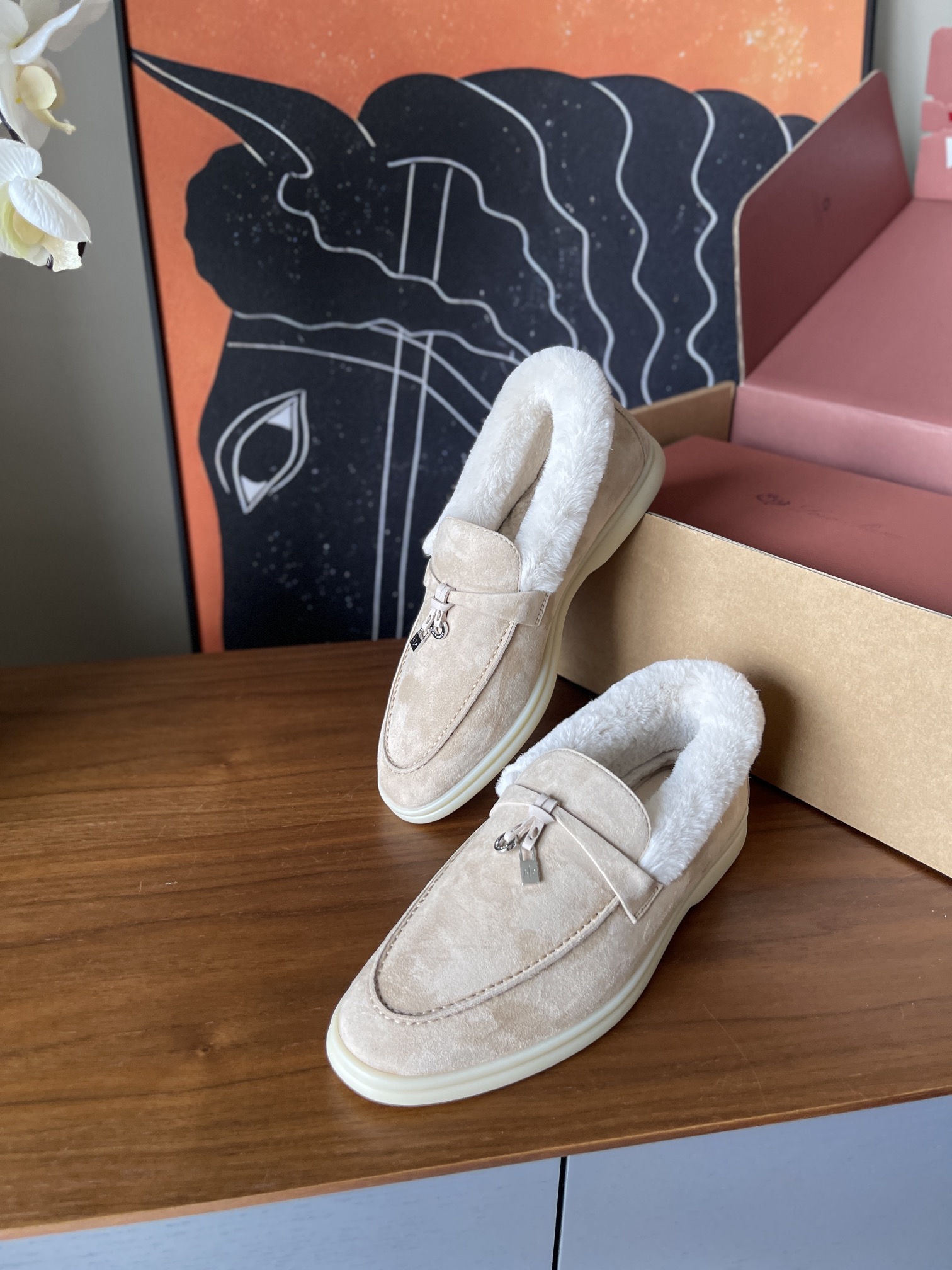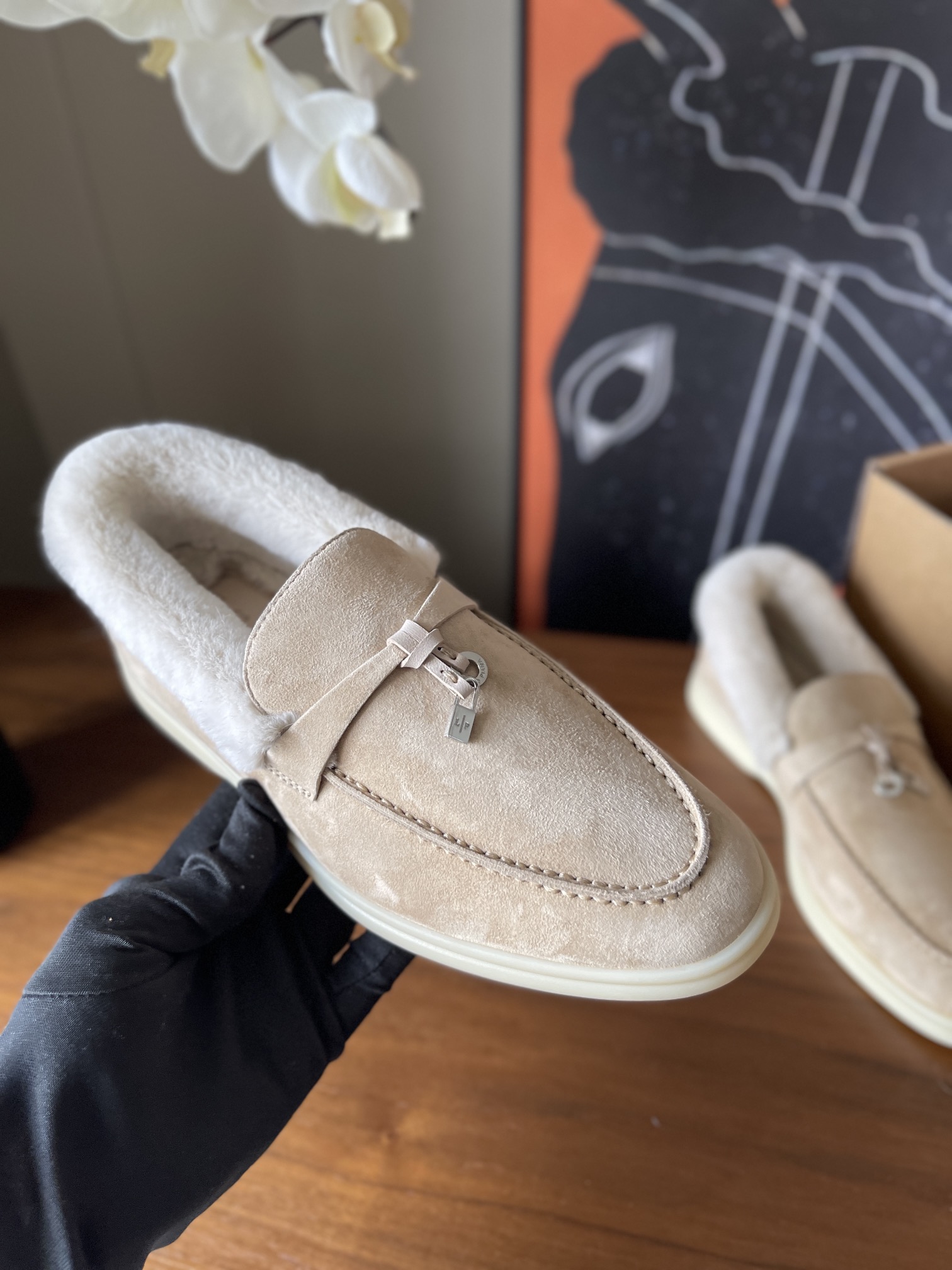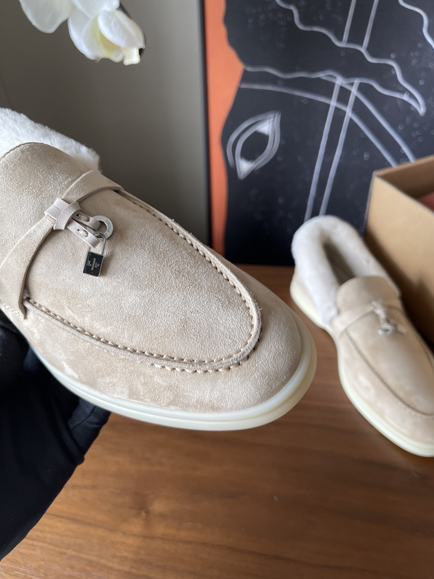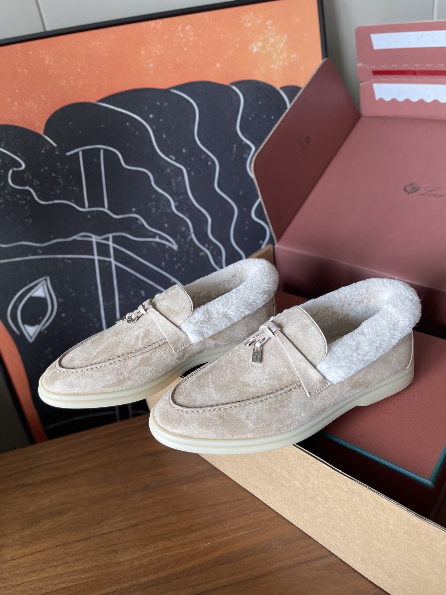 这款鞋子是AAAAA 1:1 质量 (非常棒). 使用了和原版一模一样的材料. 商标部分也保持了和洛罗皮亚纳/Loro Piana一样. 图片拍摄是实物鞋子拍摄, 您所收到的实物保证和我们图片一模一样.