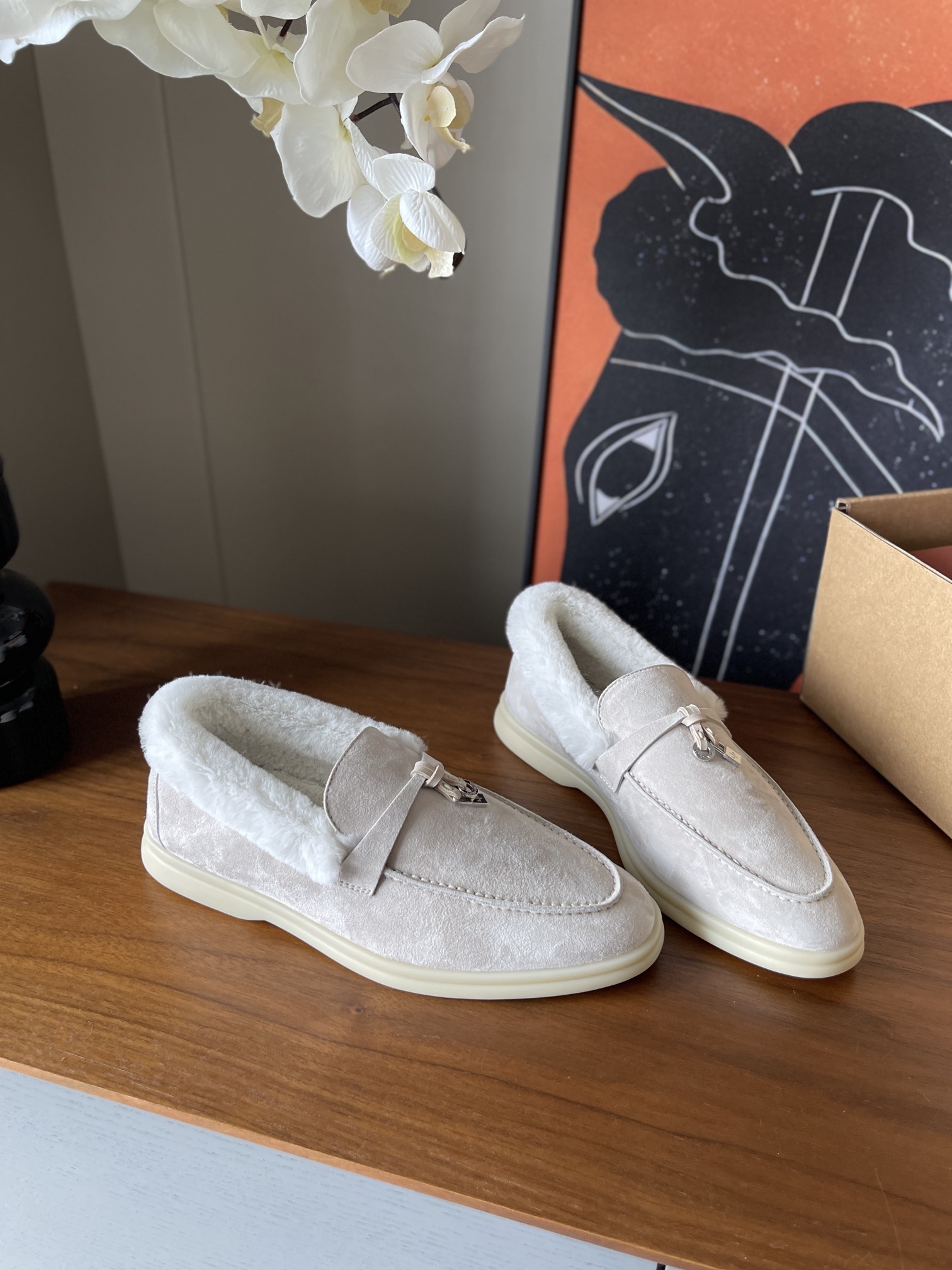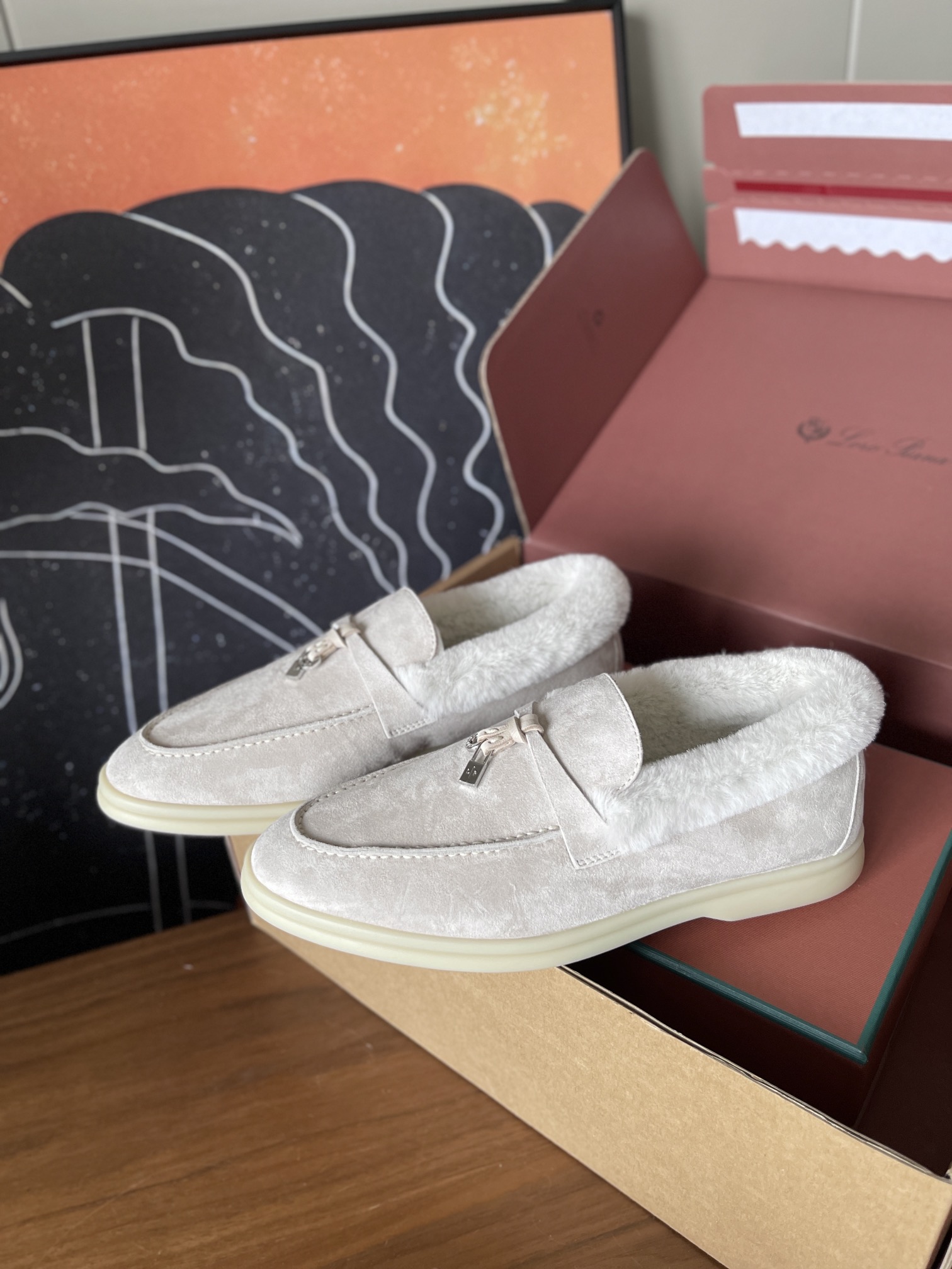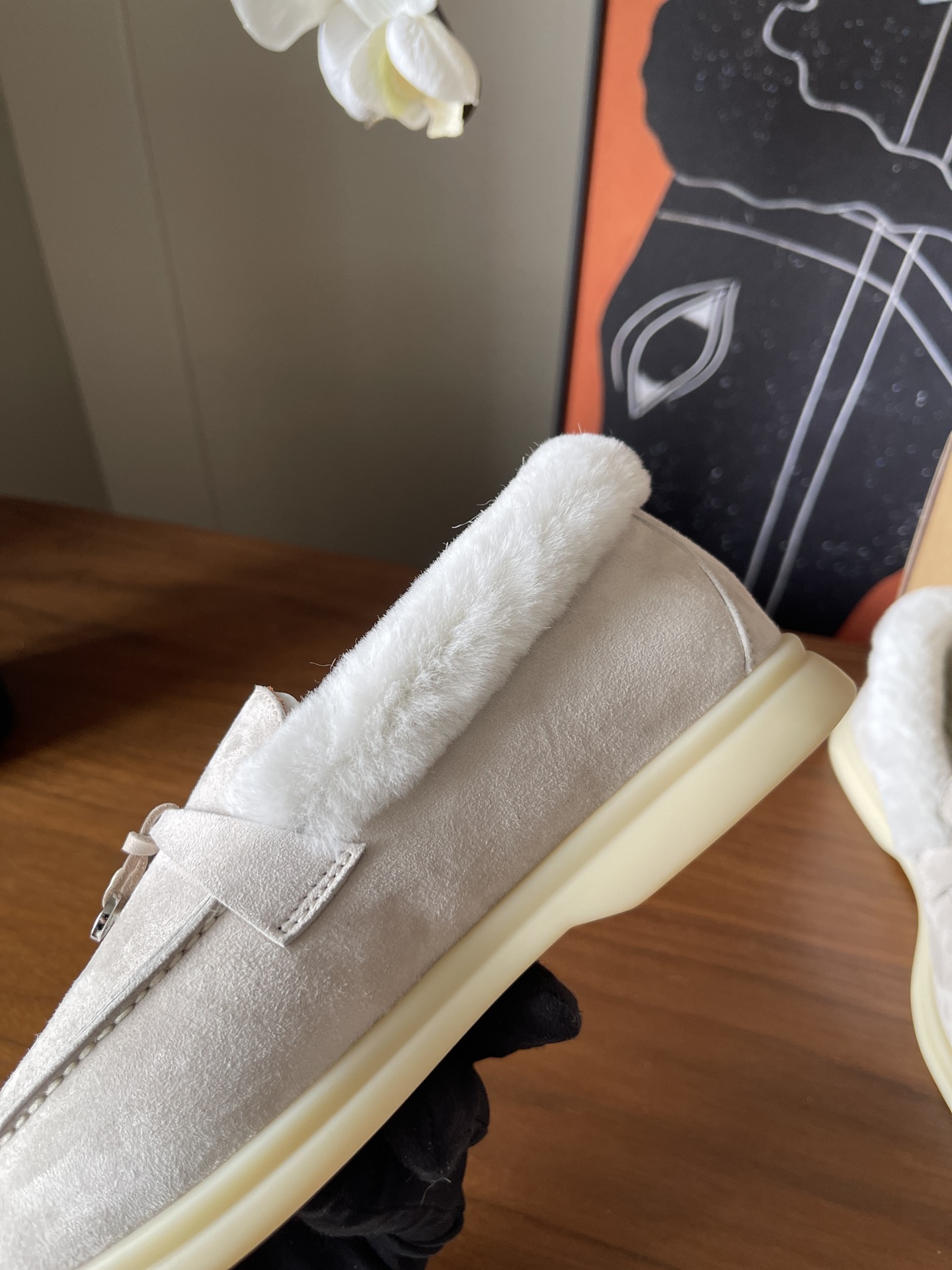 这款鞋子是AAAAA 1:1 质量 (非常棒). 使用了和原版一模一样的材料. 商标部分也保持了和洛罗皮亚纳/Loro Piana一样. 图片拍摄是实物鞋子拍摄, 您所收到的实物保证和我们图片一模一样.