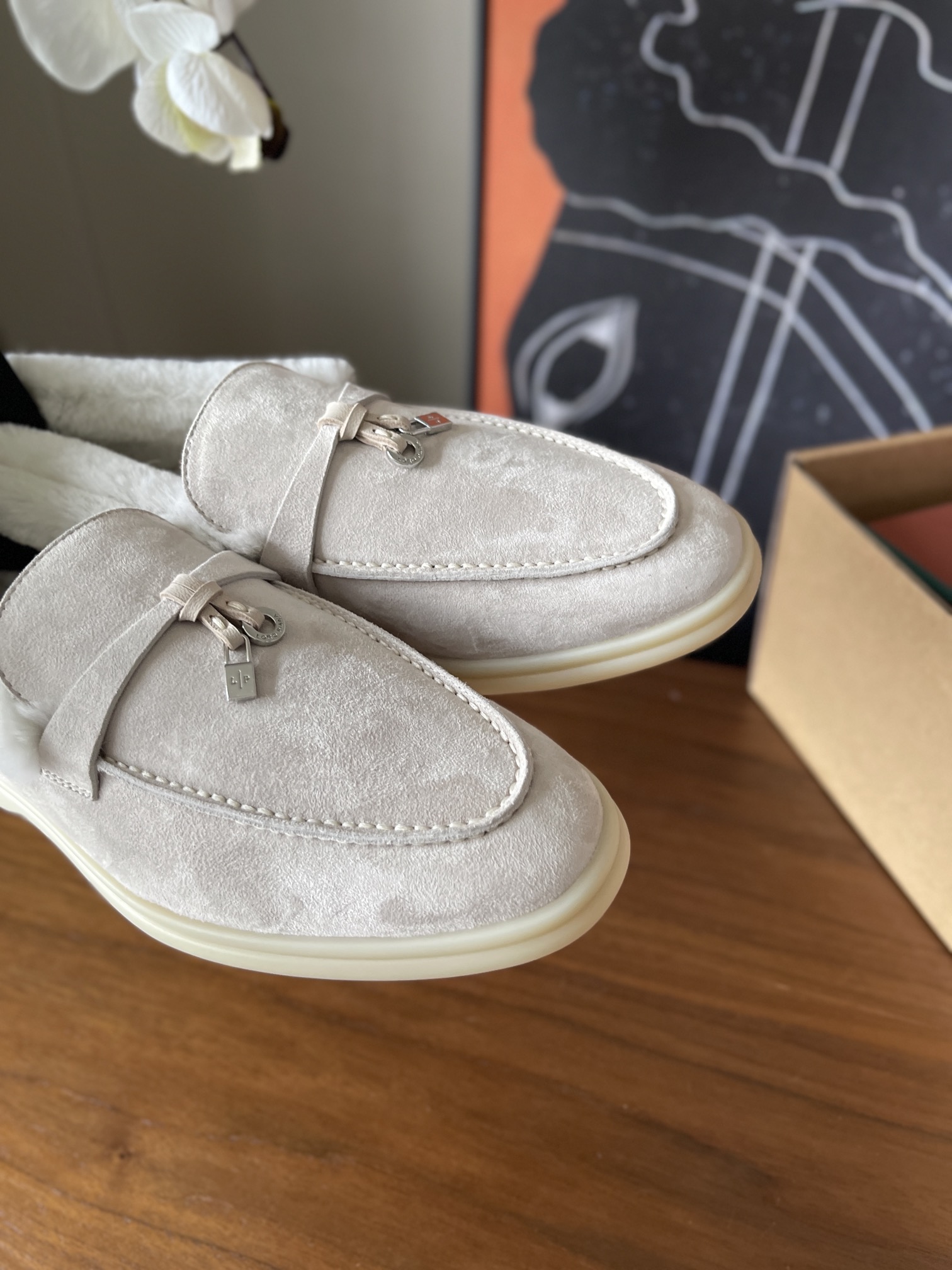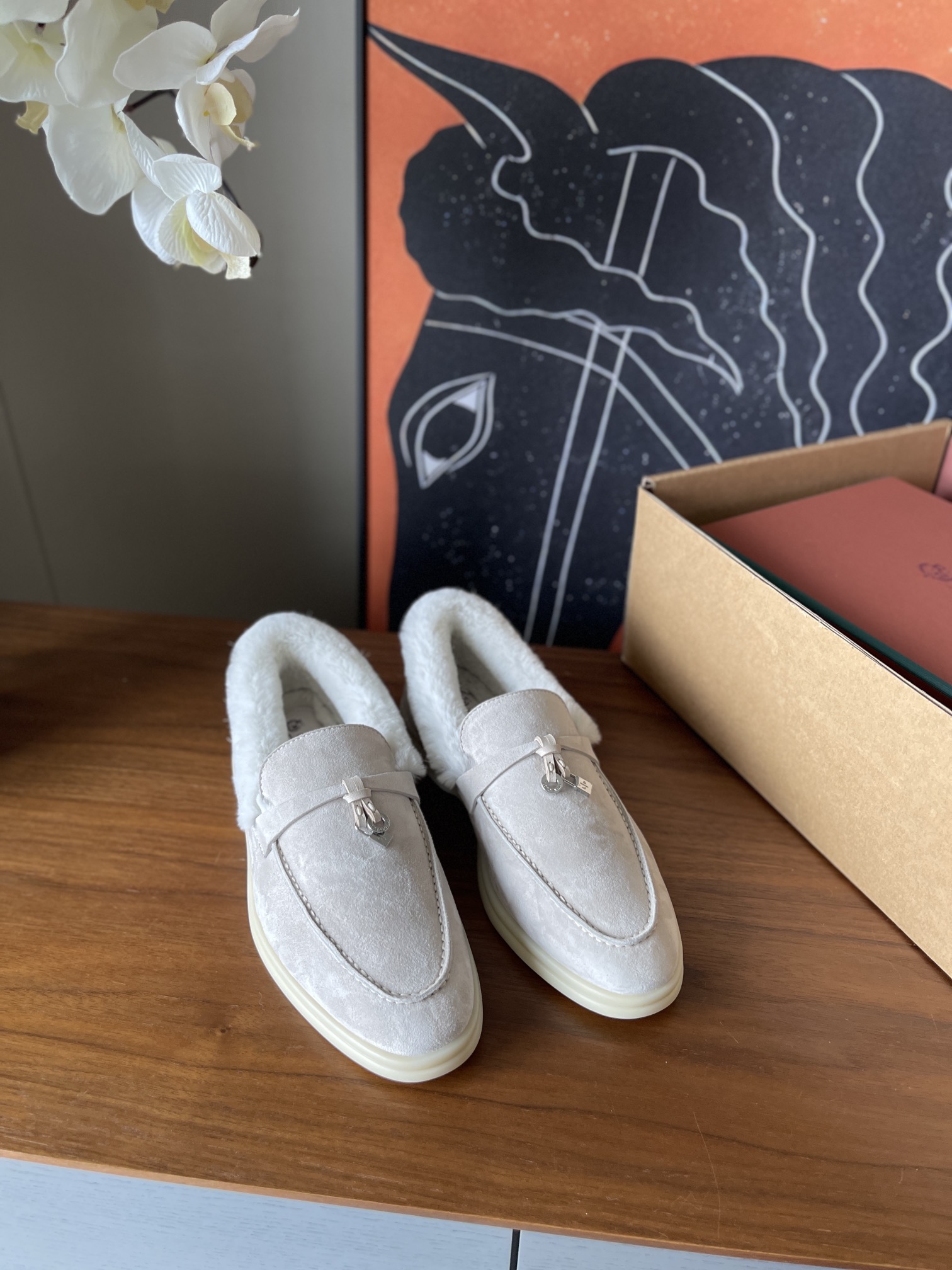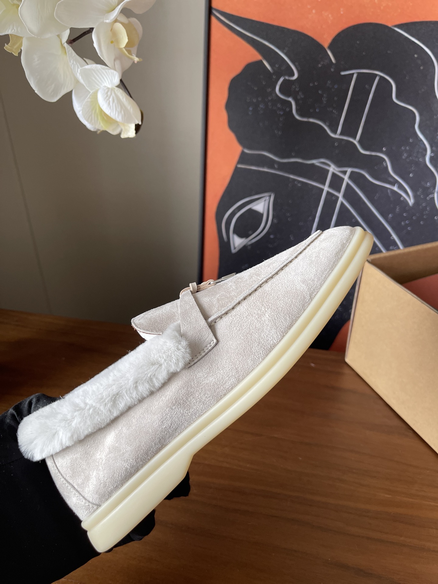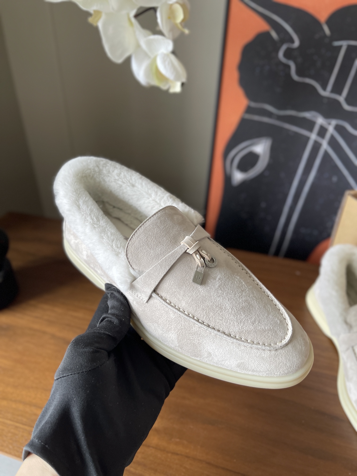 这款鞋子是AAAAA 1:1 质量 (非常棒). 使用了和原版一模一样的材料. 商标部分也保持了和洛罗皮亚纳/Loro Piana一样. 图片拍摄是实物鞋子拍摄, 您所收到的实物保证和我们图片一模一样.