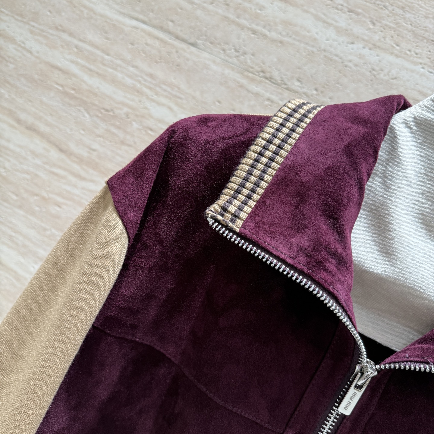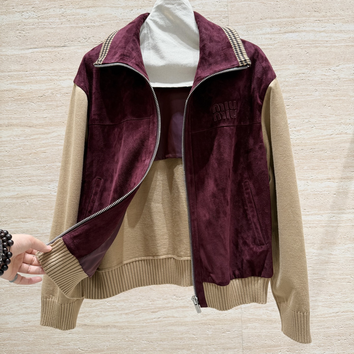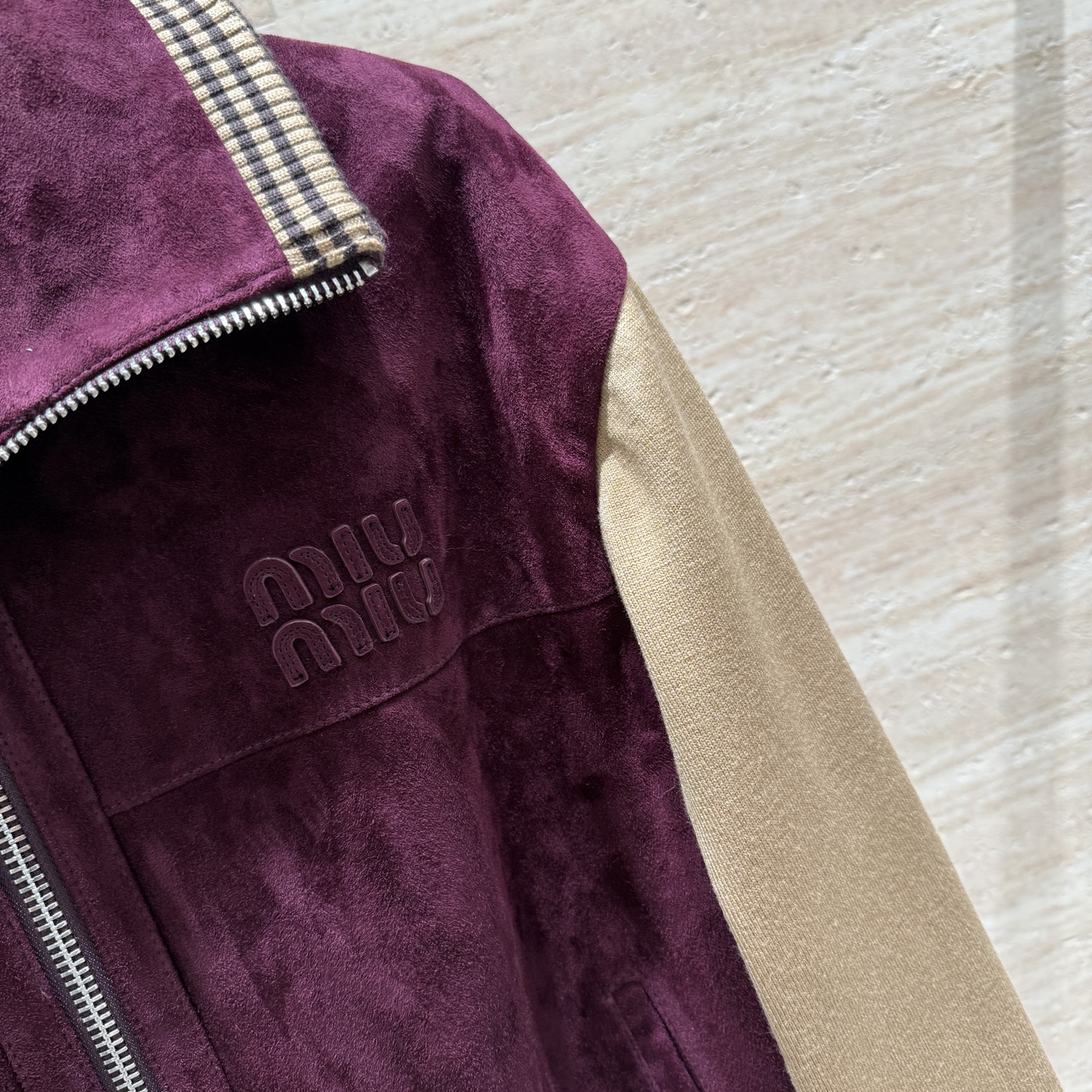 这款衣服是AAAAA 1:1 质量 (非常棒). 使用了和原版一模一样的材料. 商标部分也保持了和缪缪/Miu Miu一样. 图片拍摄是实物衣服拍摄, 您所收到的实物保证和我们图片一模一样.
