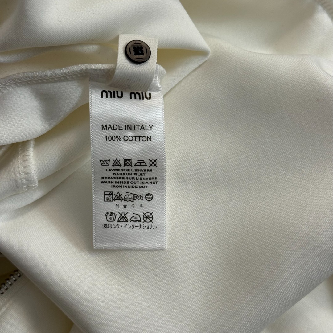 这款衣服是AAAAA 1:1 质量 (非常棒). 使用了和原版一模一样的材料. 商标部分也保持了和缪缪/Miu Miu一样. 图片拍摄是实物衣服拍摄, 您所收到的实物保证和我们图片一模一样.