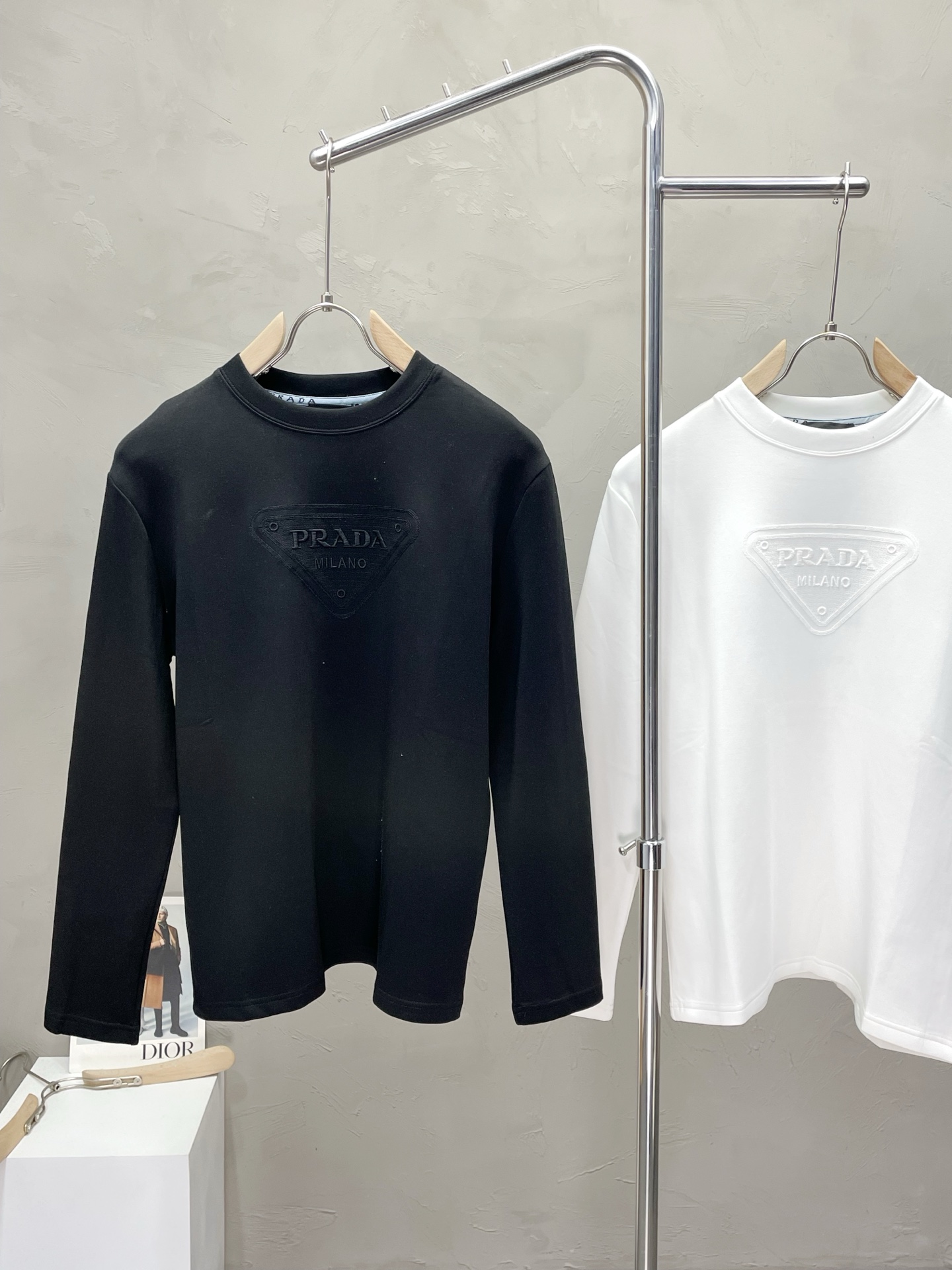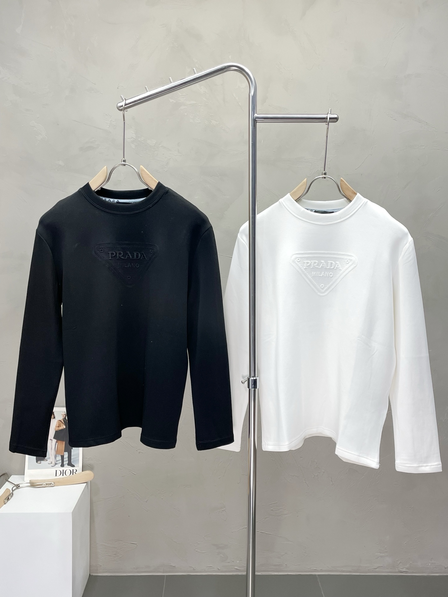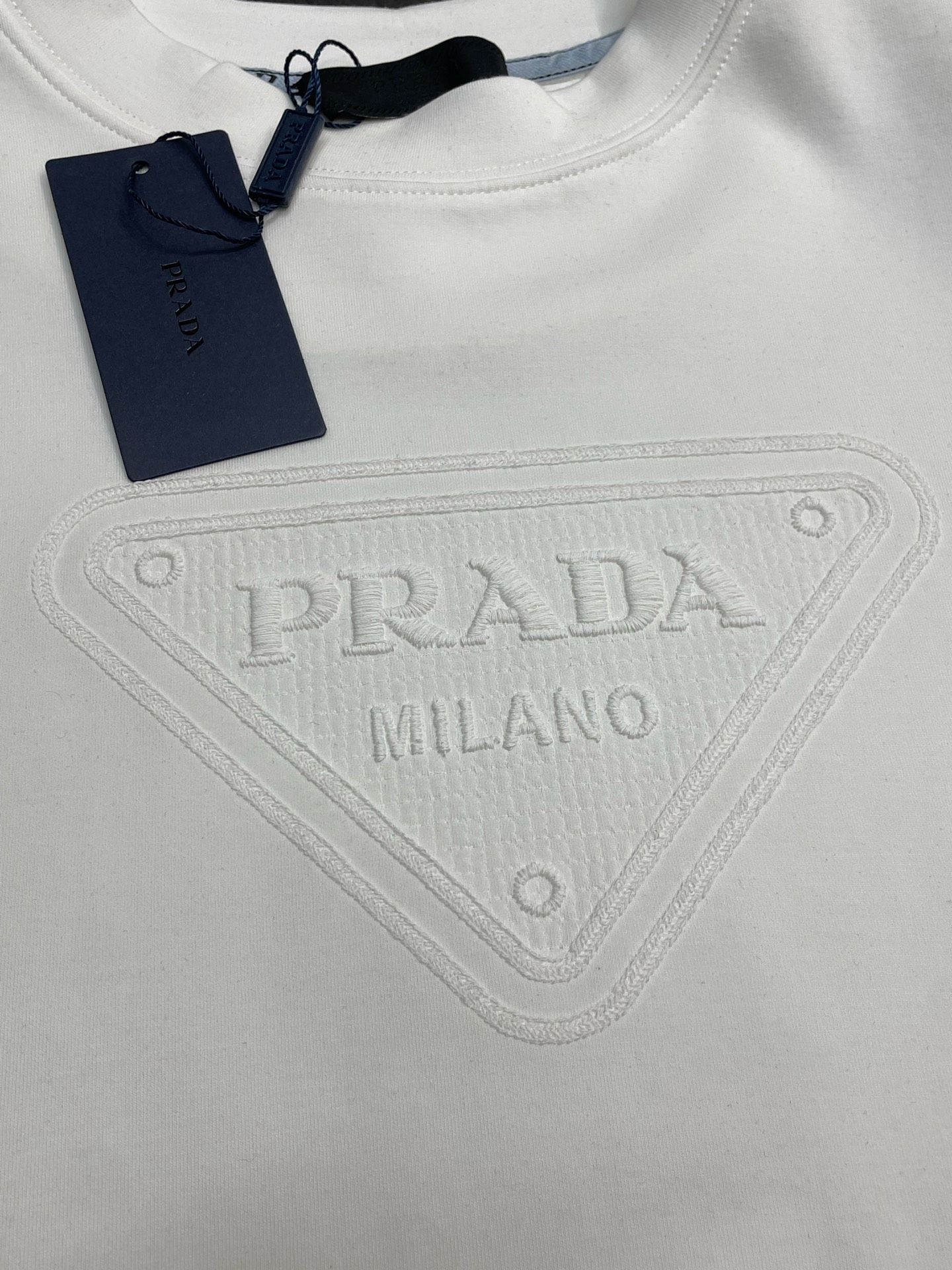 这款衣服是AAAAA 1:1 质量 (非常棒). 使用了和原版一模一样的材料. 商标部分也保持了和普拉达/Prada一样. 图片拍摄是实物衣服拍摄, 您所收到的实物保证和我们图片一模一样.
