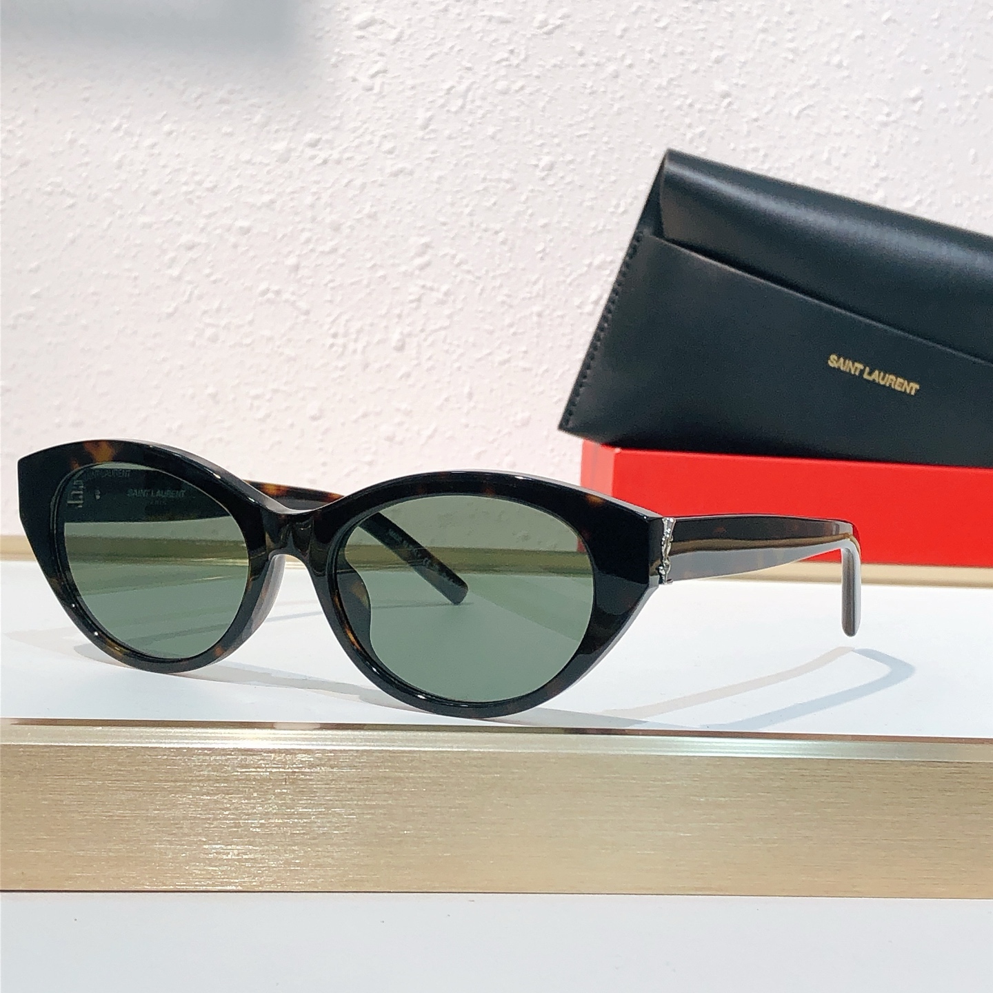 这款太阳眼镜是AAAAA 1:1 质量 (非常棒). 使用了和原版一模一样的材料. 商标部分也保持了和圣罗兰/Saint Laurent一样. 图片拍摄是实物太阳眼镜拍摄, 您所收到的实物保证和我们图片一模一样.
