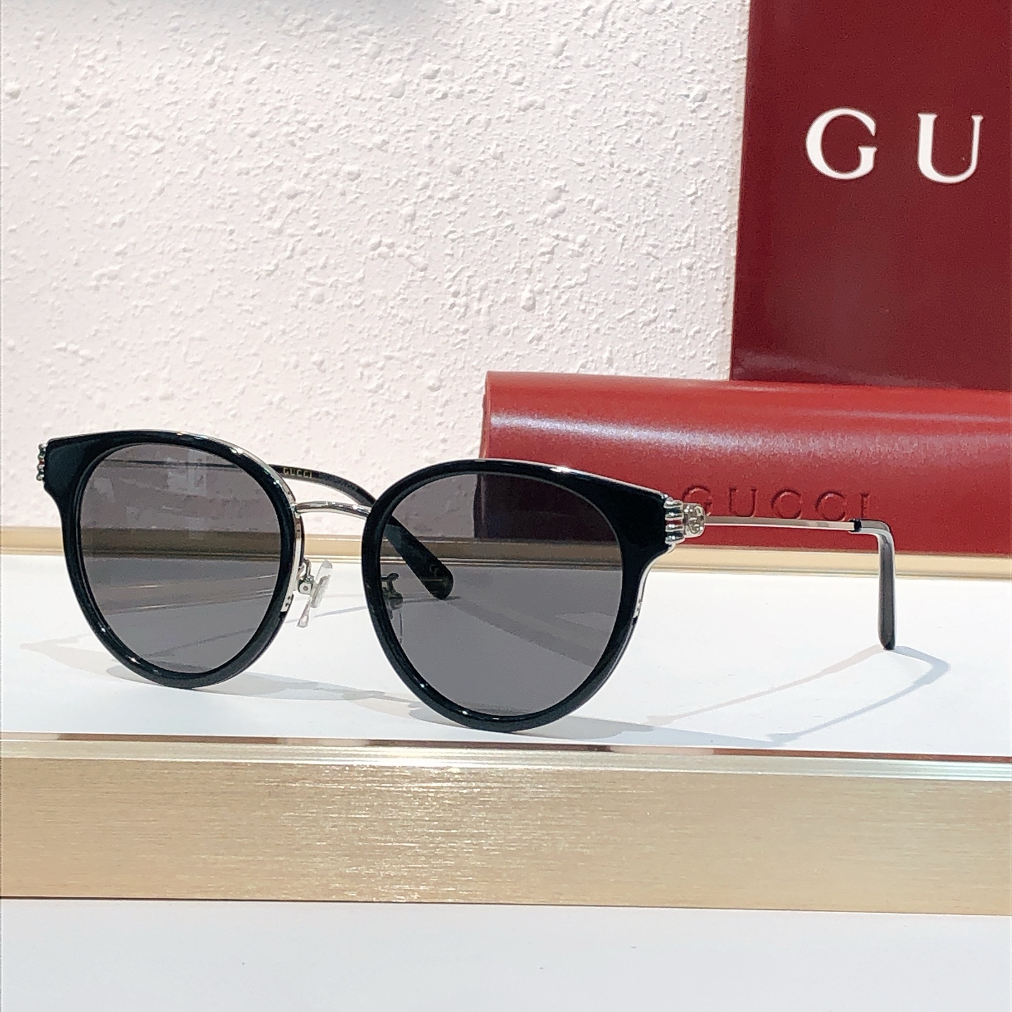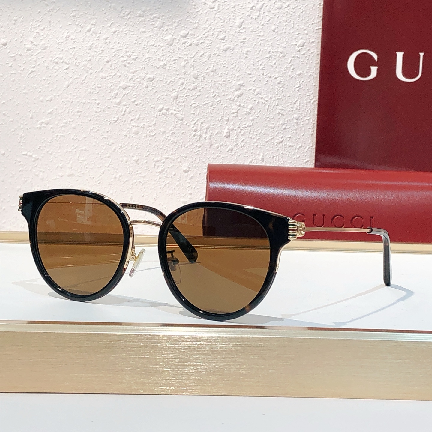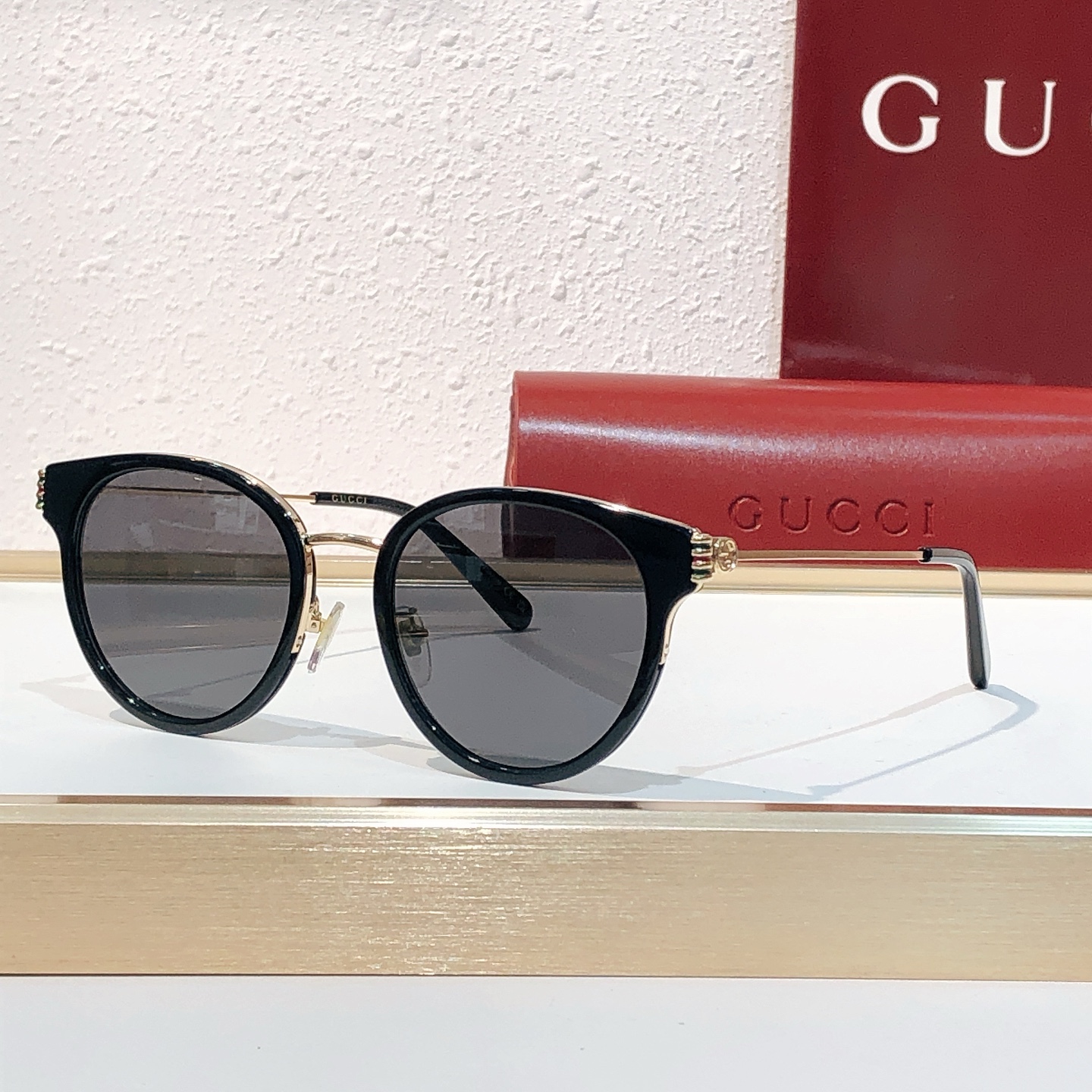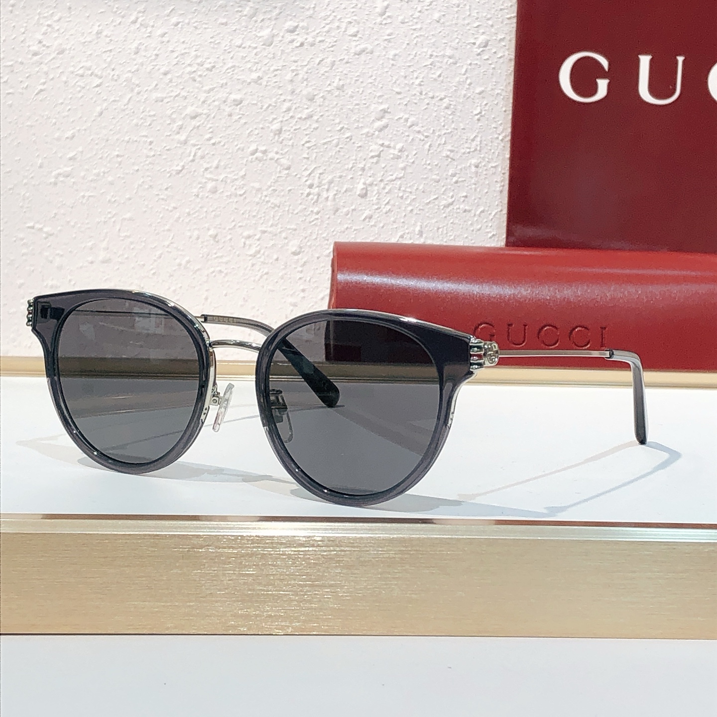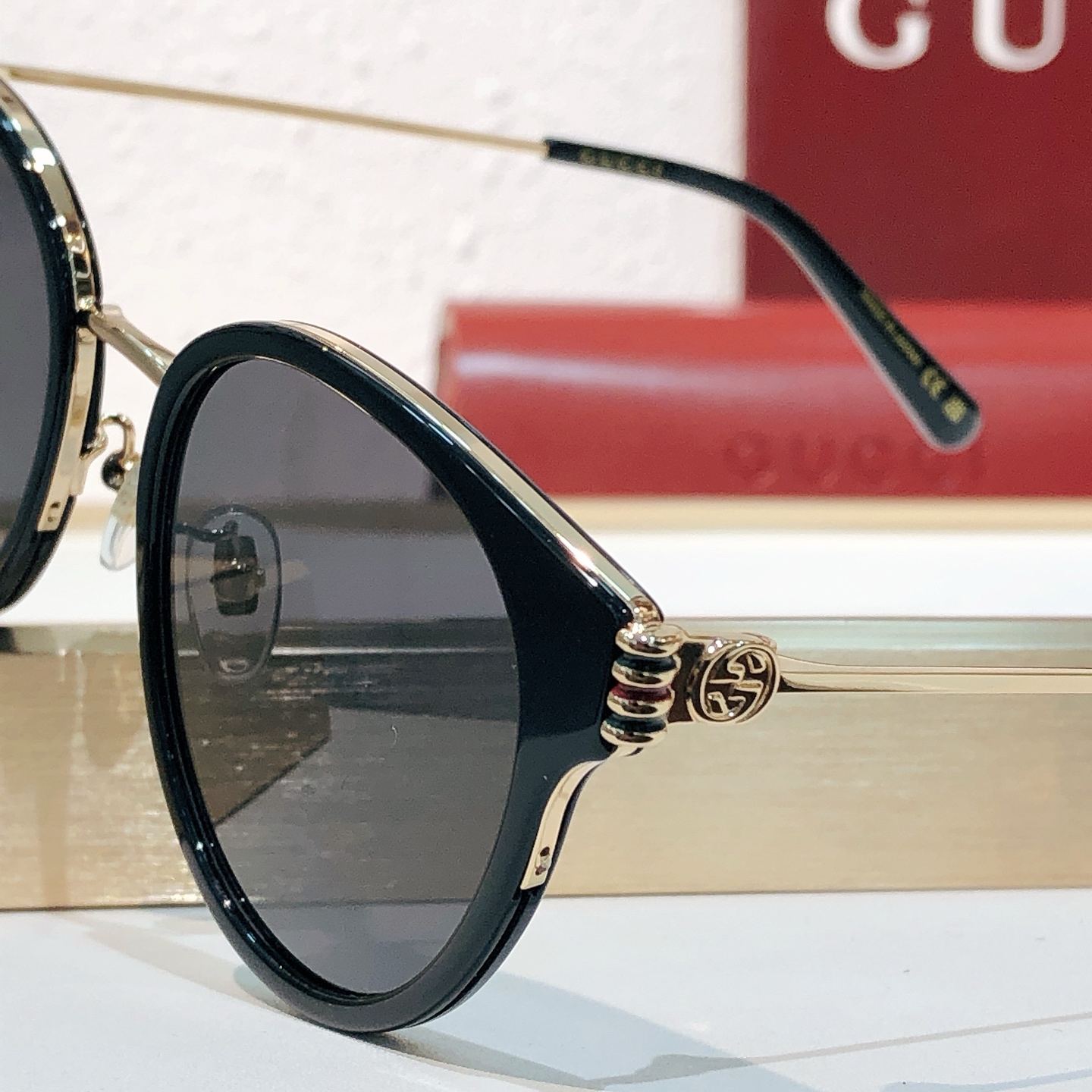 这款太阳眼镜是AAAAA 1:1 质量 (非常棒). 使用了和原版一模一样的材料. 商标部分也保持了和古奇/Gucci一样. 图片拍摄是实物太阳眼镜拍摄, 您所收到的实物保证和我们图片一模一样.