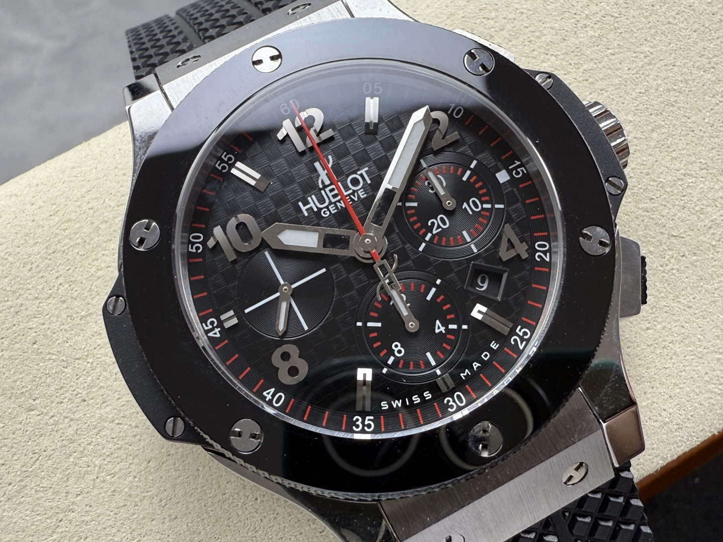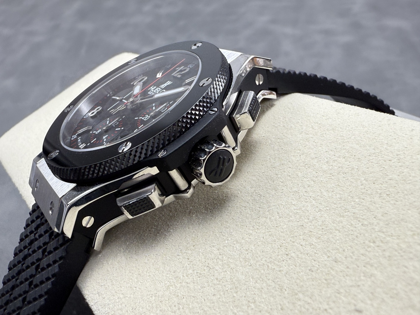 这款手表是AAAAA 1:1 质量 (非常棒). 使用了和原版一模一样的材料. 商标部分也保持了和Hublot一样. 图片拍摄是实物手表拍摄, 您所收到的实物保证和我们图片一模一样.