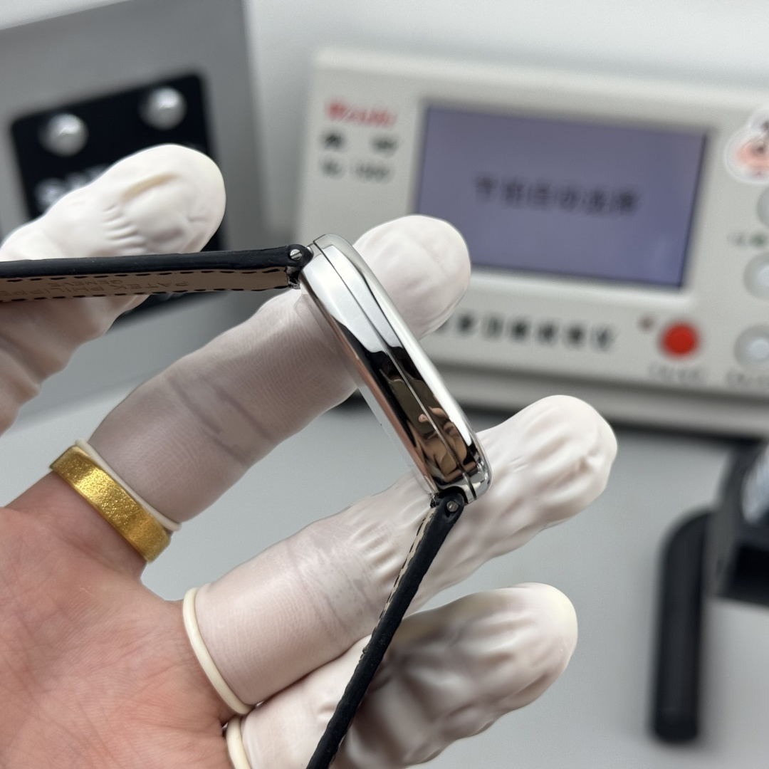 这款手表是AAAAA 1:1 质量 (非常棒). 使用了和原版一模一样的材料. 商标部分也保持了和百达翡丽/Patek Philippe一样. 图片拍摄是实物手表拍摄, 您所收到的实物保证和我们图片一模一样.