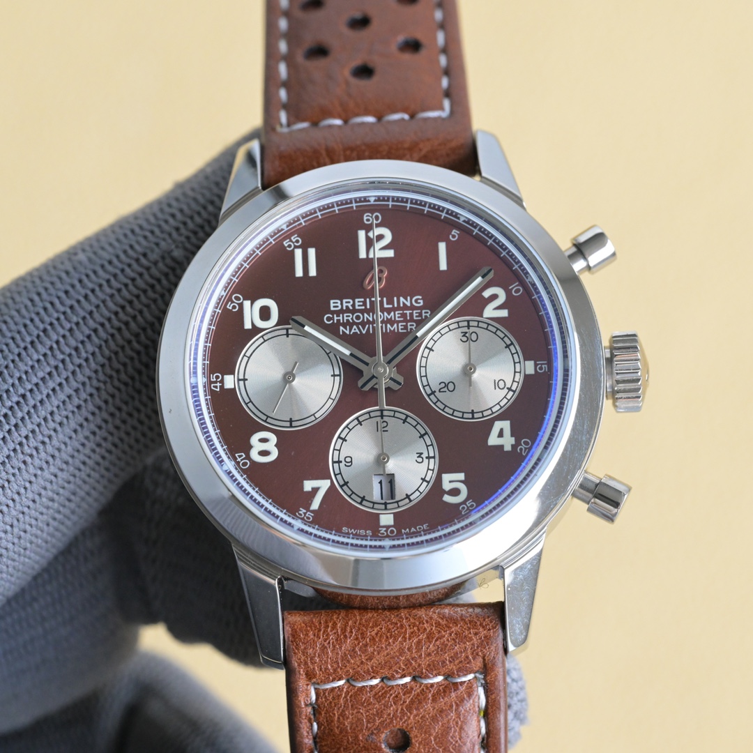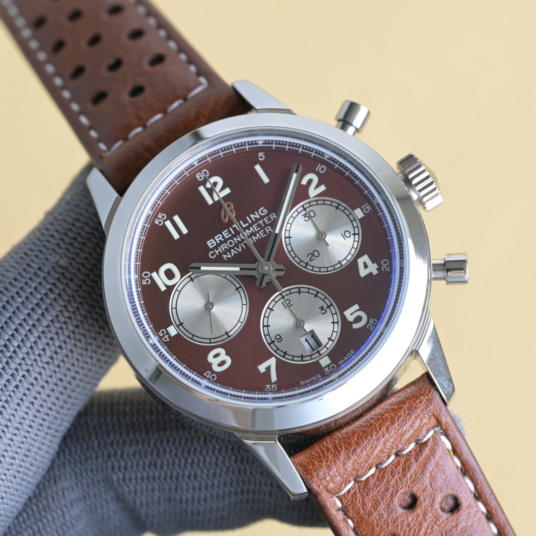 这款手表是AAAAA 1:1 质量 (非常棒). 使用了和原版一模一样的材料. 商标部分也保持了和Breitling一样. 图片拍摄是实物手表拍摄, 您所收到的实物保证和我们图片一模一样.