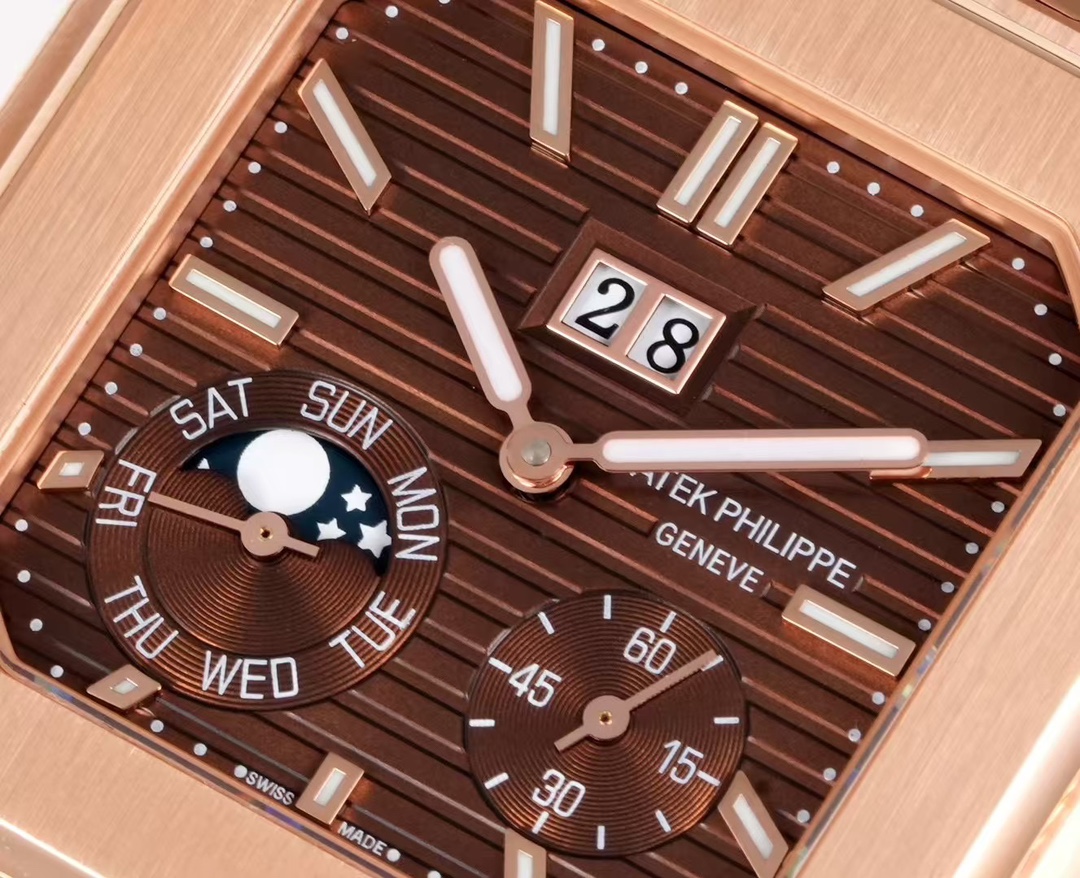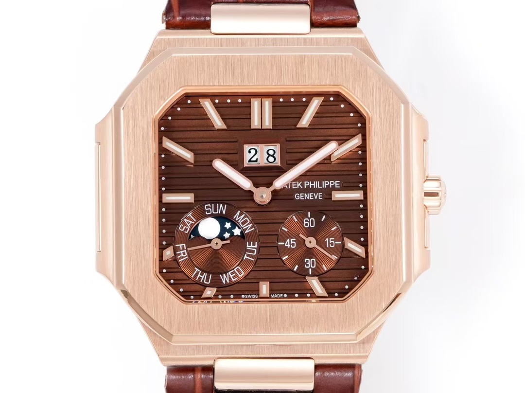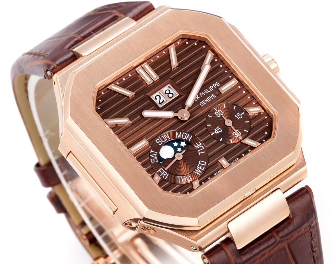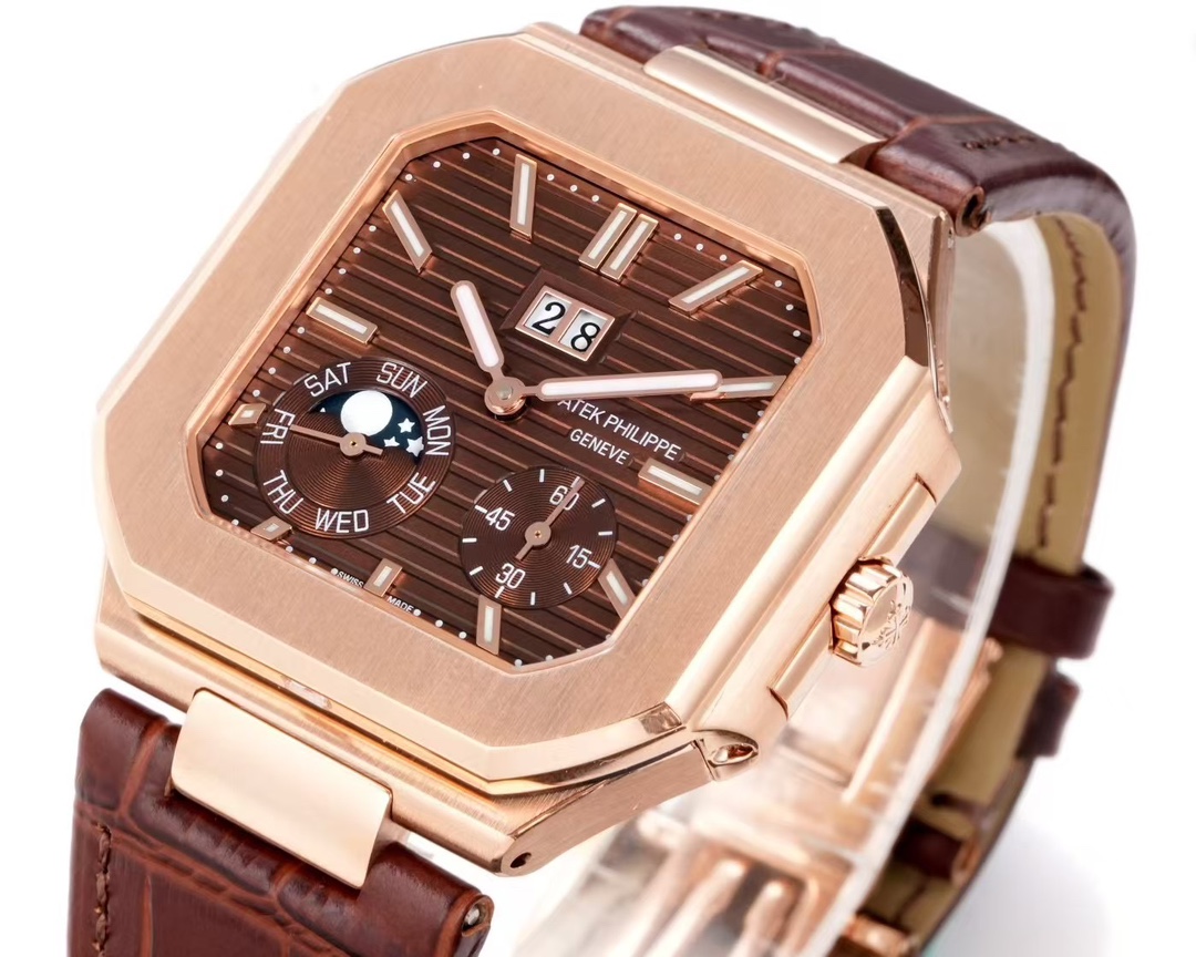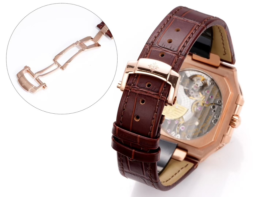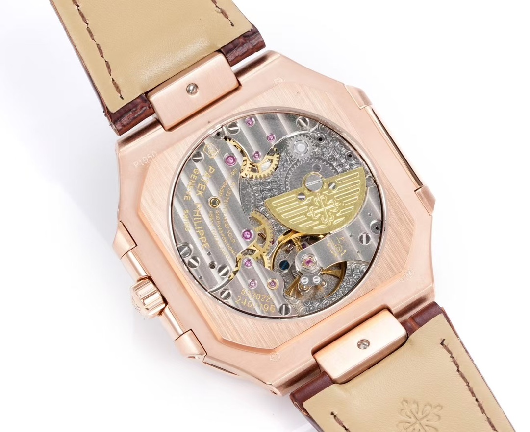 这款手表是AAAAA 1:1 质量 (非常棒). 使用了和原版一模一样的材料. 商标部分也保持了和百达翡丽/Patek Philippe一样. 图片拍摄是实物手表拍摄, 您所收到的实物保证和我们图片一模一样.