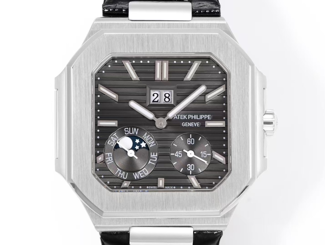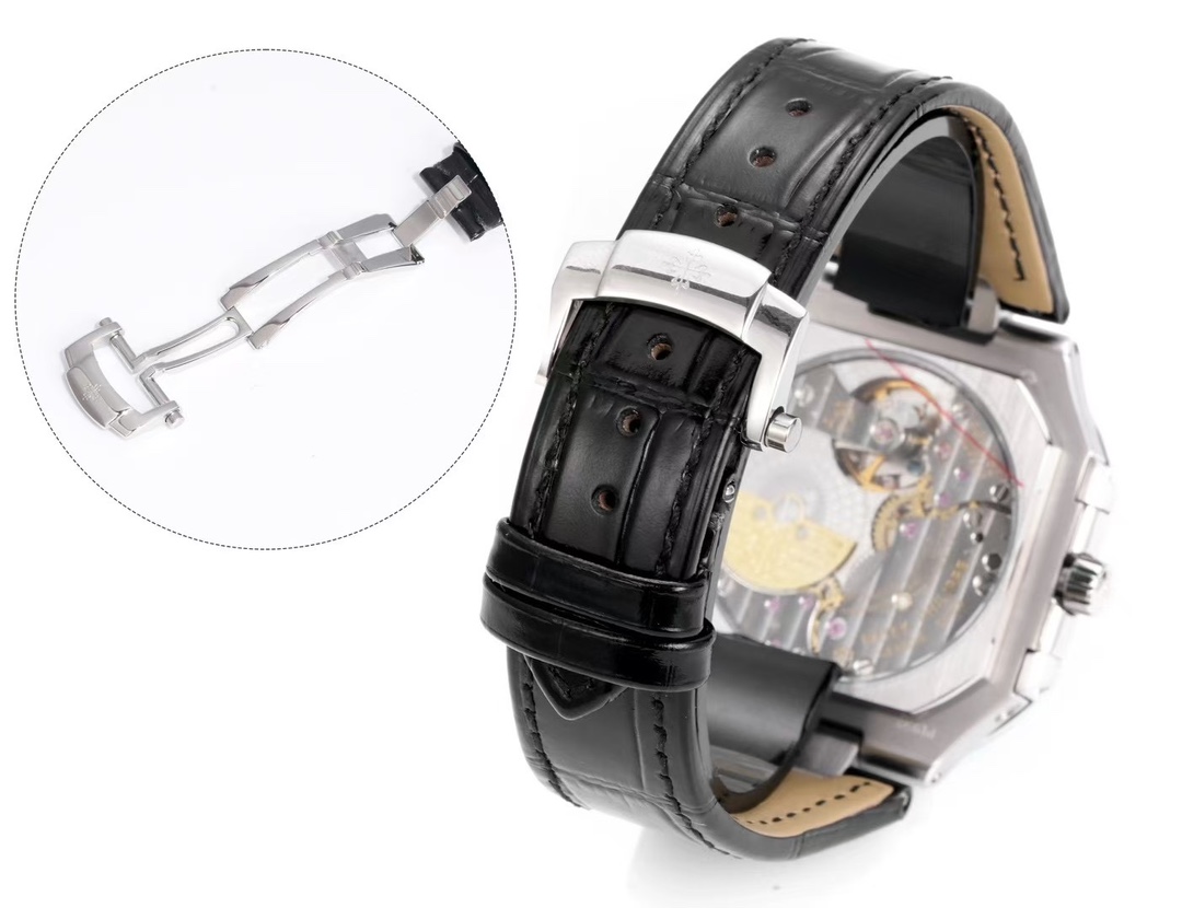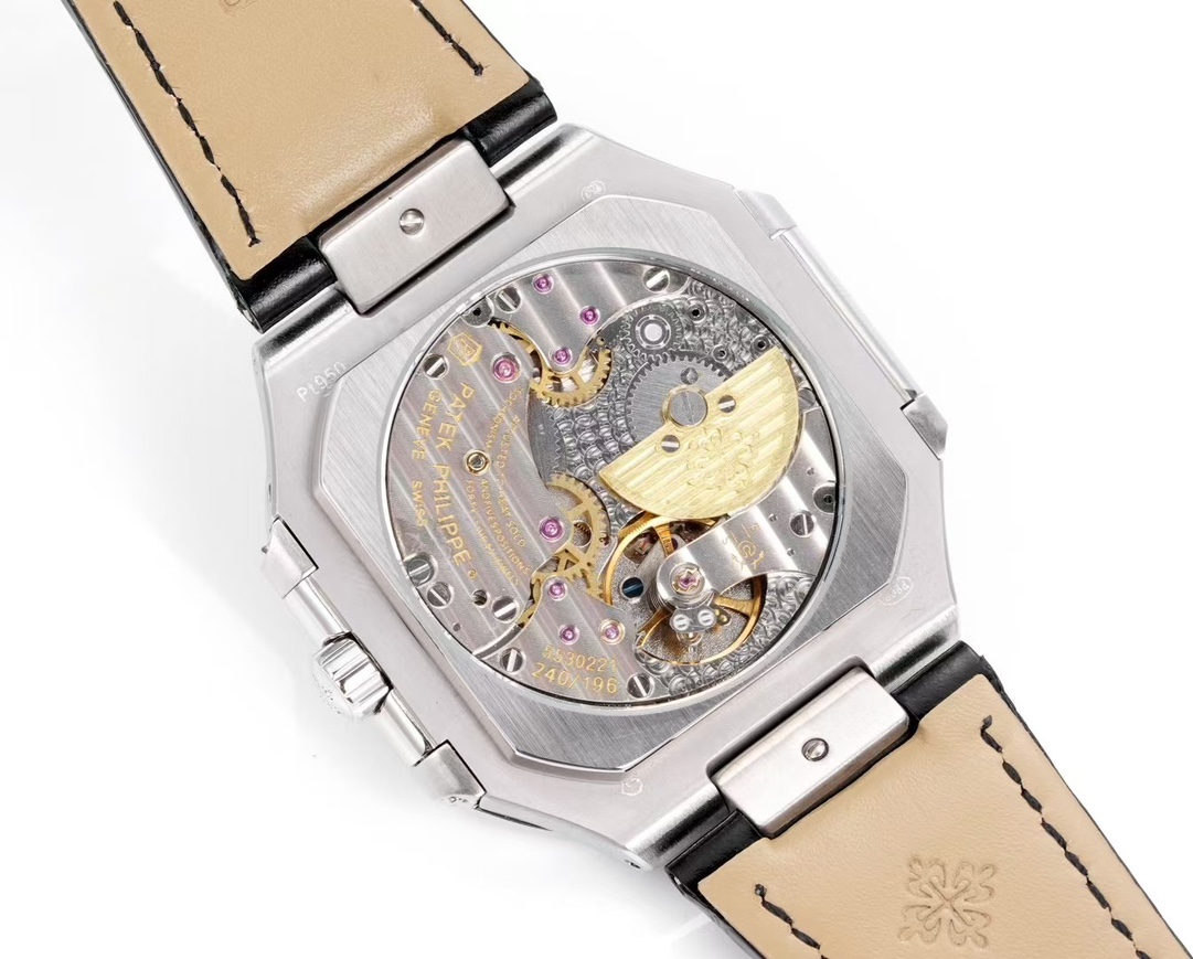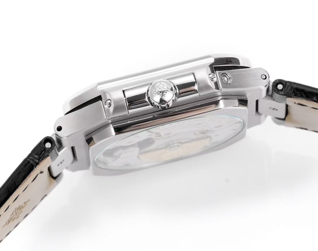 这款手表是AAAAA 1:1 质量 (非常棒). 使用了和原版一模一样的材料. 商标部分也保持了和百达翡丽/Patek Philippe一样. 图片拍摄是实物手表拍摄, 您所收到的实物保证和我们图片一模一样.
