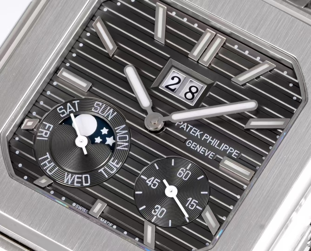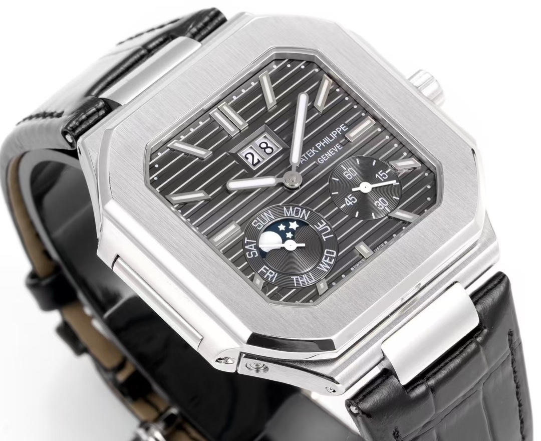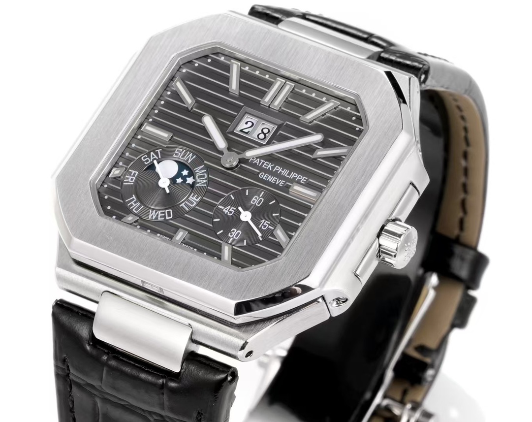 这款手表是AAAAA 1:1 质量 (非常棒). 使用了和原版一模一样的材料. 商标部分也保持了和百达翡丽/Patek Philippe一样. 图片拍摄是实物手表拍摄, 您所收到的实物保证和我们图片一模一样.