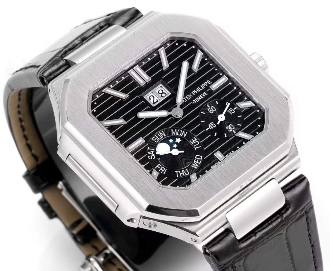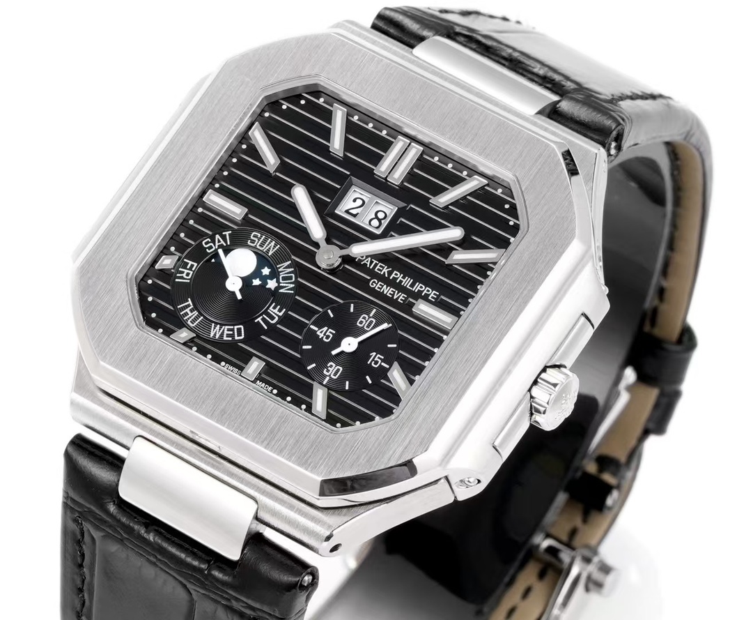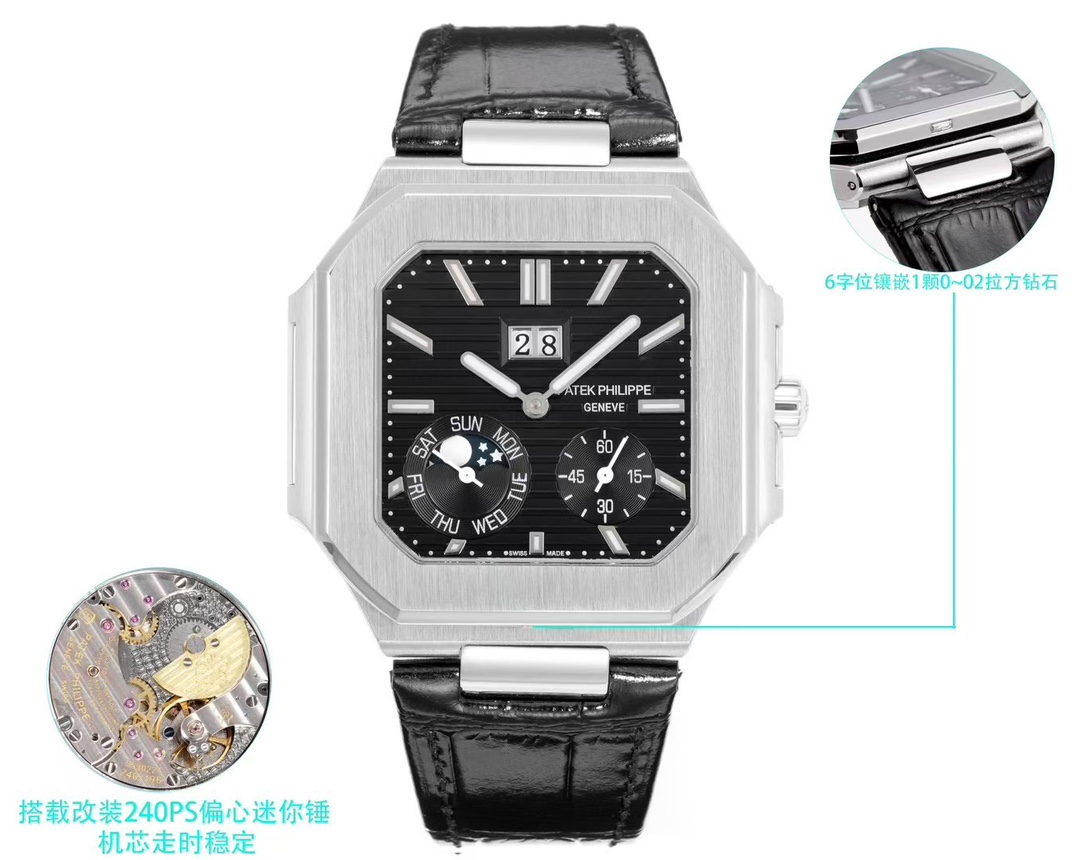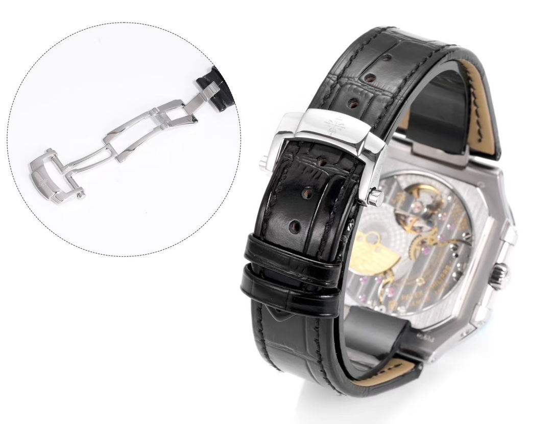 这款手表是AAAAA 1:1 质量 (非常棒). 使用了和原版一模一样的材料. 商标部分也保持了和百达翡丽/Patek Philippe一样. 图片拍摄是实物手表拍摄, 您所收到的实物保证和我们图片一模一样.