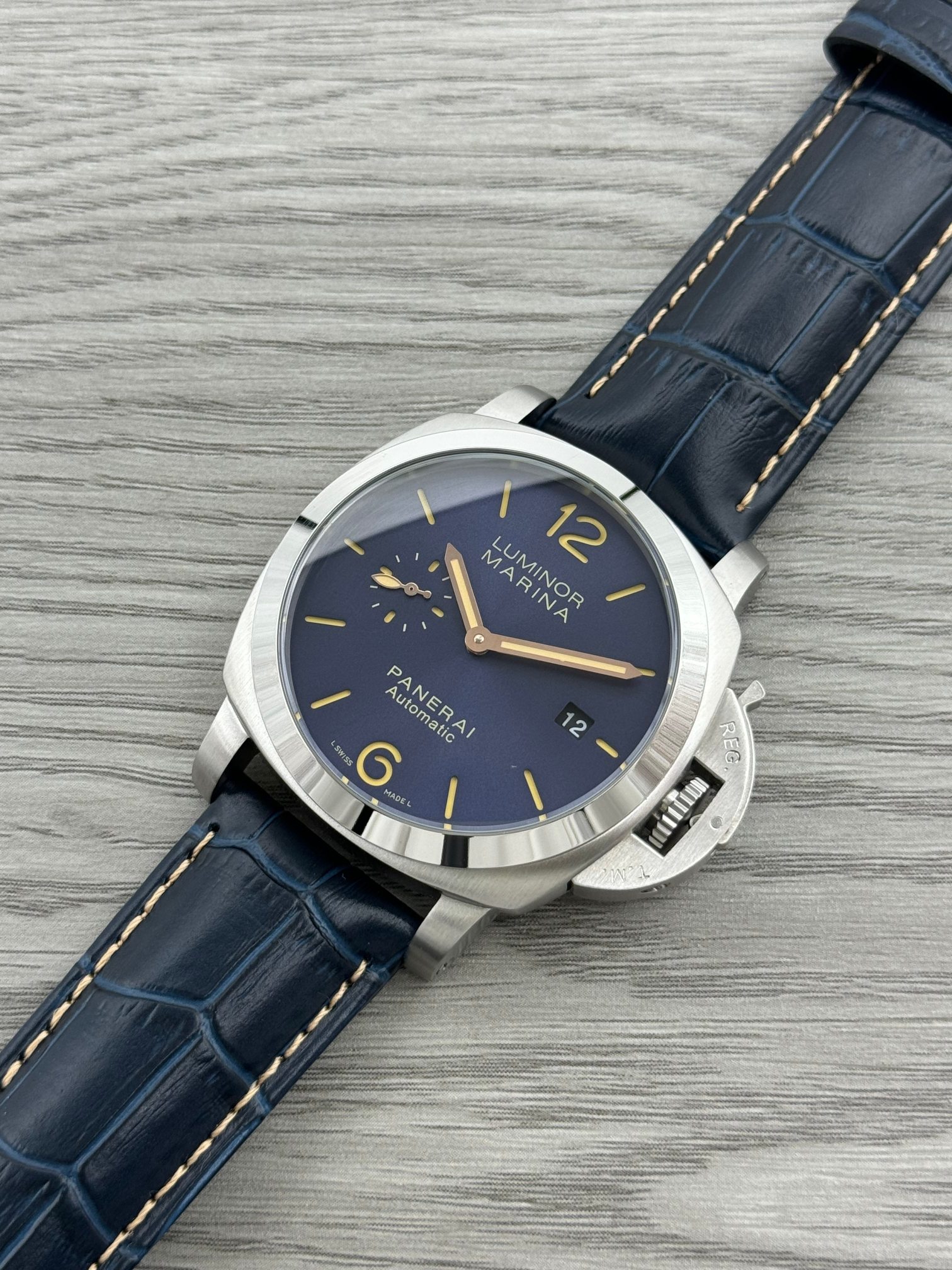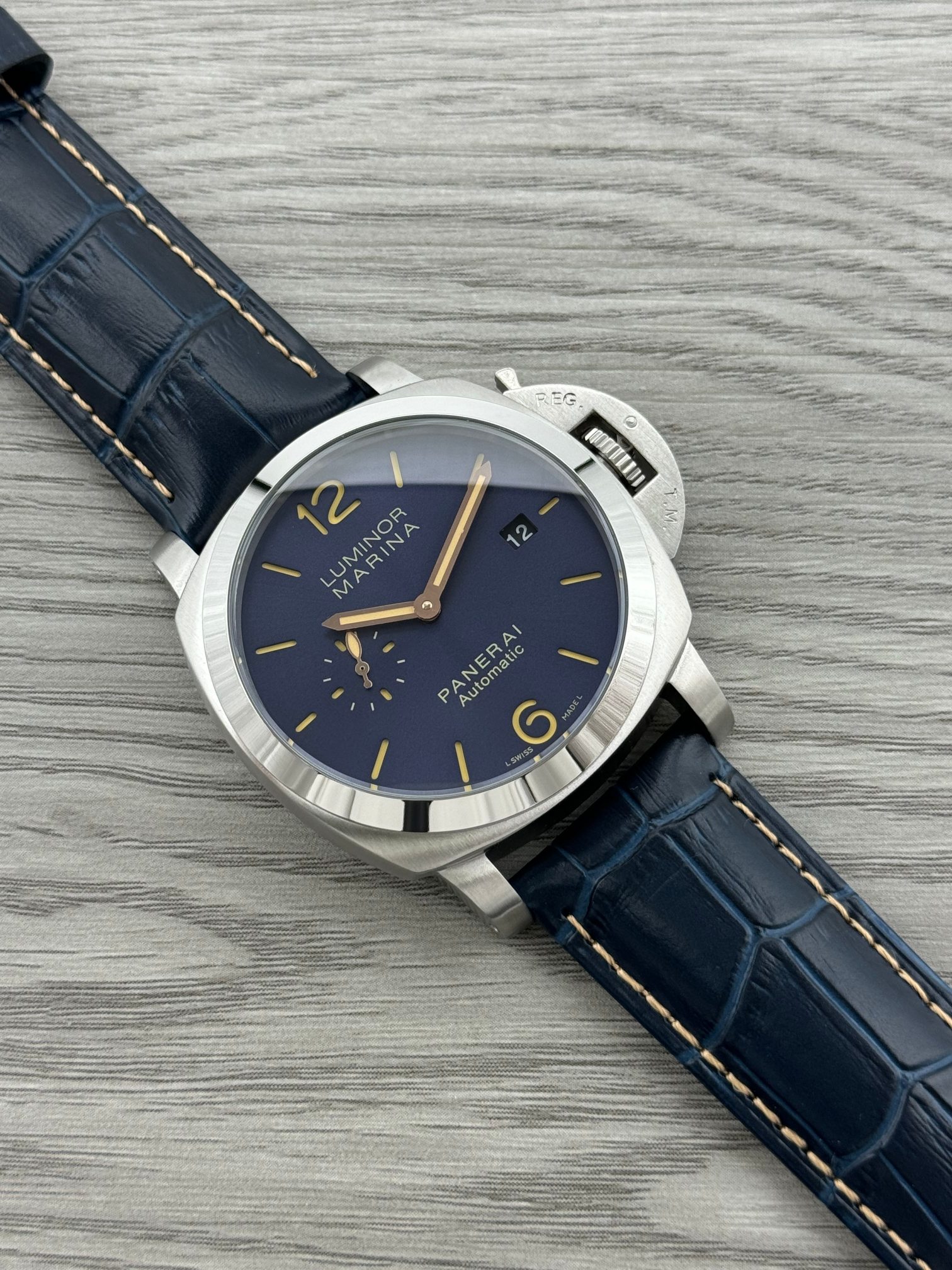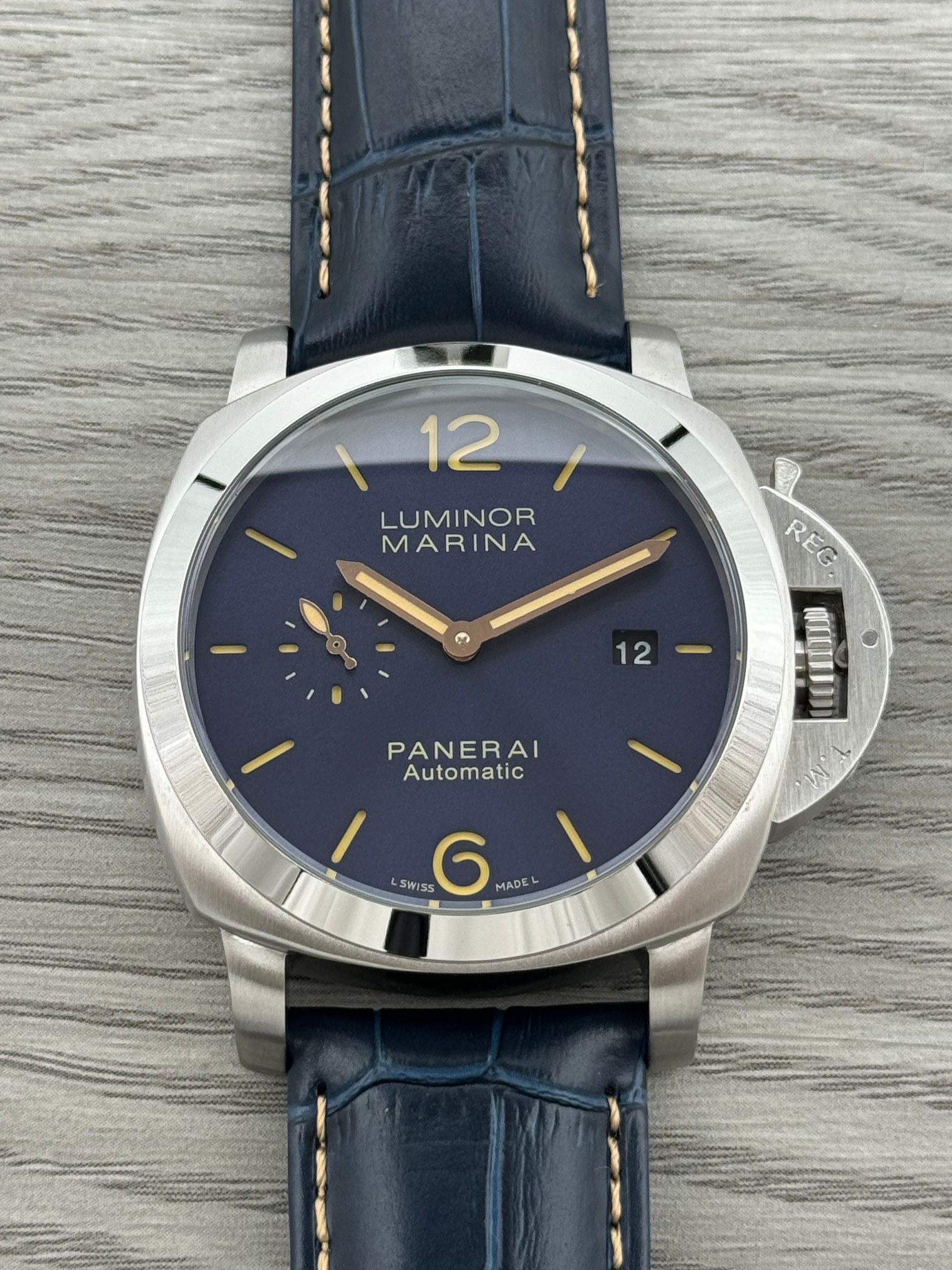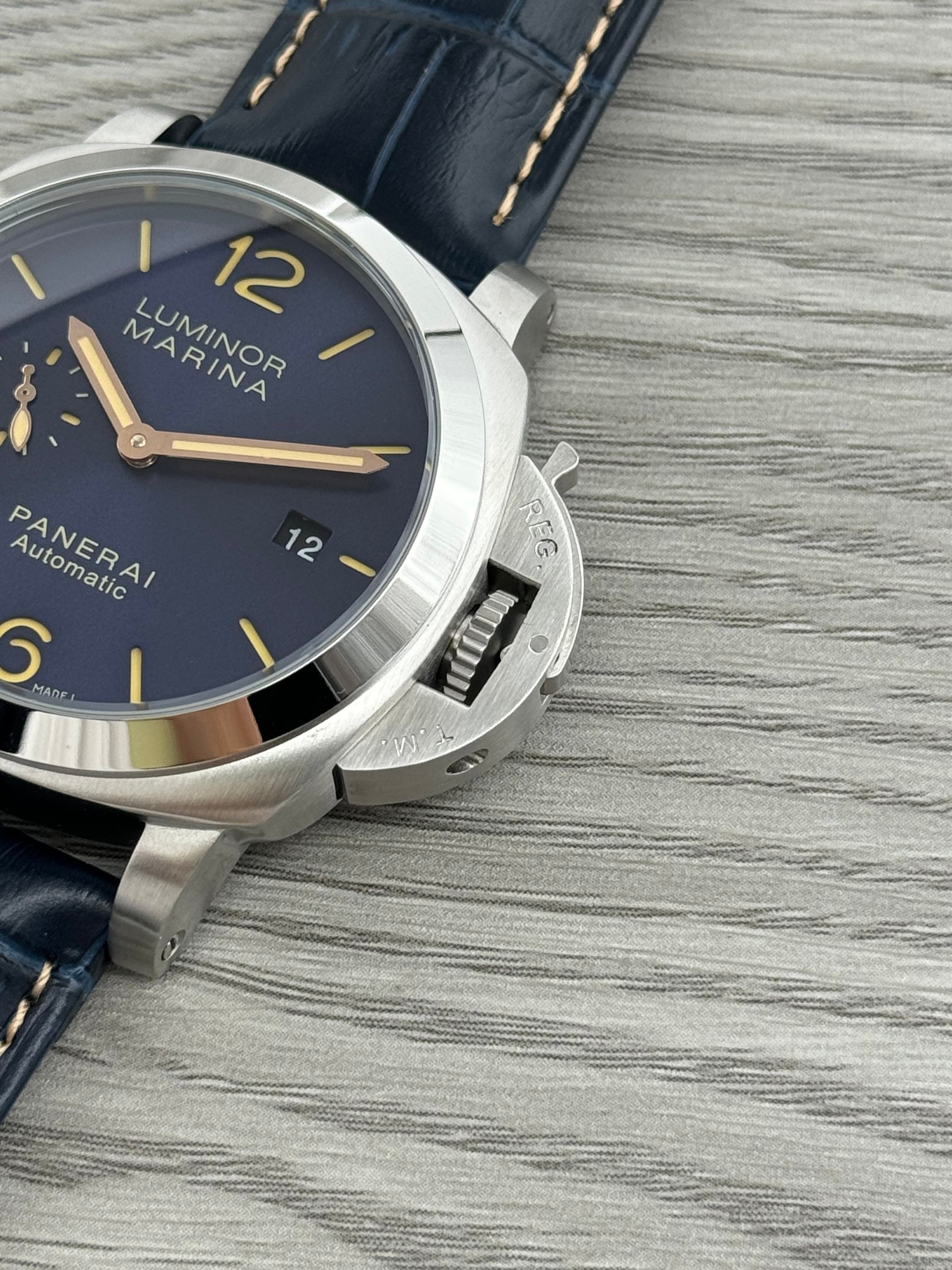 这款手表是AAAAA 1:1 质量 (非常棒). 使用了和原版一模一样的材料. 商标部分也保持了和沛纳海/Panerai一样. 图片拍摄是实物手表拍摄, 您所收到的实物保证和我们图片一模一样.