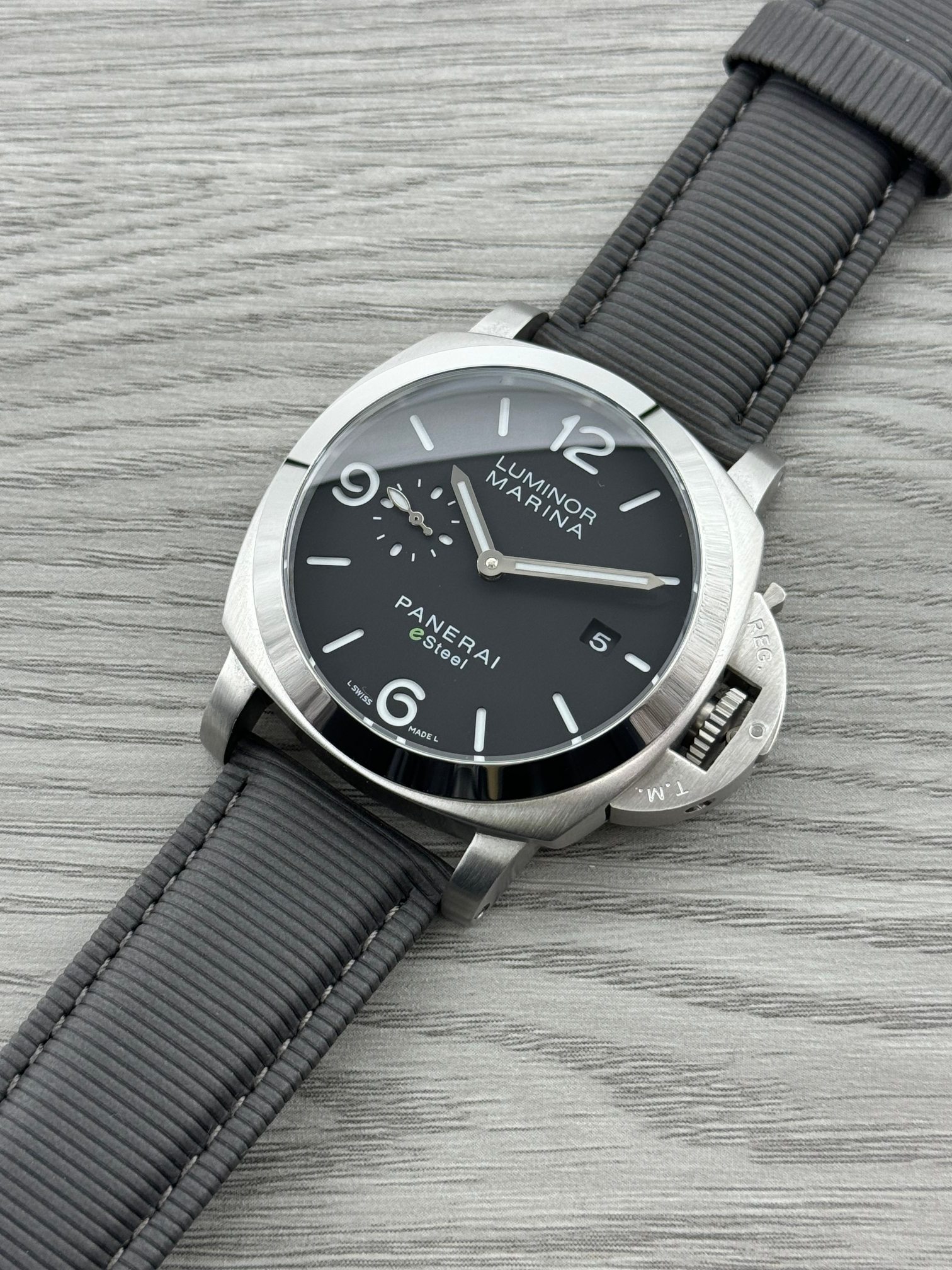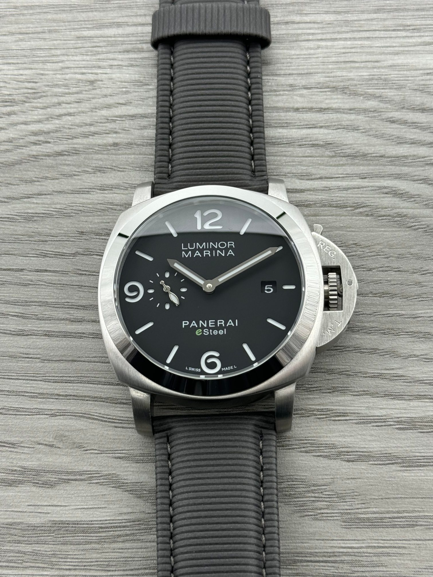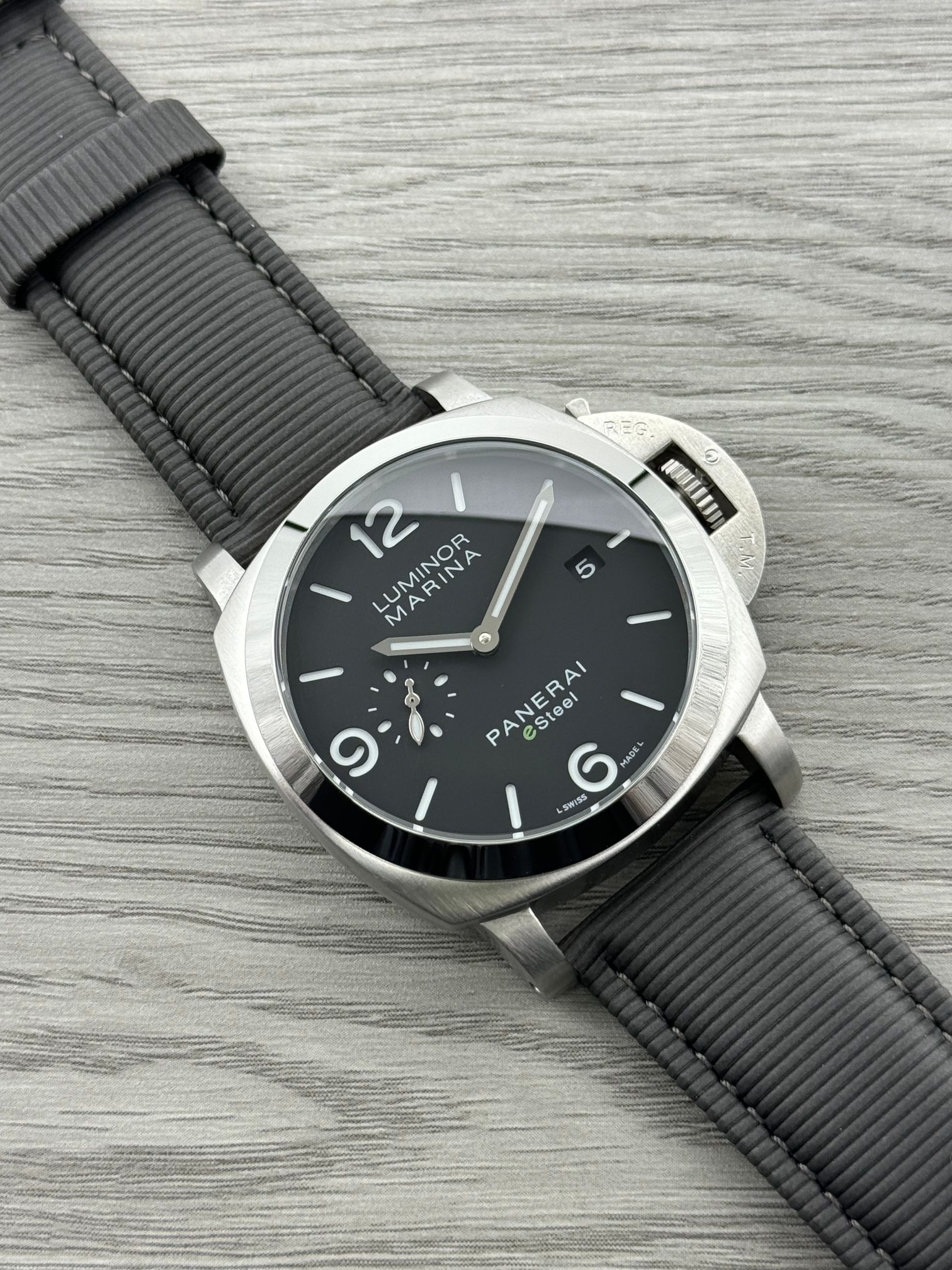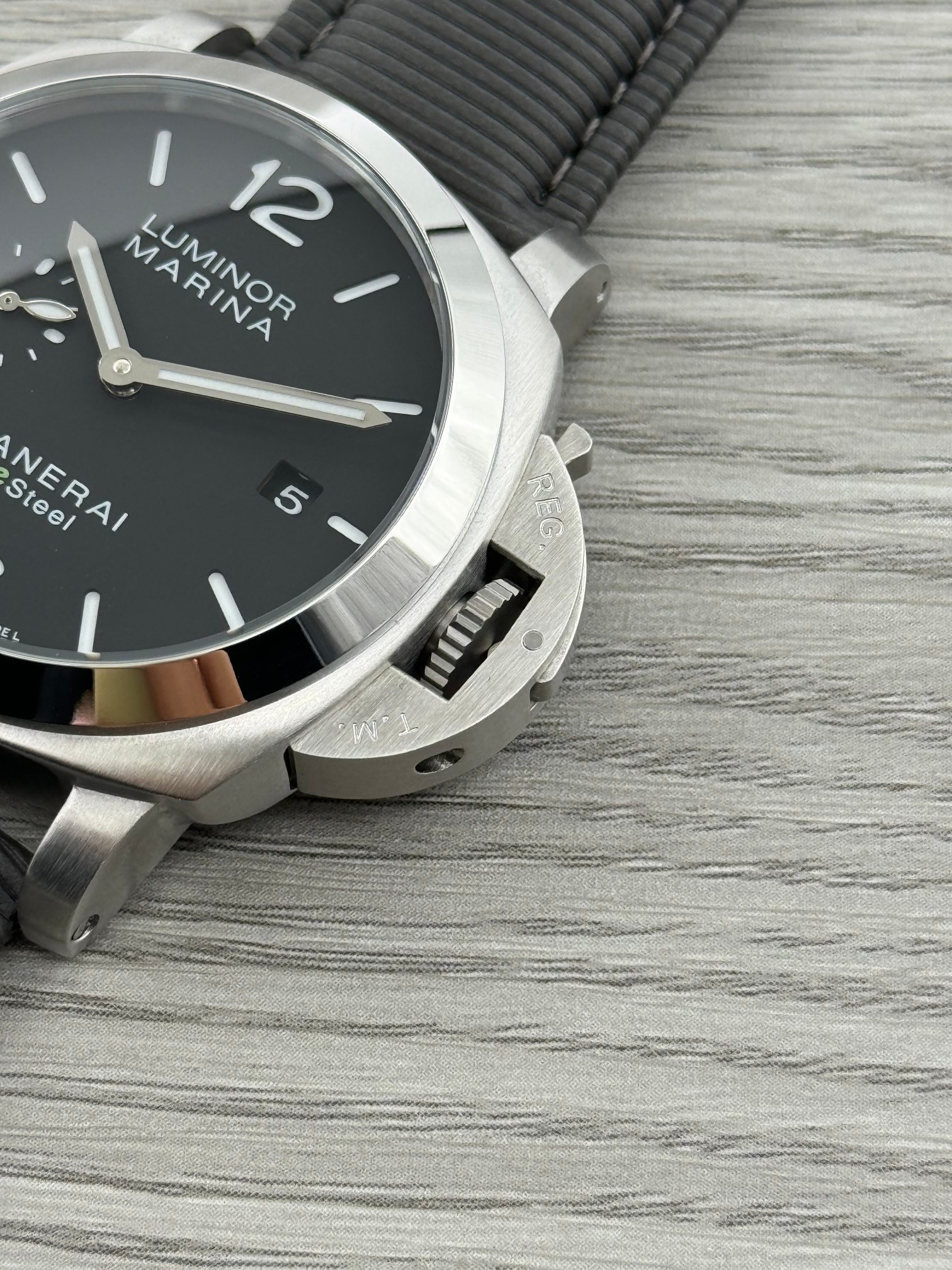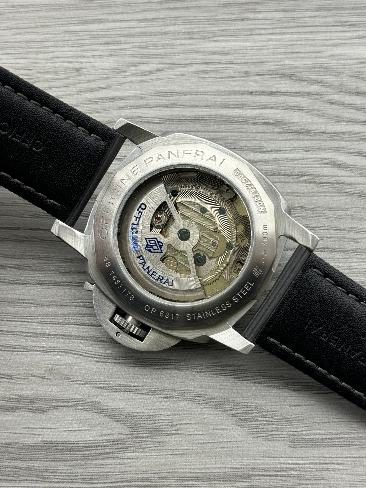 这款手表是AAAAA 1:1 质量 (非常棒). 使用了和原版一模一样的材料. 商标部分也保持了和沛纳海/Panerai一样. 图片拍摄是实物手表拍摄, 您所收到的实物保证和我们图片一模一样.