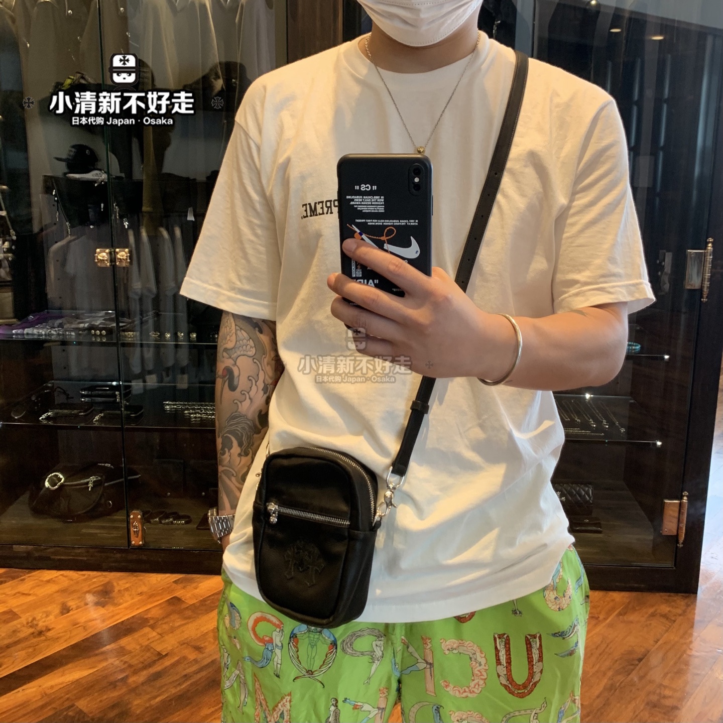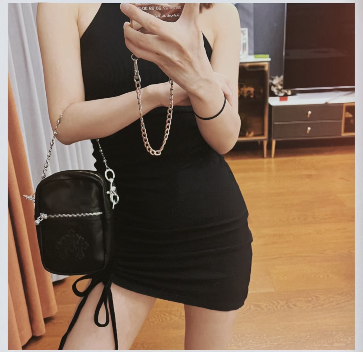 这款包包是AAAAA 1:1 质量 (非常棒). 使用了和原版一模一样的材料. 商标部分也保持了和克罗心/Chrome Hearts一样. 图片拍摄是实物包包拍摄, 您所收到的实物保证和我们图片一模一样.