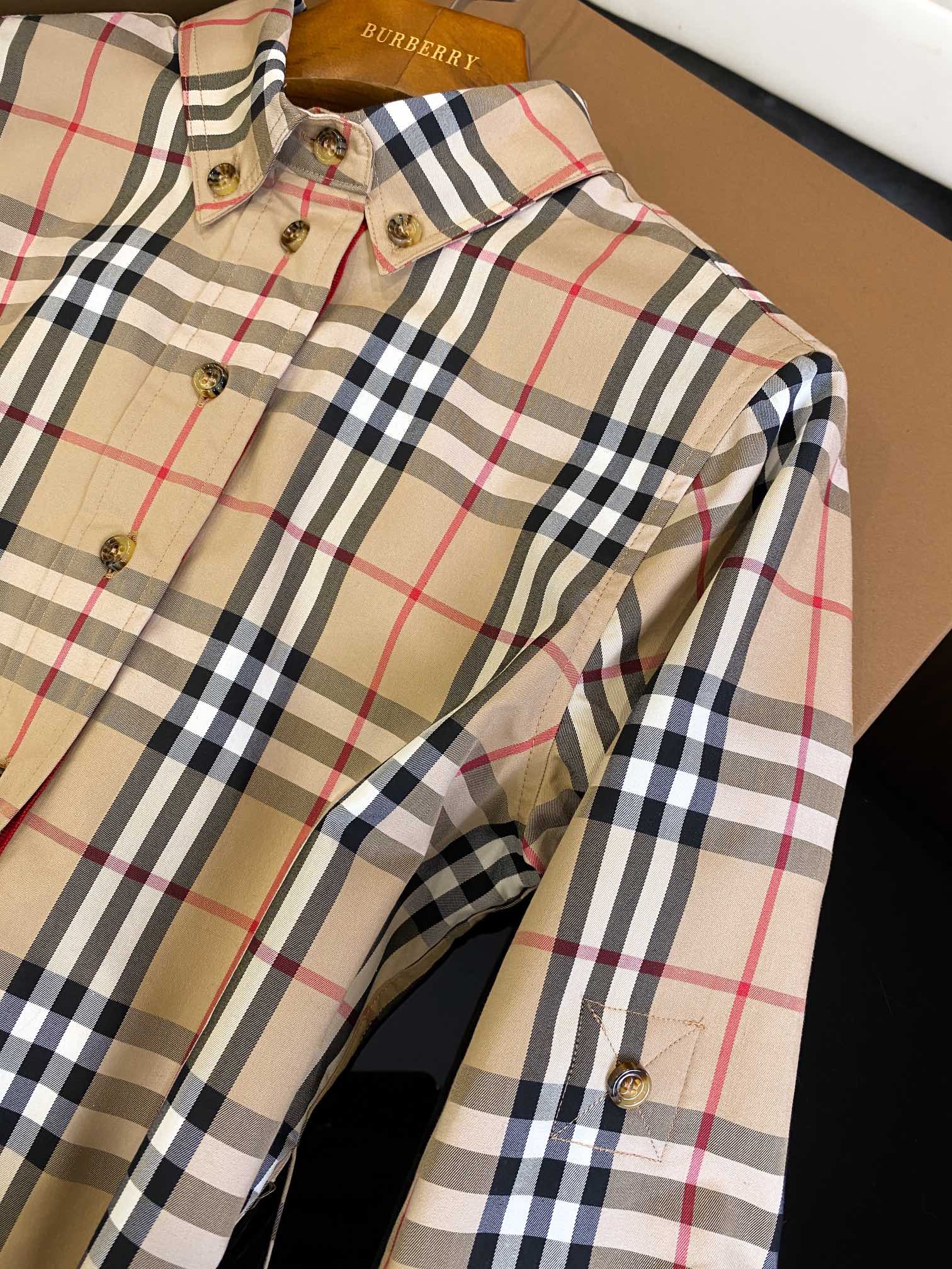 这款衣服是AAAAA 1:1 质量 (非常棒). 使用了和原版一模一样的材料. 商标部分也保持了和巴宝莉/Burberry一样. 图片拍摄是实物衣服拍摄, 您所收到的实物保证和我们图片一模一样.