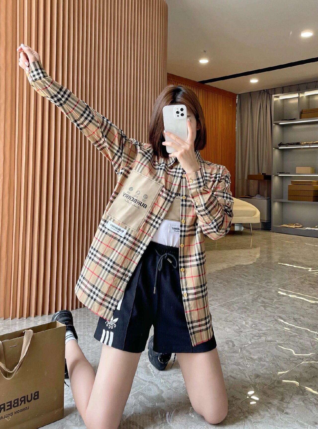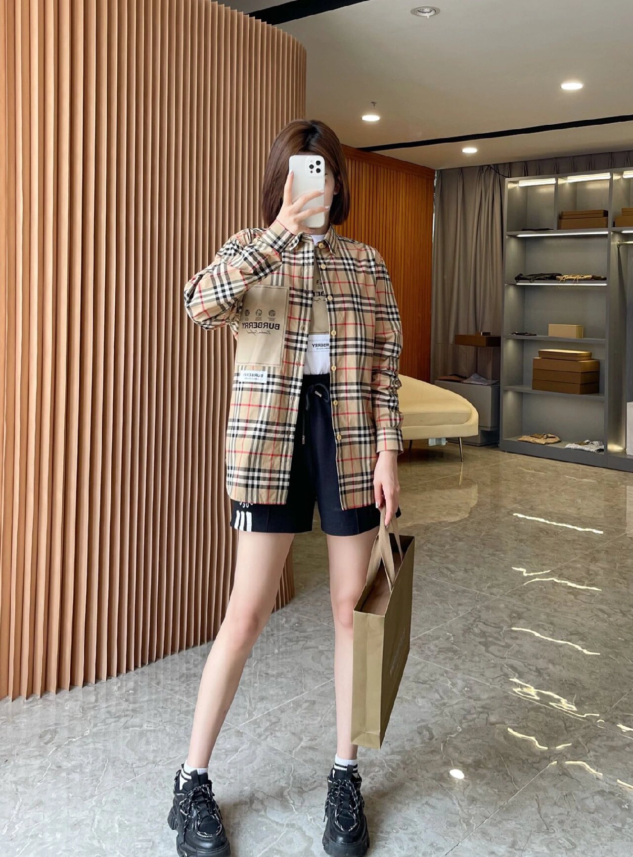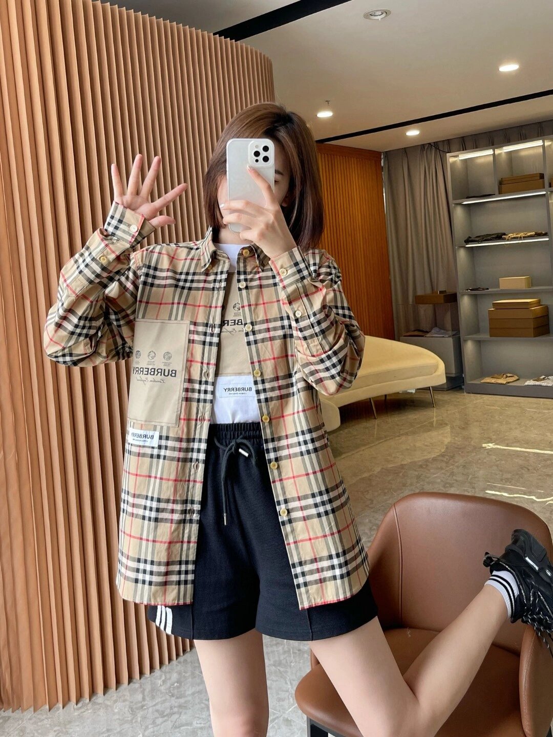 这款衣服是AAAAA 1:1 质量 (非常棒). 使用了和原版一模一样的材料. 商标部分也保持了和巴宝莉/Burberry一样. 图片拍摄是实物衣服拍摄, 您所收到的实物保证和我们图片一模一样.