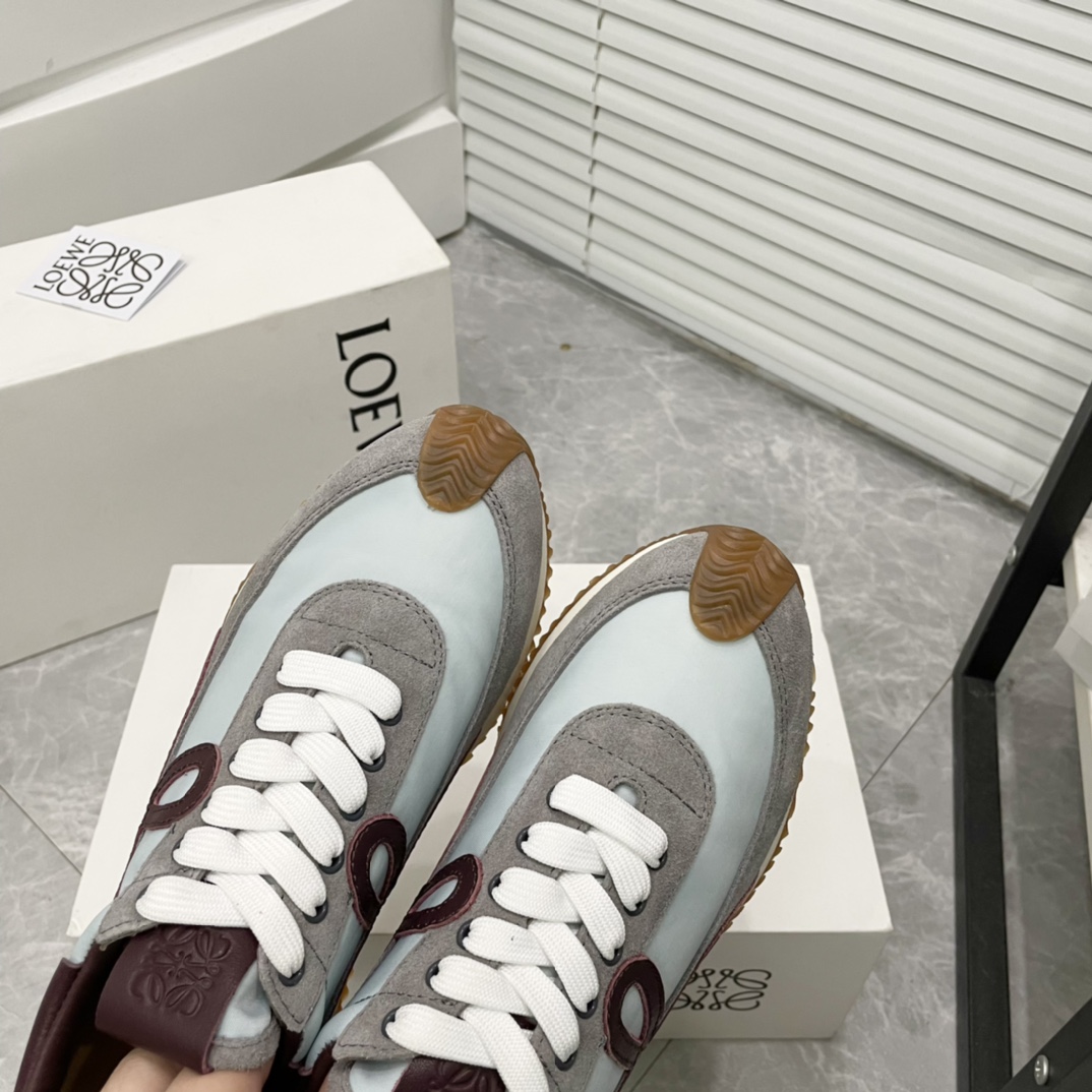 这款鞋子是AAAAA 1:1 质量 (非常棒). 使用了和原版一模一样的材料. 商标部分也保持了和罗意威/Loewe一样. 图片拍摄是实物鞋子拍摄, 您所收到的实物保证和我们图片一模一样.
