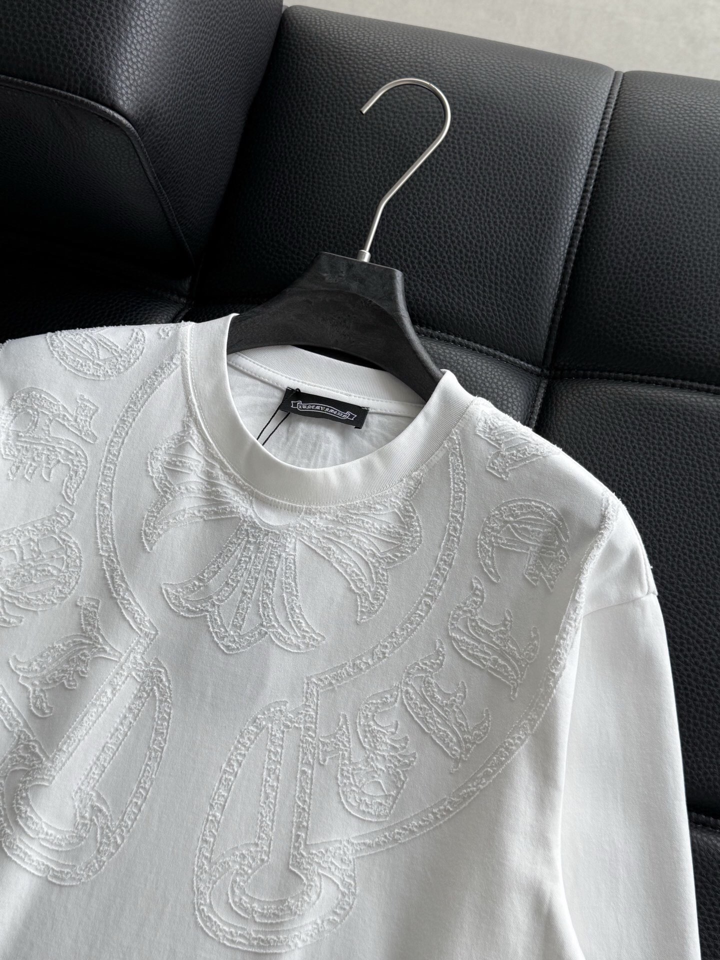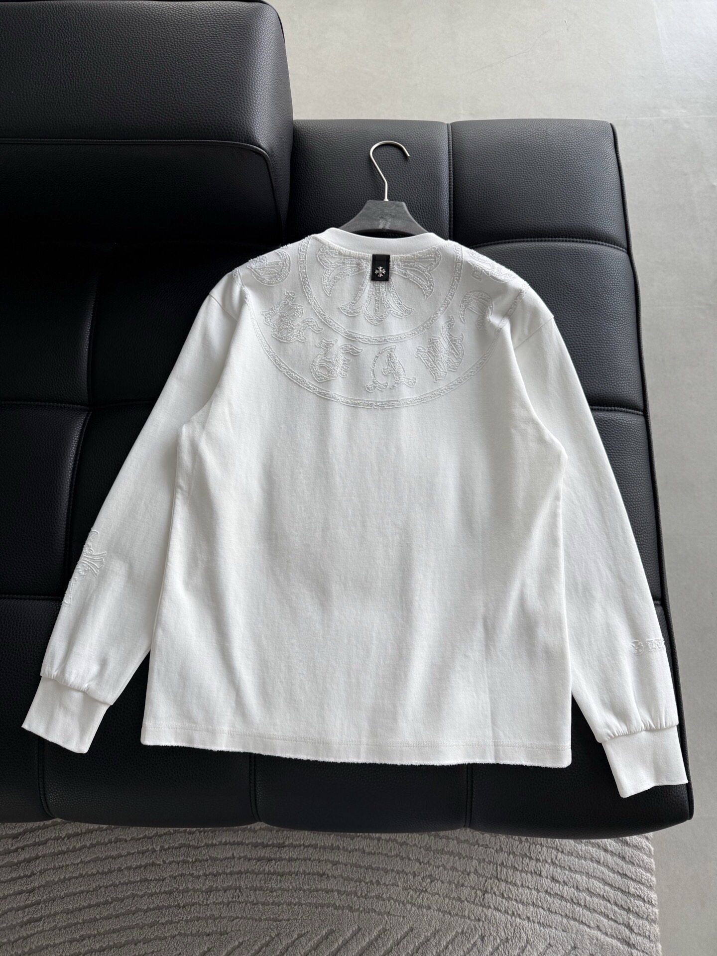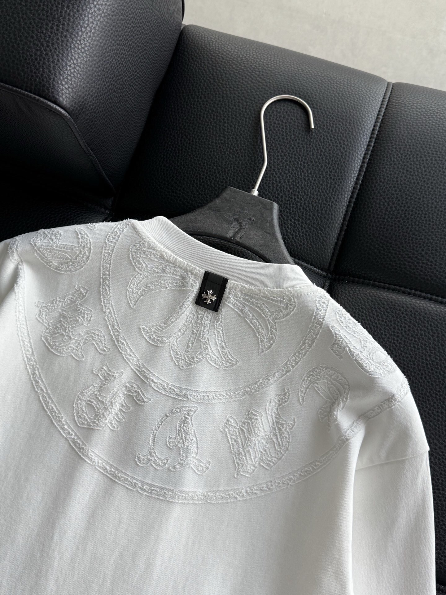 这款衣服是AAAAA 1:1 质量 (非常棒). 使用了和原版一模一样的材料. 商标部分也保持了和克罗心/Chrome Hearts一样. 图片拍摄是实物衣服拍摄, 您所收到的实物保证和我们图片一模一样.