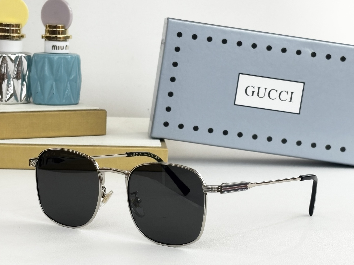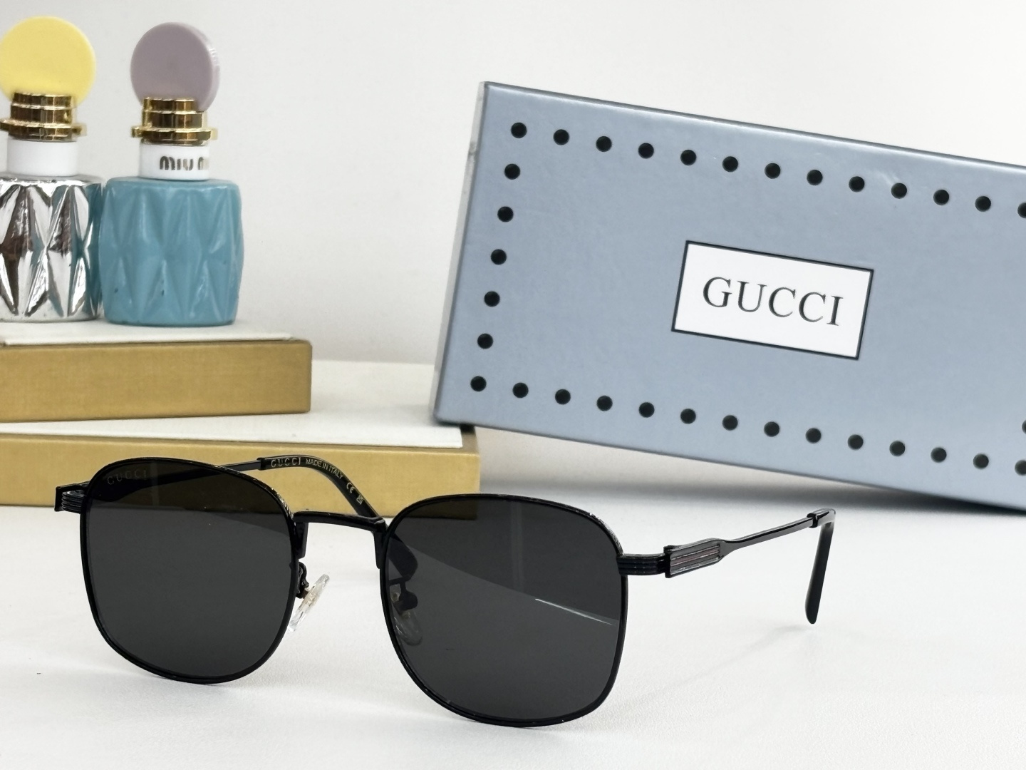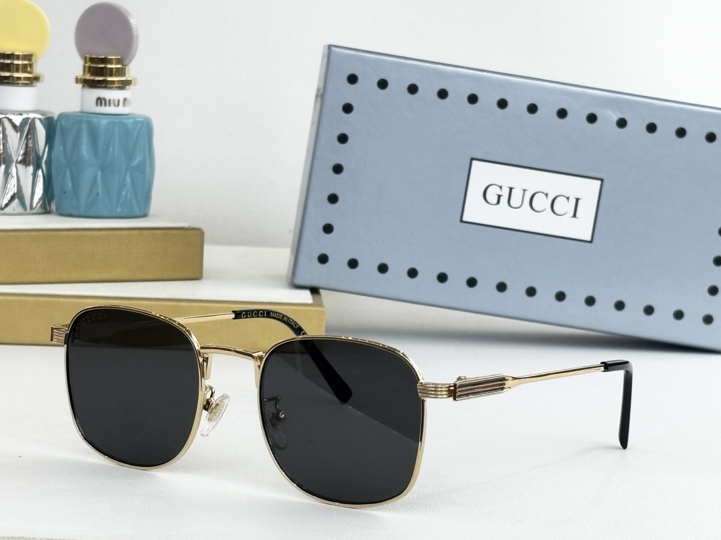 这款太阳眼镜是AAAAA 1:1 质量 (非常棒). 使用了和原版一模一样的材料. 商标部分也保持了和古奇/Gucci一样. 图片拍摄是实物太阳眼镜拍摄, 您所收到的实物保证和我们图片一模一样.