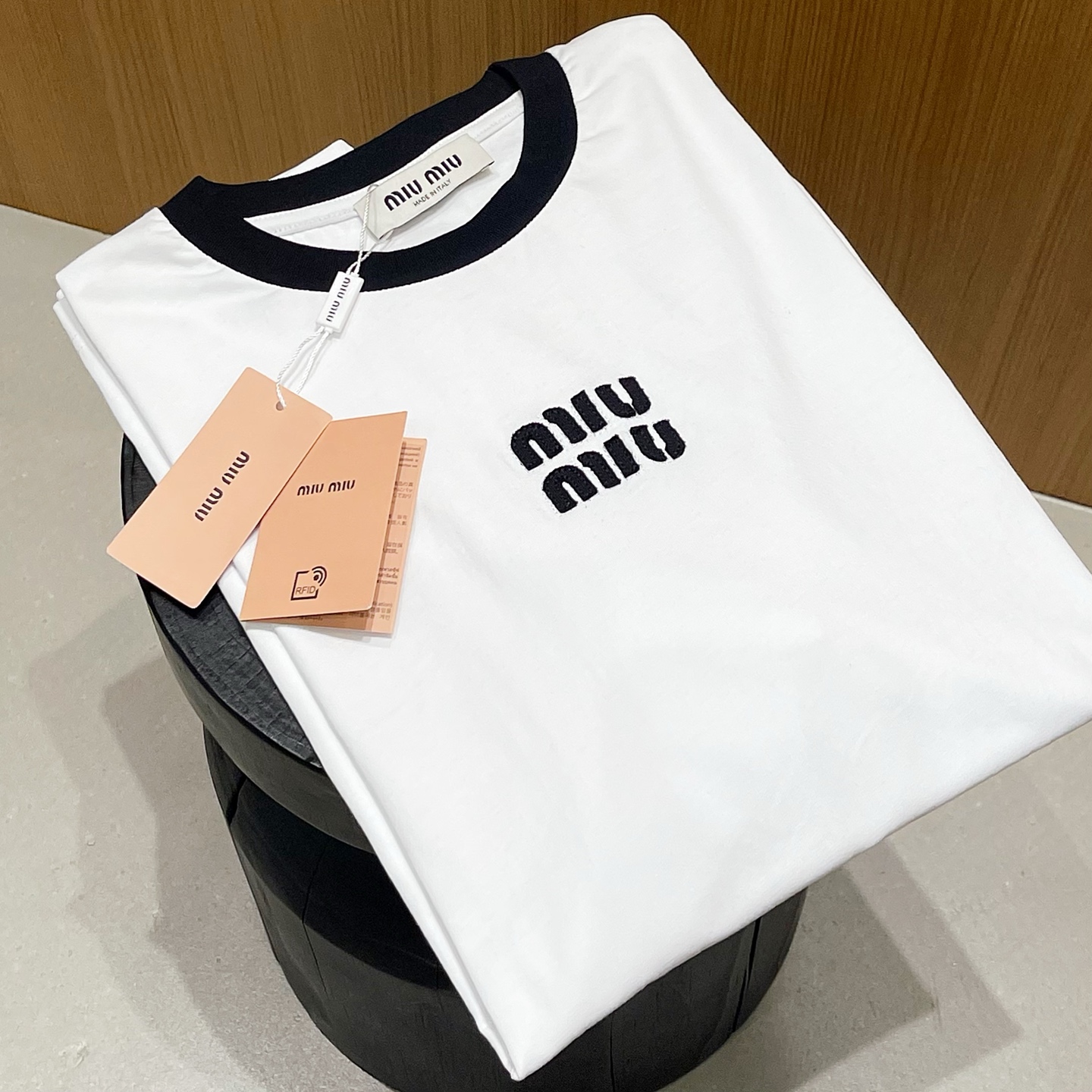 这款衣服是AAAAA 1:1 质量 (非常棒). 使用了和原版一模一样的材料. 商标部分也保持了和缪缪/Miu Miu一样. 图片拍摄是实物衣服拍摄, 您所收到的实物保证和我们图片一模一样.