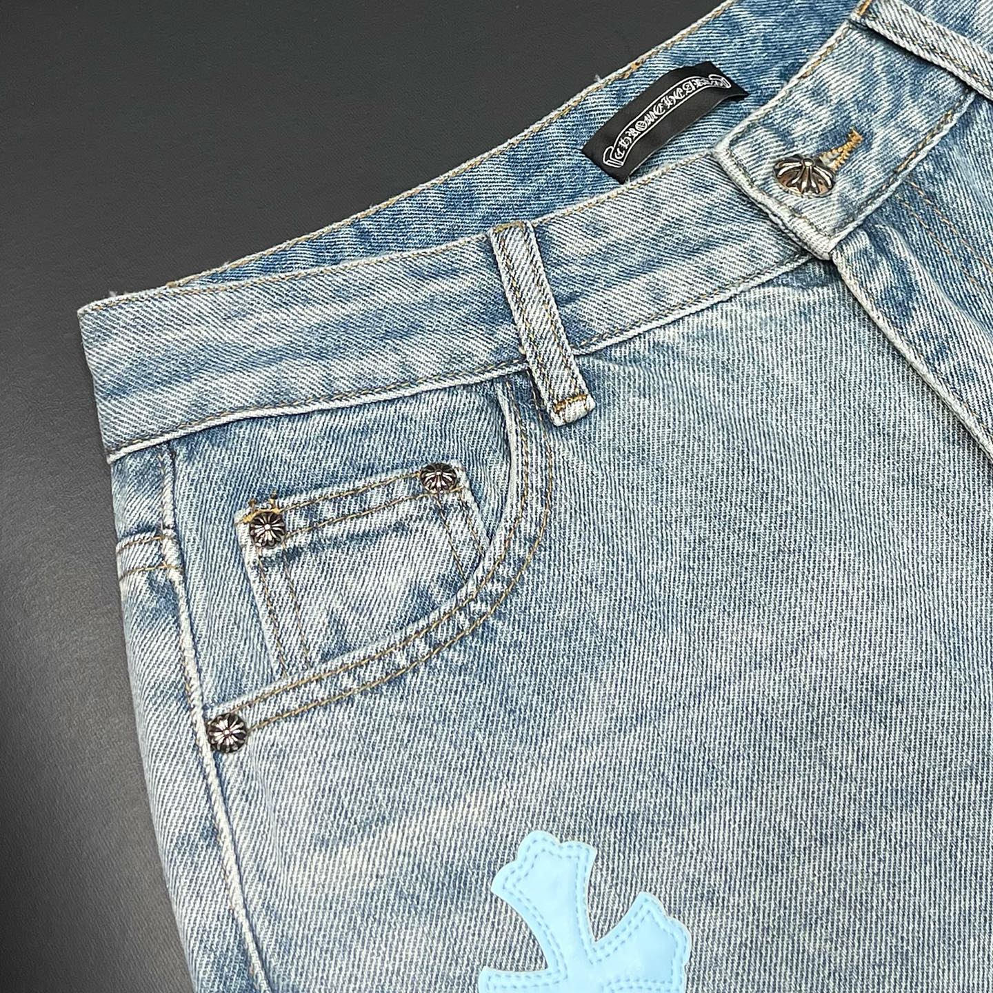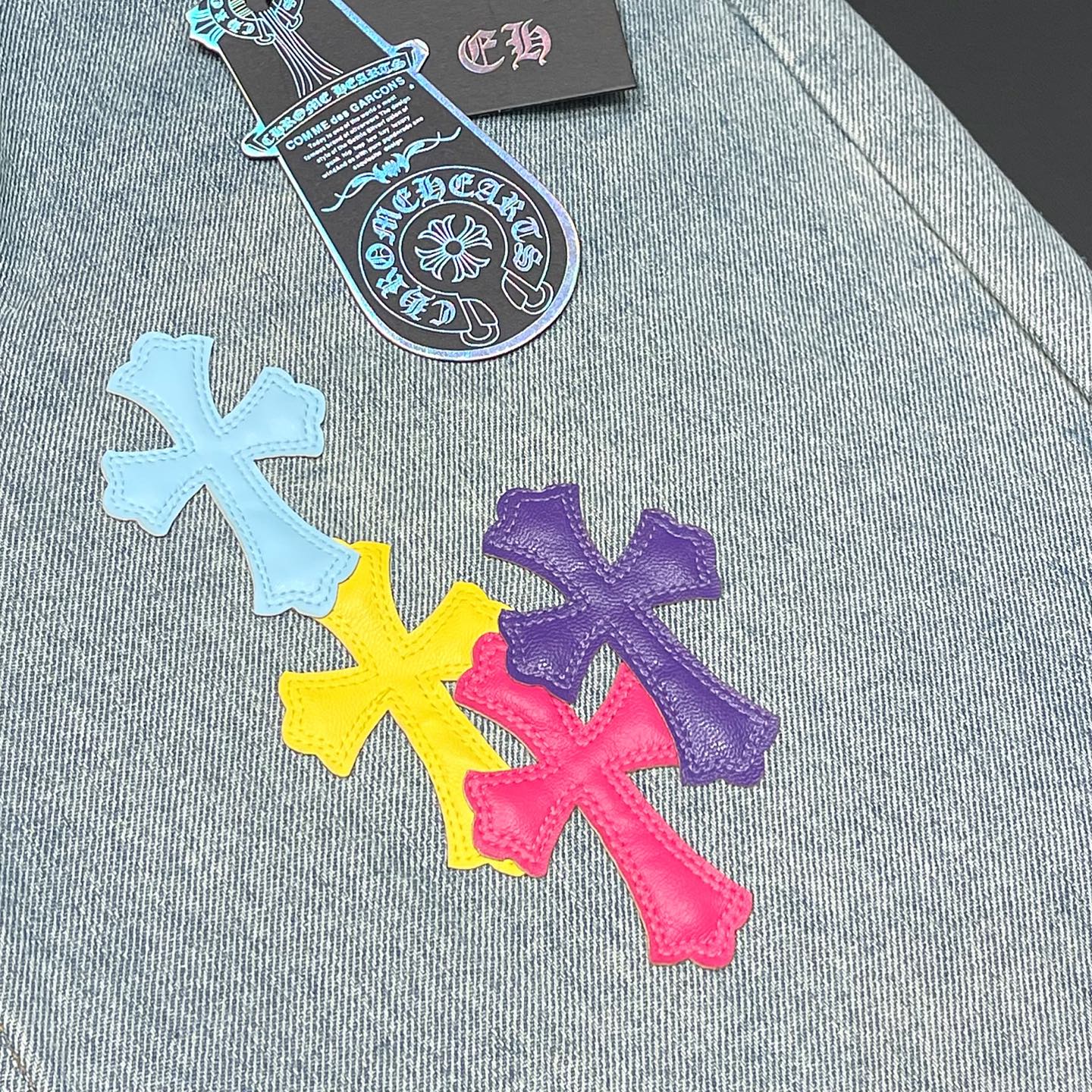 这款衣服是AAAAA 1:1 质量 (非常棒). 使用了和原版一模一样的材料. 商标部分也保持了和克罗心/Chrome Hearts一样. 图片拍摄是实物衣服拍摄, 您所收到的实物保证和我们图片一模一样.