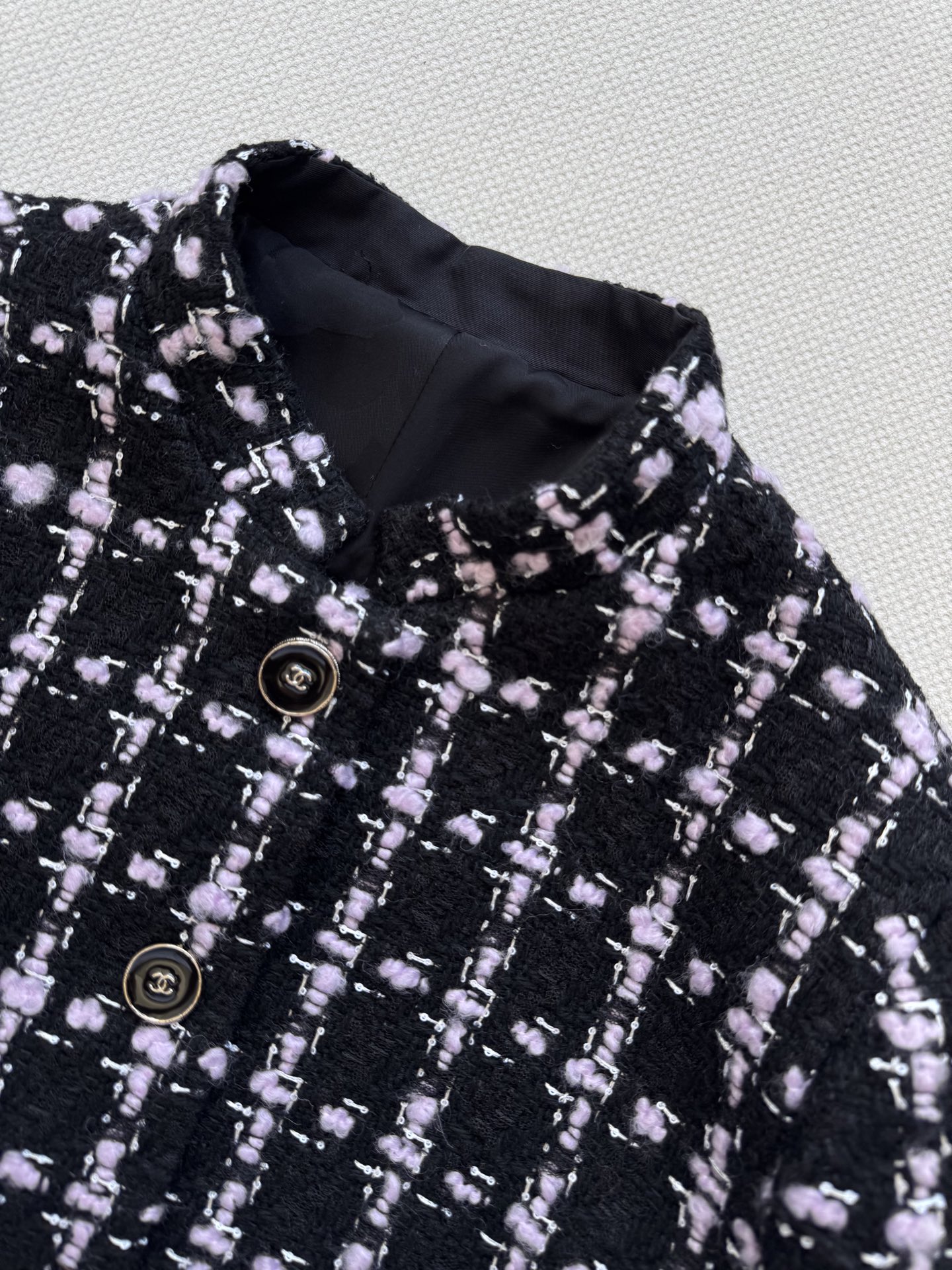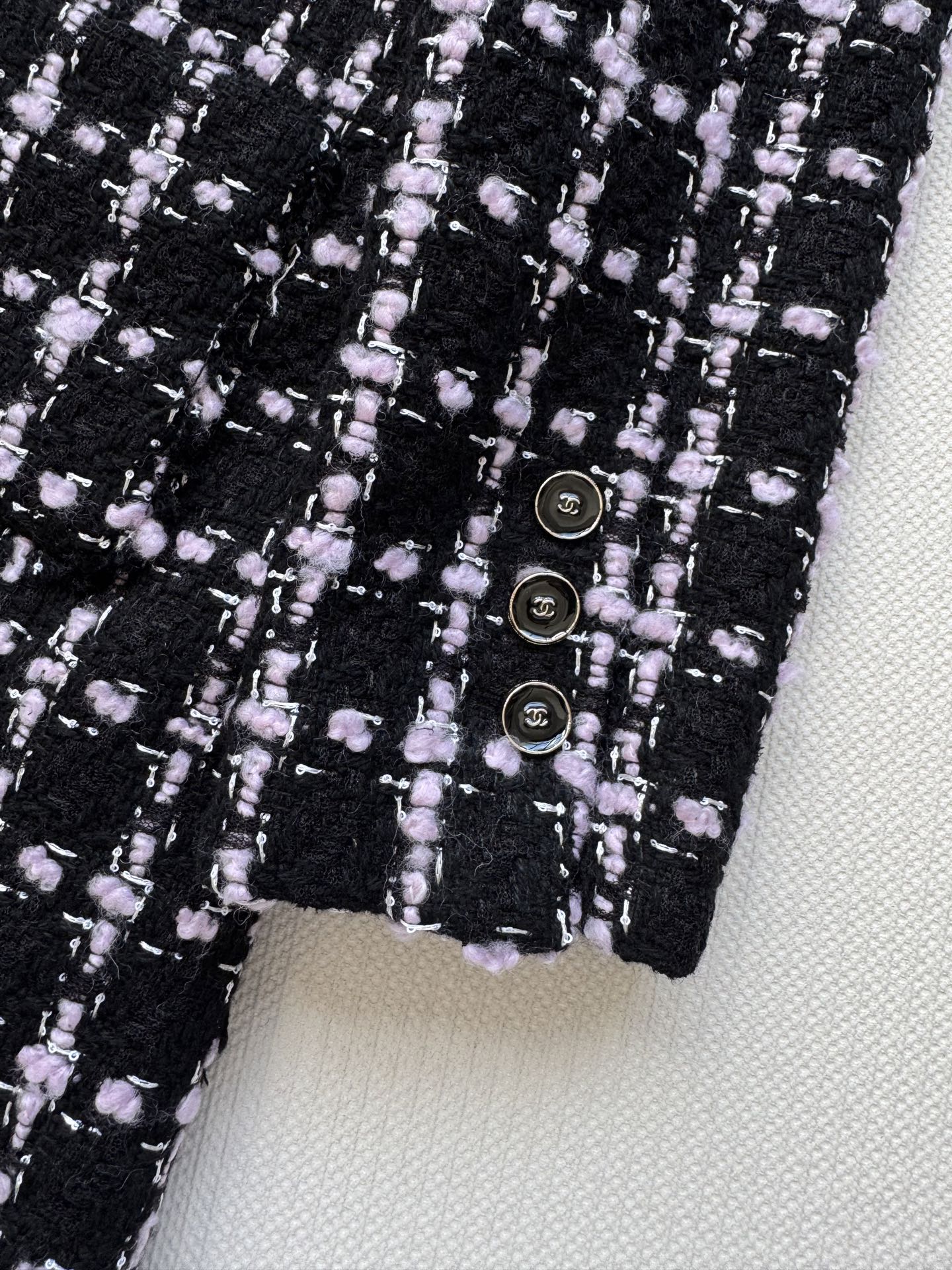 这款衣服是AAAAA 1:1 质量 (非常棒). 使用了和原版一模一样的材料. 商标部分也保持了和香奈儿/Chanel一样. 图片拍摄是实物衣服拍摄, 您所收到的实物保证和我们图片一模一样.