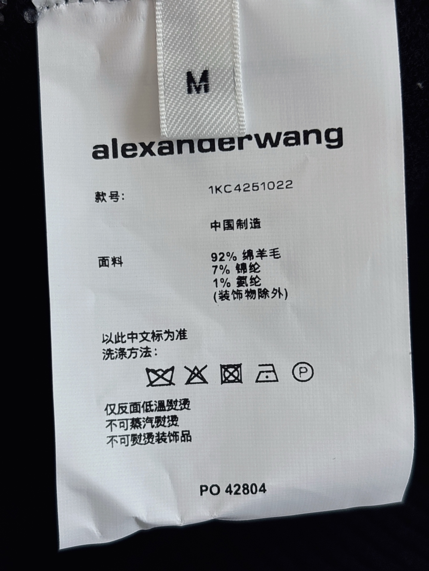 这款衣服是AAAAA 1:1 质量 (非常棒). 使用了和原版一模一样的材料. 商标部分也保持了和亚历山大王/Alexander Wang一样. 图片拍摄是实物衣服拍摄, 您所收到的实物保证和我们图片一模一样.