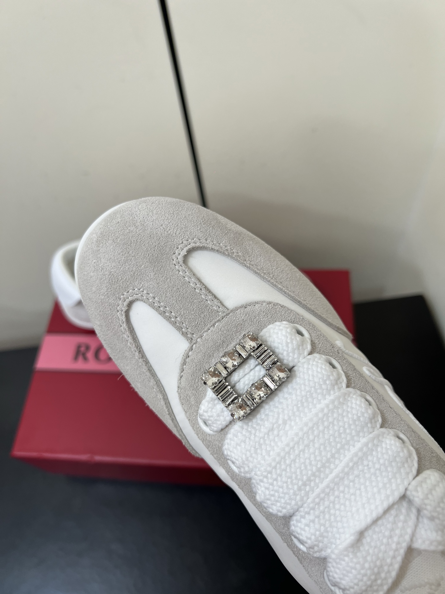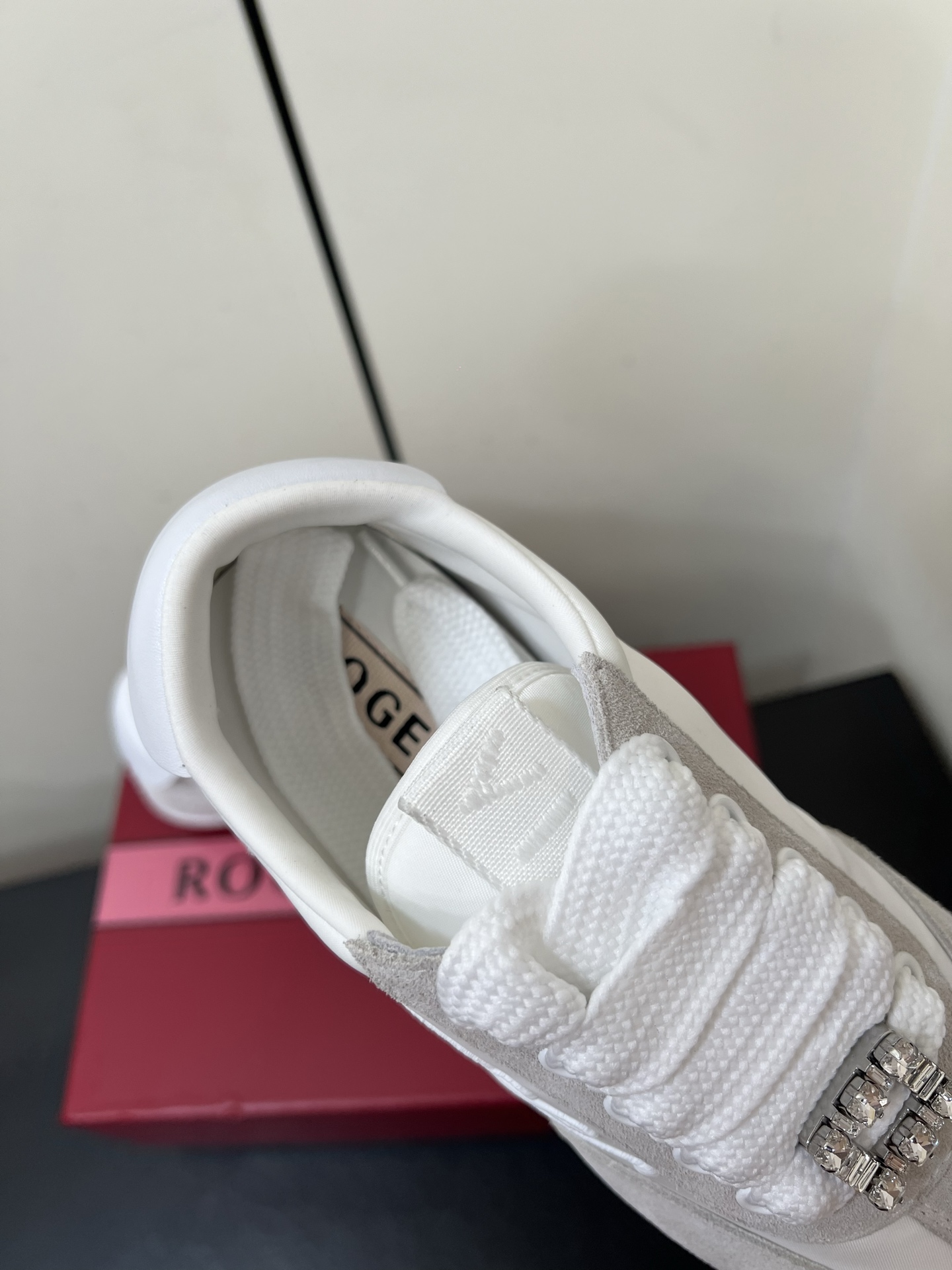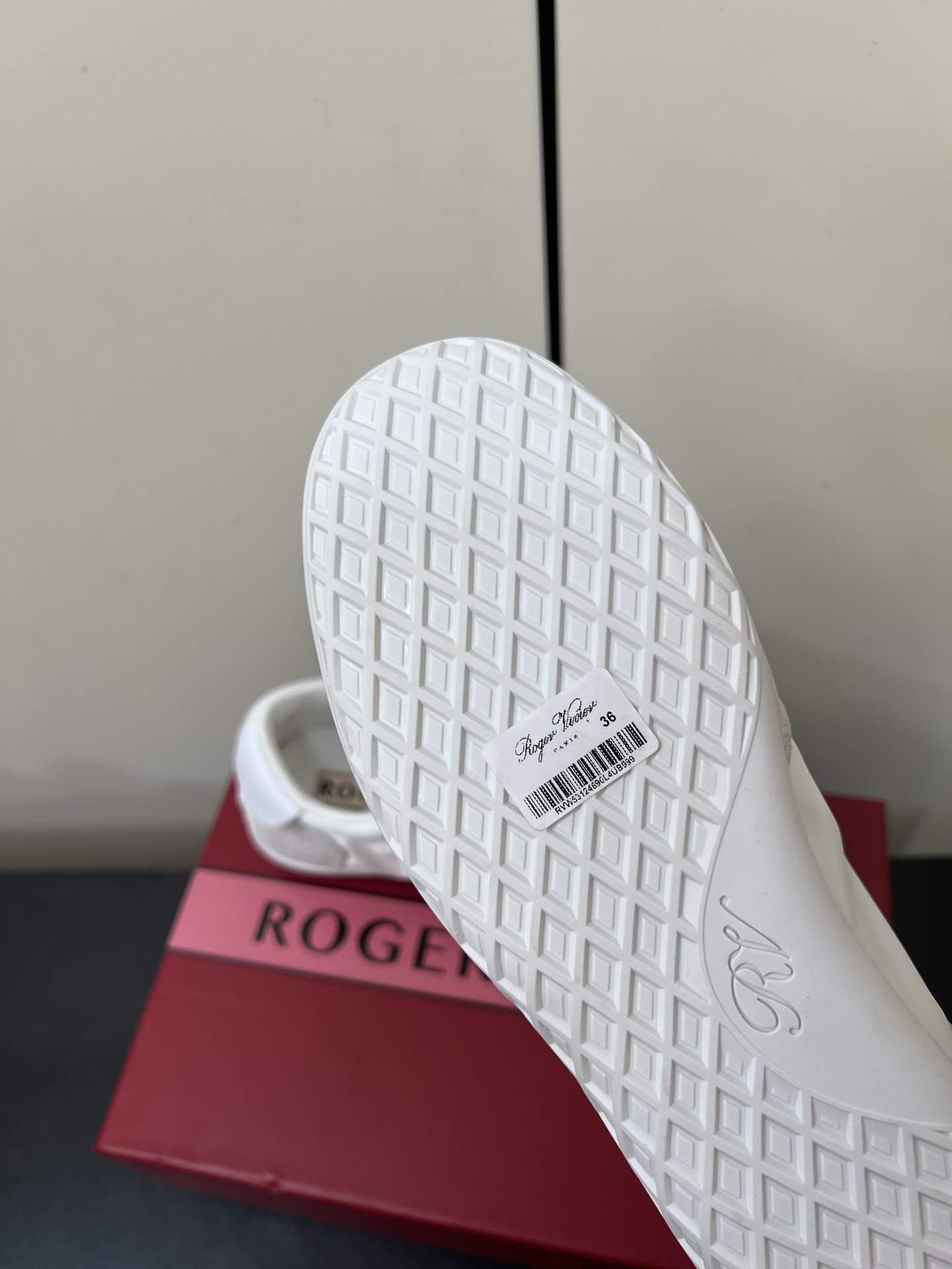 这款鞋子是AAAAA 1:1 质量 (非常棒). 使用了和原版一模一样的材料. 商标部分也保持了和罗杰维维耶/Roger Vivier一样. 图片拍摄是实物鞋子拍摄, 您所收到的实物保证和我们图片一模一样.