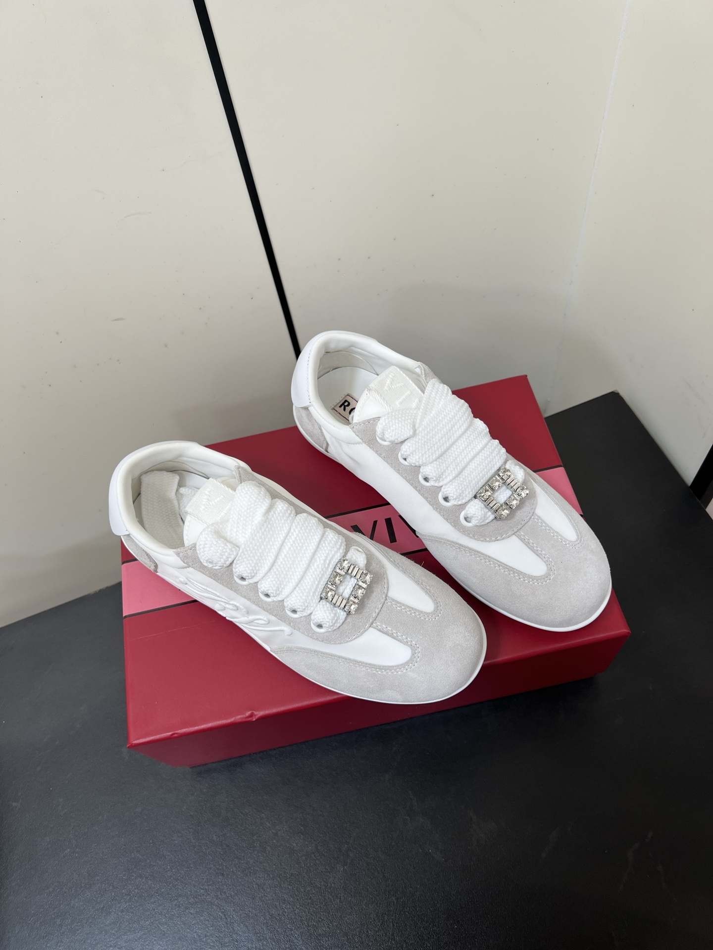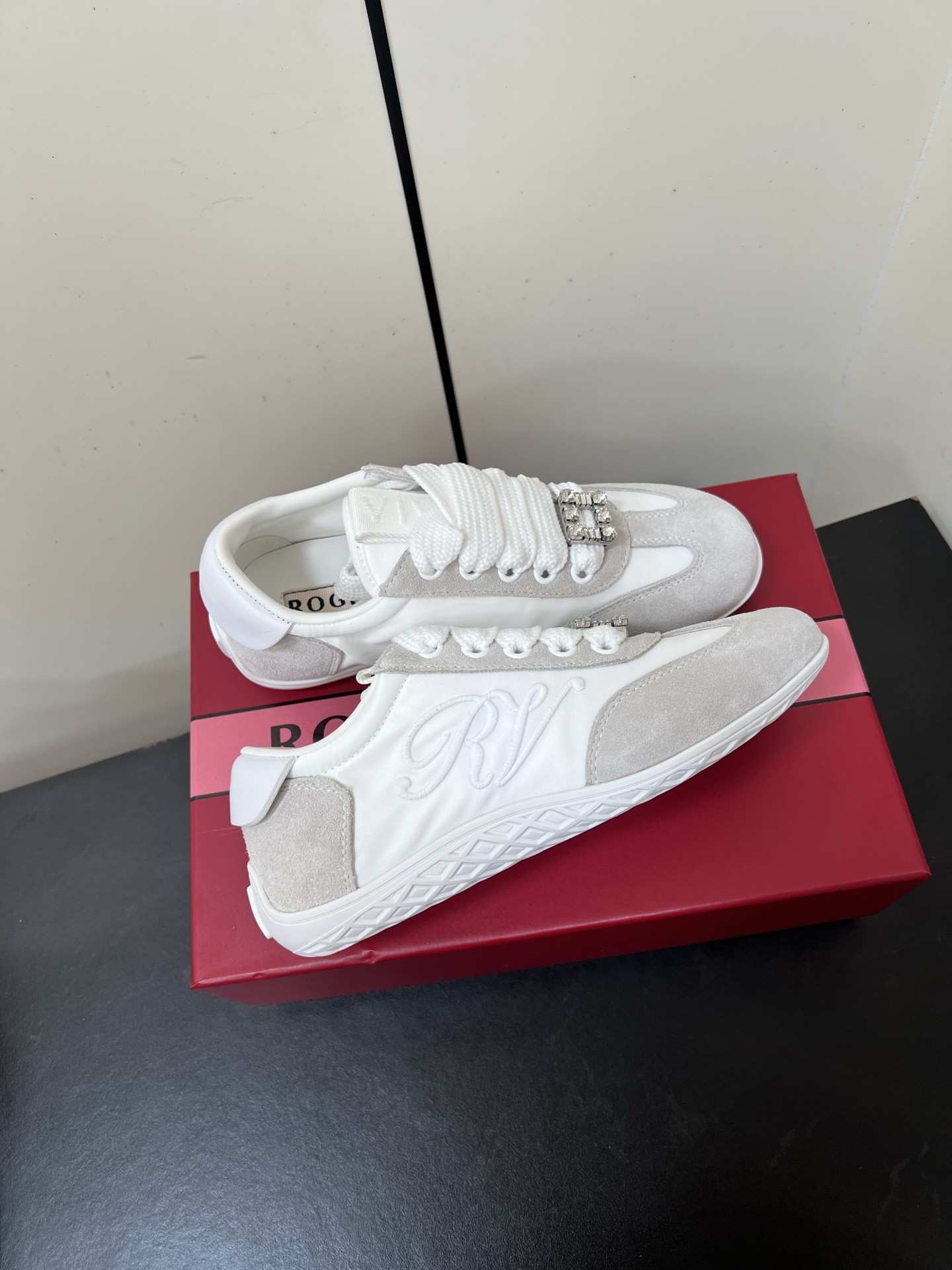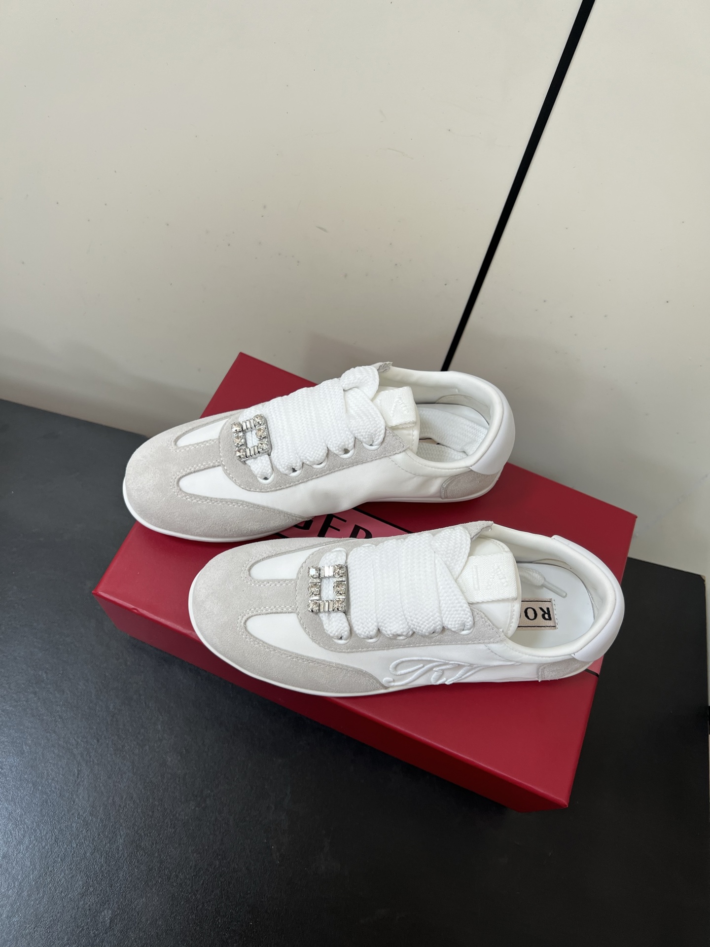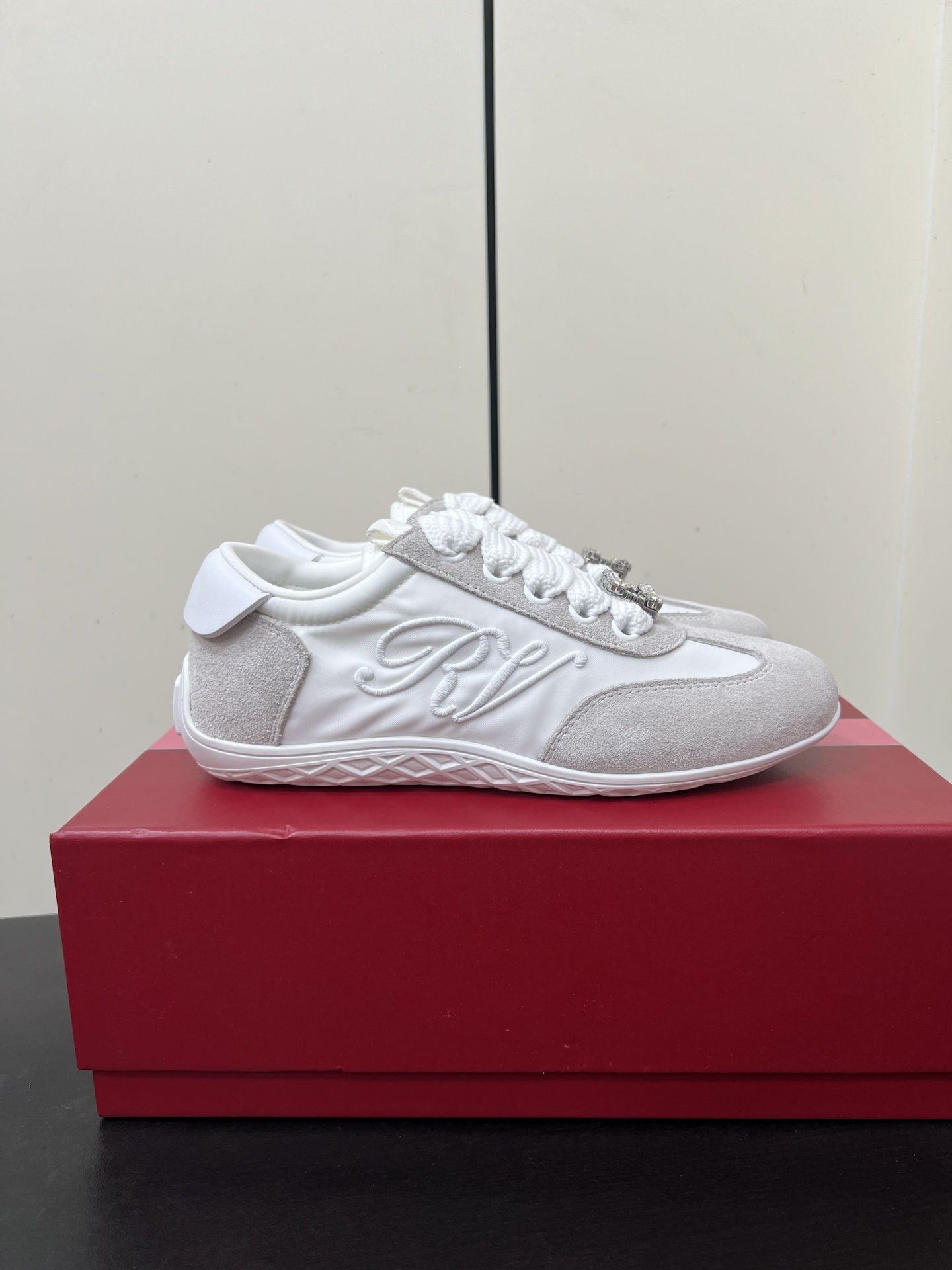 这款鞋子是AAAAA 1:1 质量 (非常棒). 使用了和原版一模一样的材料. 商标部分也保持了和罗杰维维耶/Roger Vivier一样. 图片拍摄是实物鞋子拍摄, 您所收到的实物保证和我们图片一模一样.