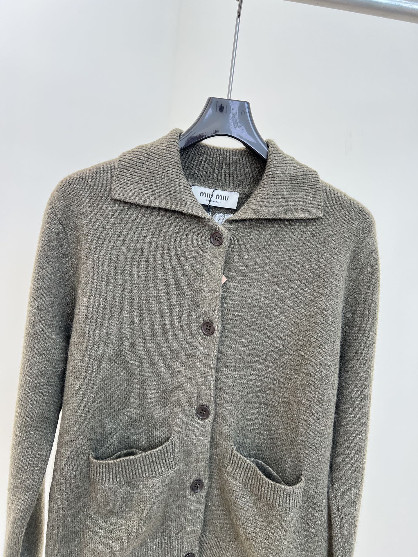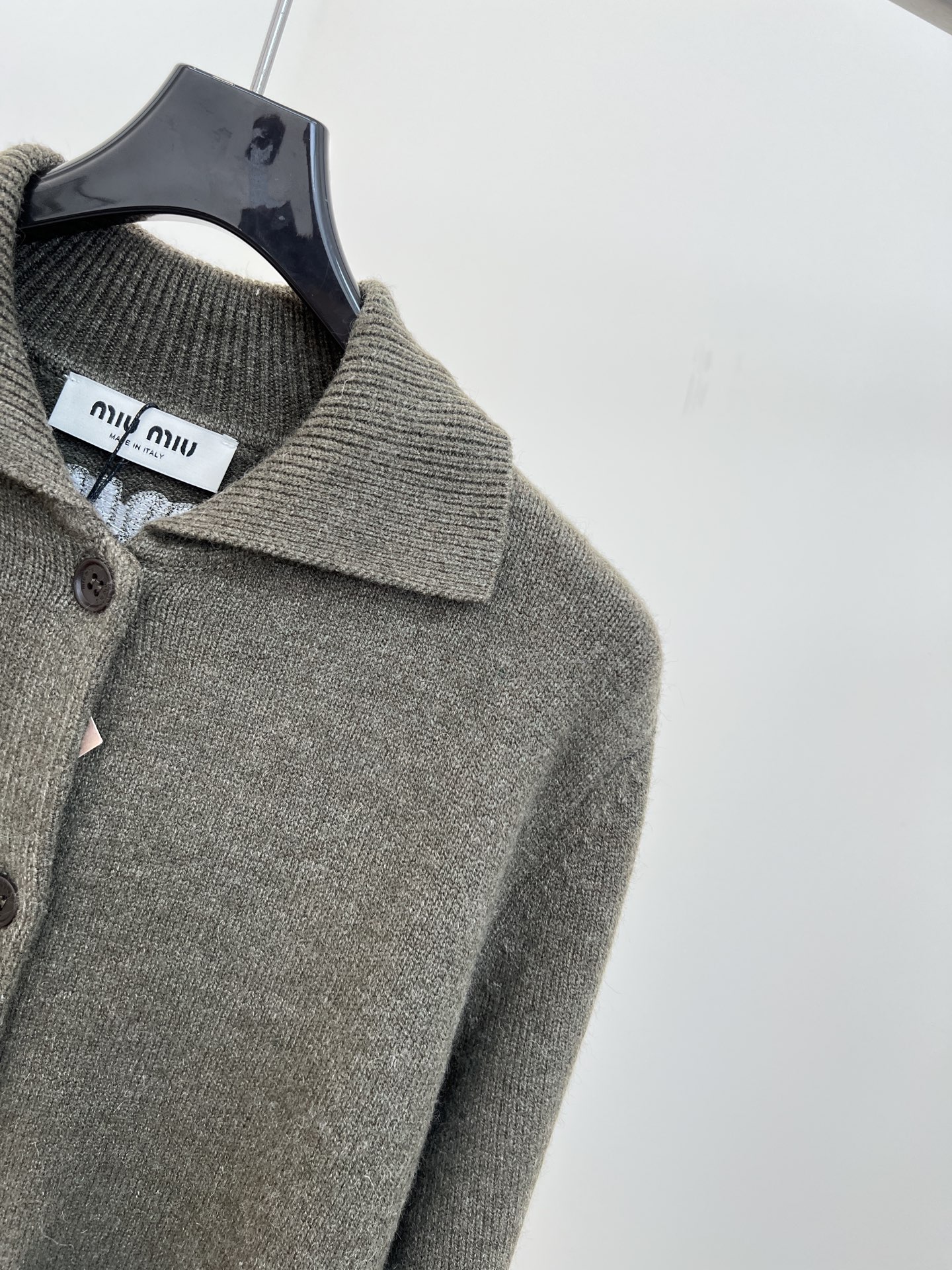 这款衣服是AAAAA 1:1 质量 (非常棒). 使用了和原版一模一样的材料. 商标部分也保持了和缪缪/Miu Miu一样. 图片拍摄是实物衣服拍摄, 您所收到的实物保证和我们图片一模一样.
