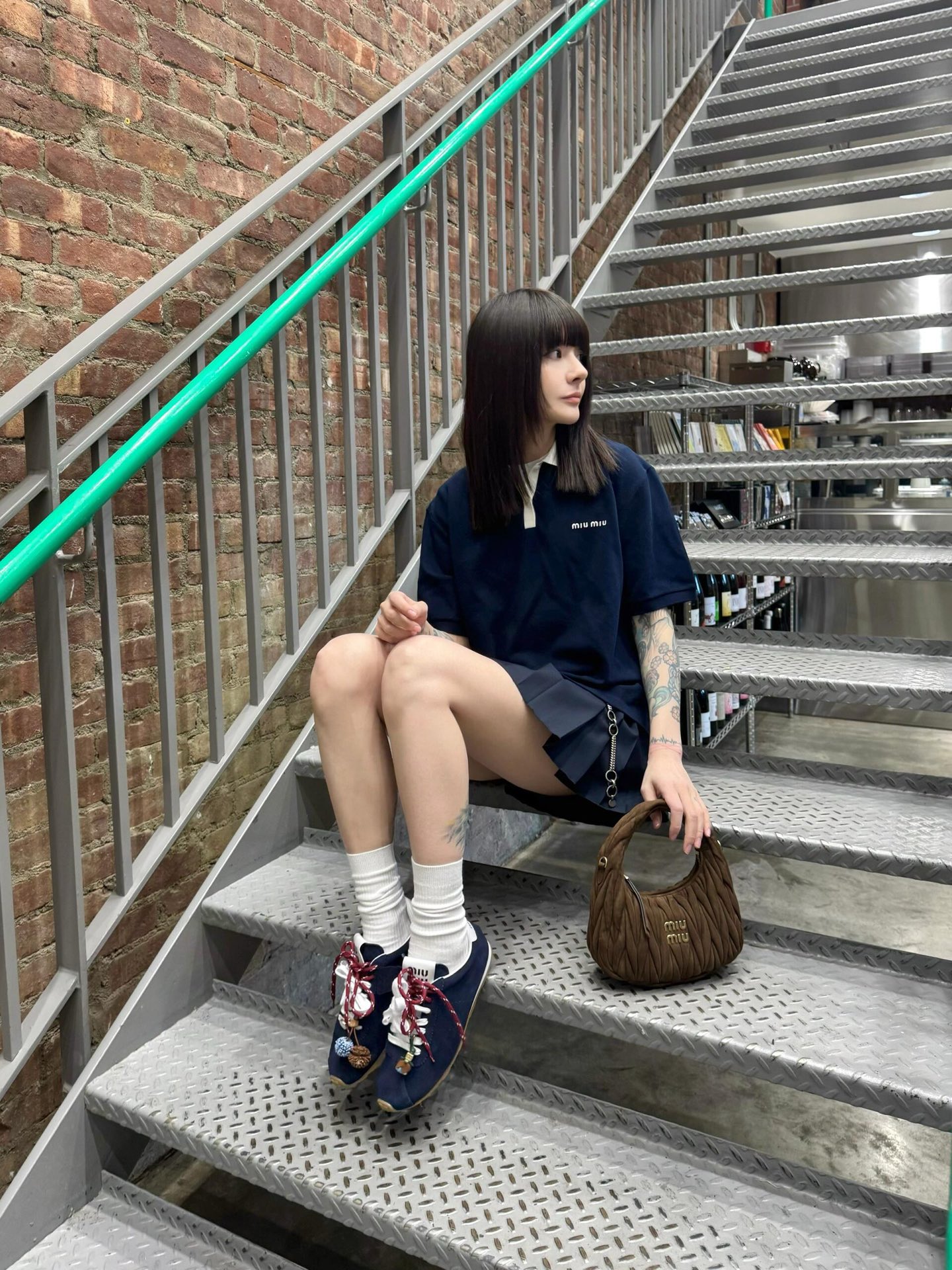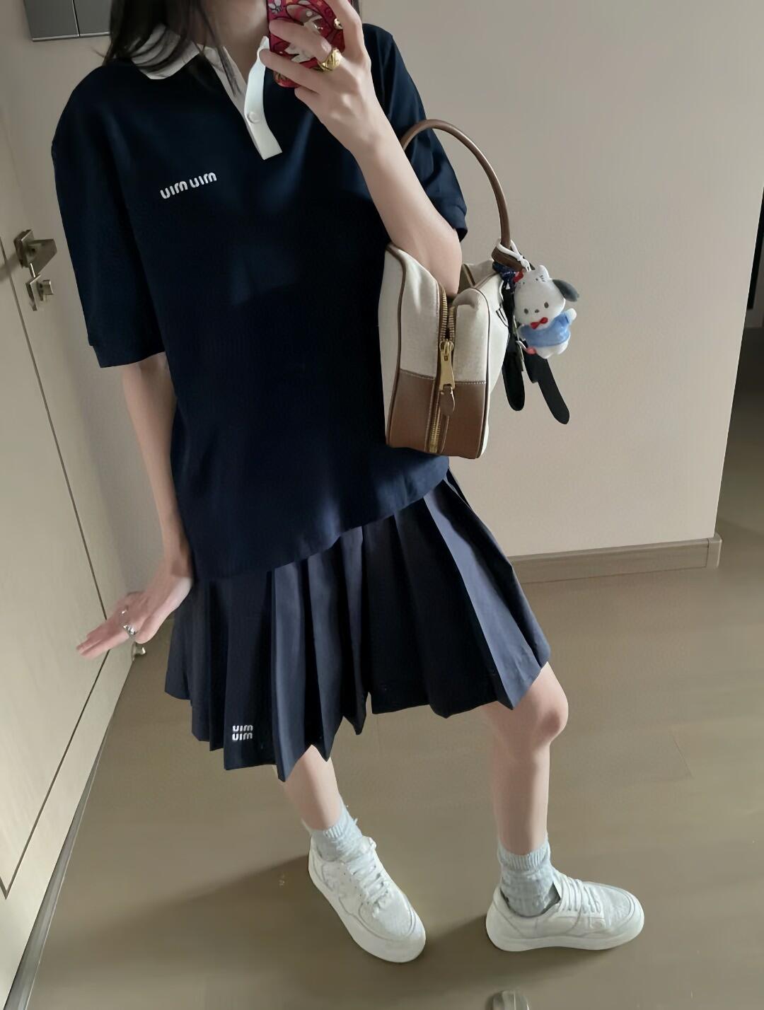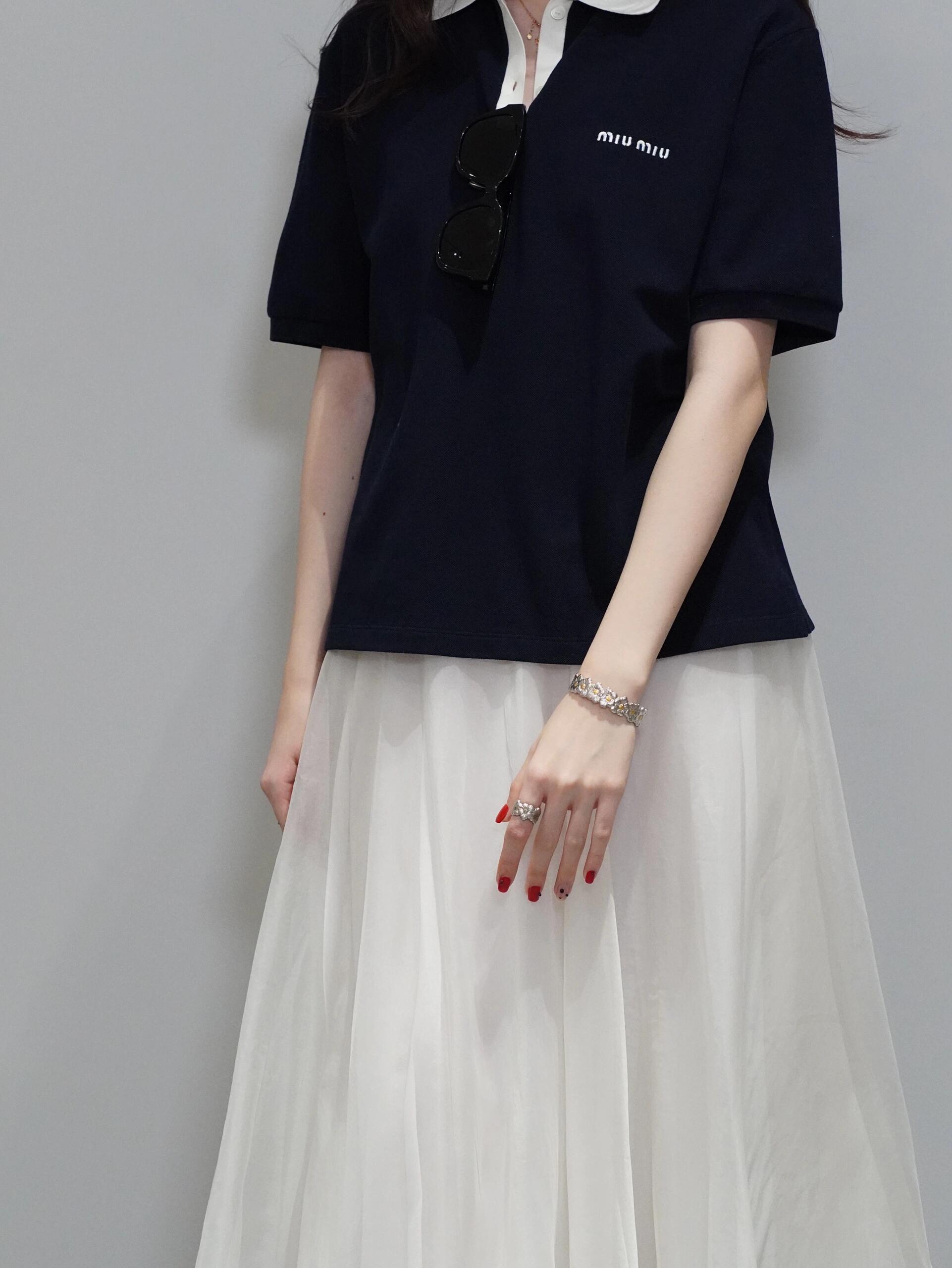 这款衣服是AAAAA 1:1 质量 (非常棒). 使用了和原版一模一样的材料. 商标部分也保持了和缪缪/Miu Miu一样. 图片拍摄是实物衣服拍摄, 您所收到的实物保证和我们图片一模一样.