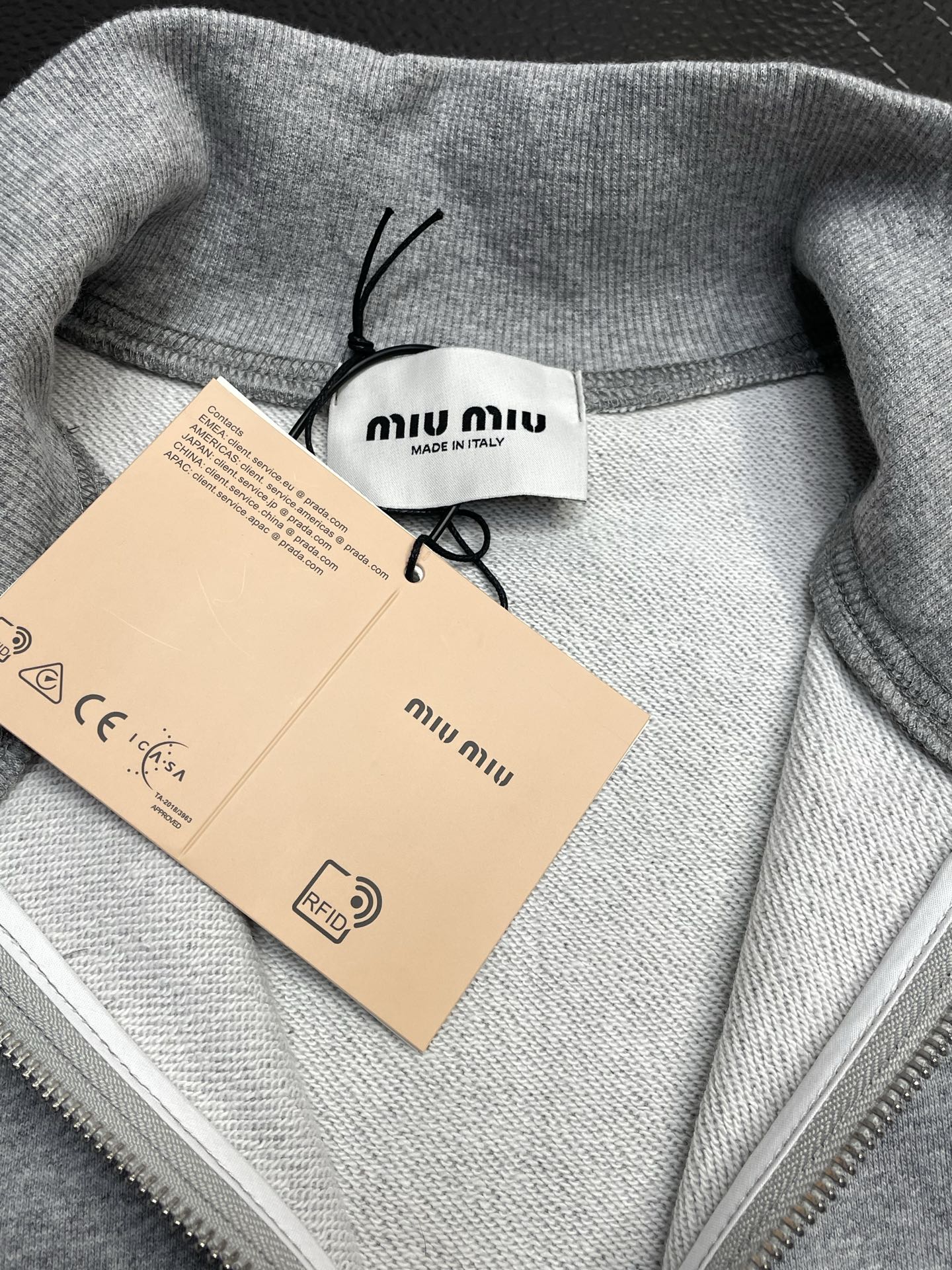这款衣服是AAAAA 1:1 质量 (非常棒). 使用了和原版一模一样的材料. 商标部分也保持了和缪缪/Miu Miu一样. 图片拍摄是实物衣服拍摄, 您所收到的实物保证和我们图片一模一样.