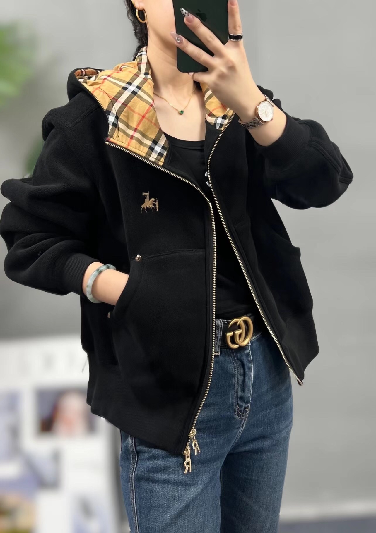 这款衣服是AAAAA 1:1 质量 (非常棒). 使用了和原版一模一样的材料. 商标部分也保持了和巴宝莉/Burberry一样. 图片拍摄是实物衣服拍摄, 您所收到的实物保证和我们图片一模一样.