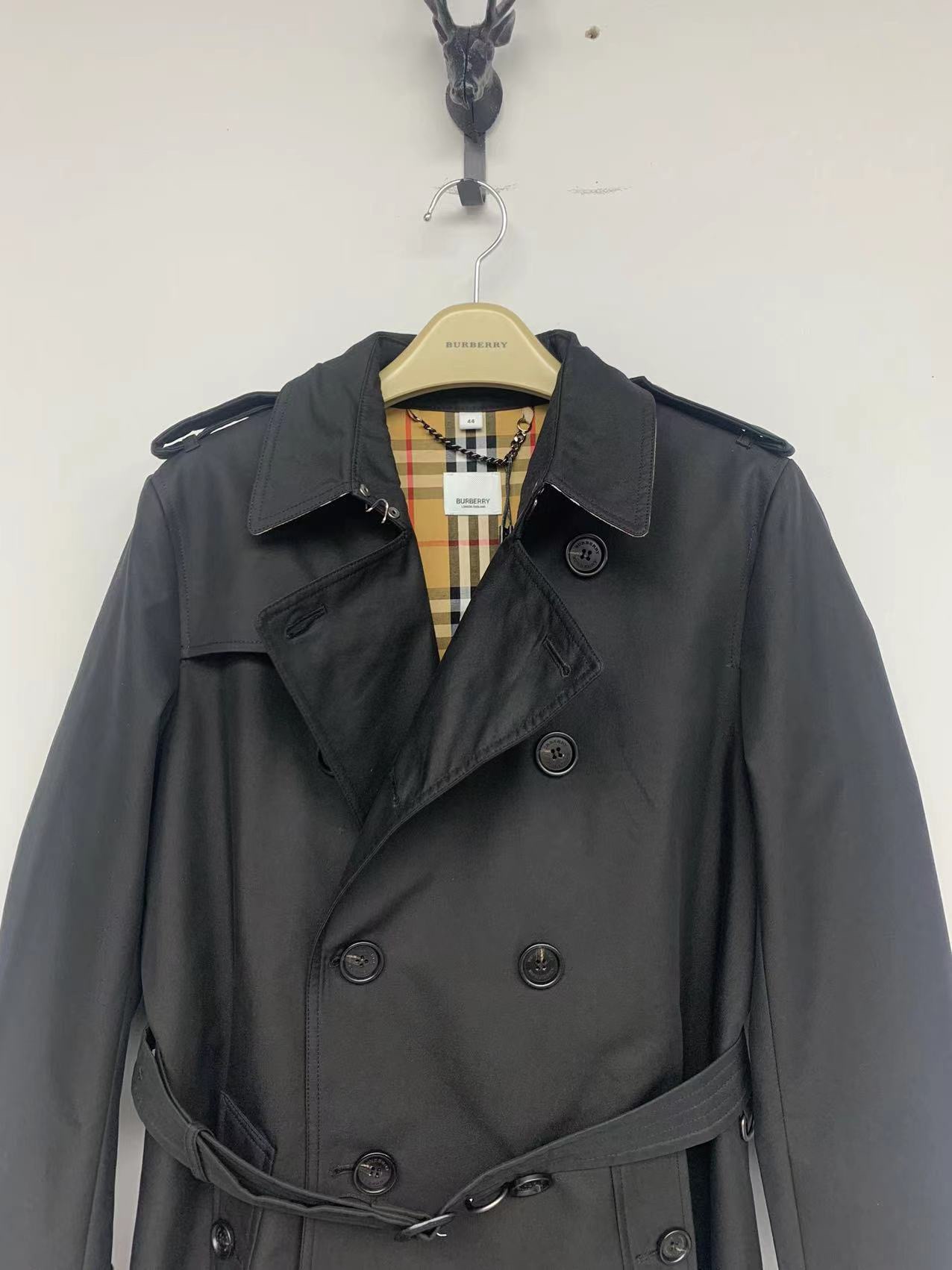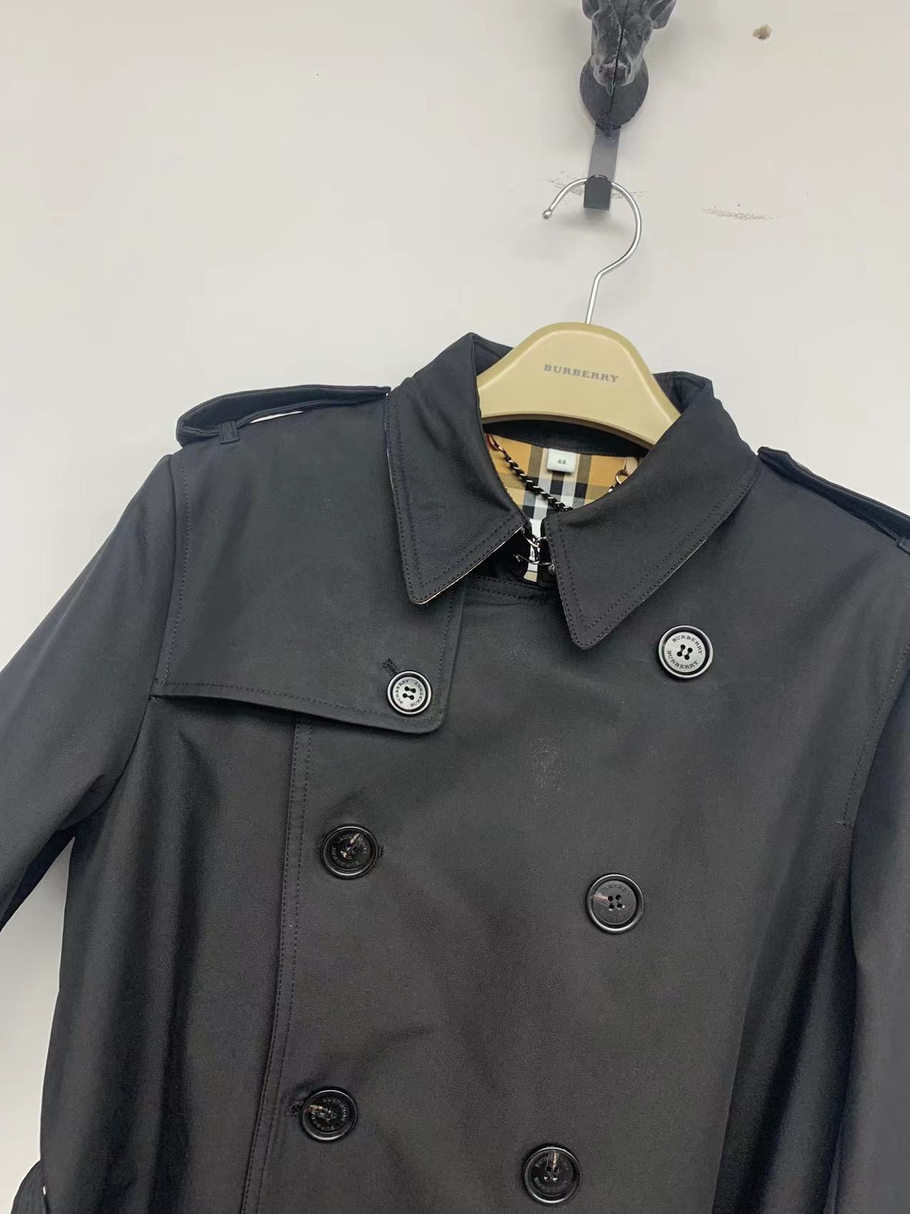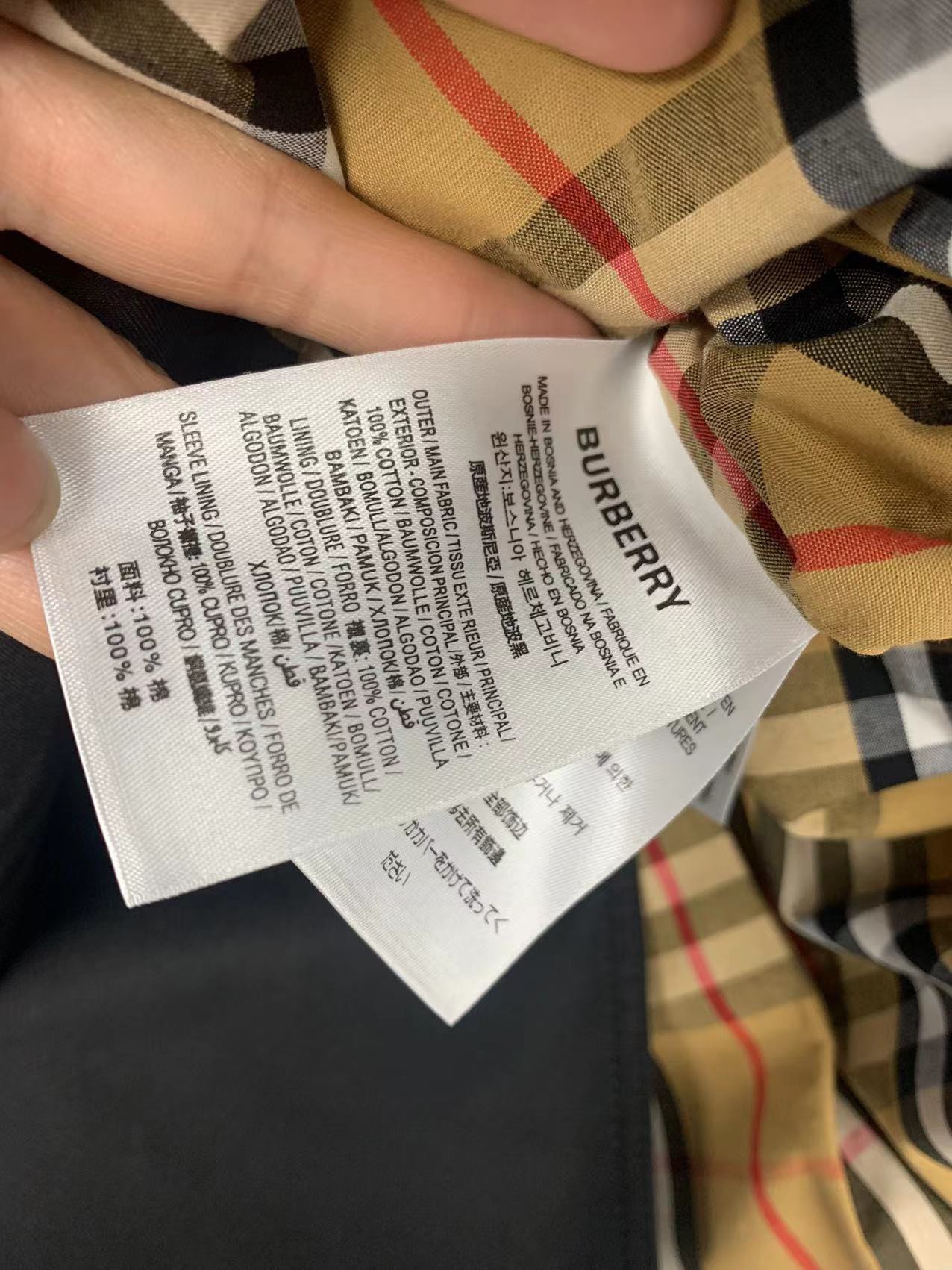 这款衣服是AAAAA 1:1 质量 (非常棒). 使用了和原版一模一样的材料. 商标部分也保持了和巴宝莉/Burberry一样. 图片拍摄是实物衣服拍摄, 您所收到的实物保证和我们图片一模一样.