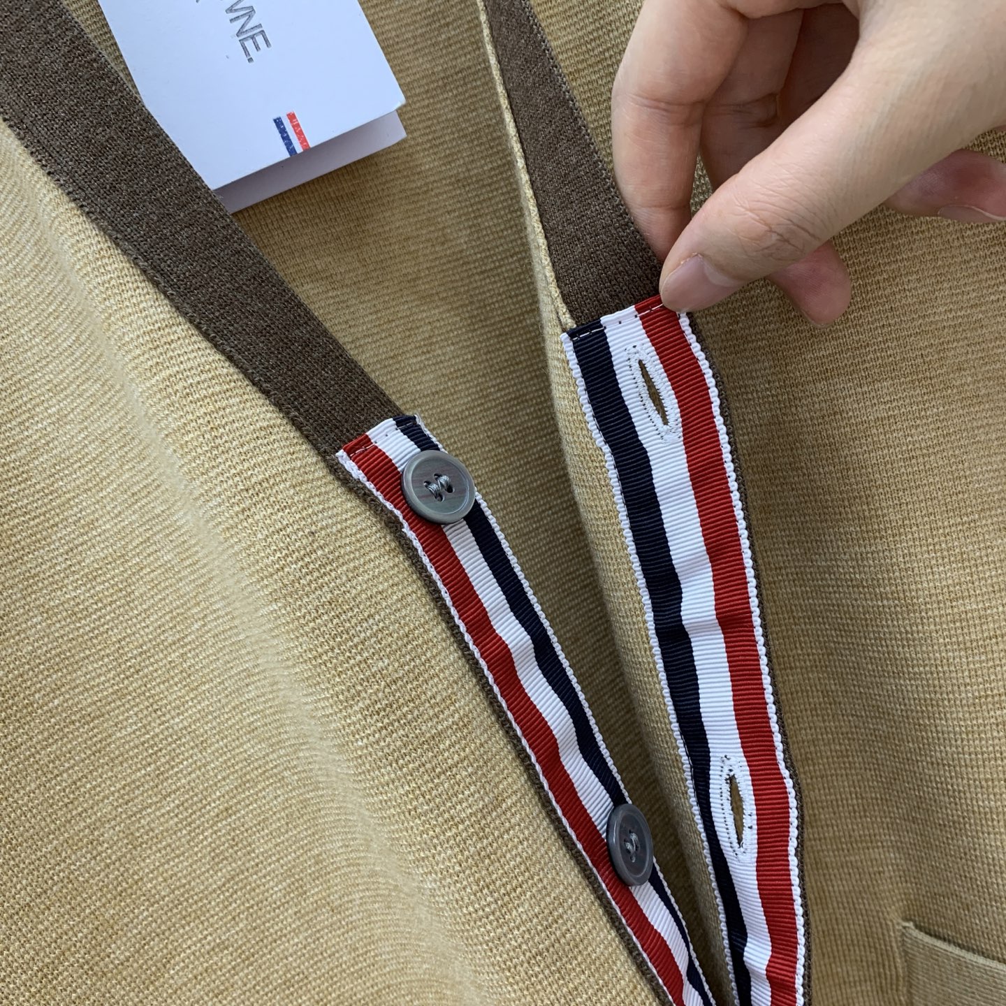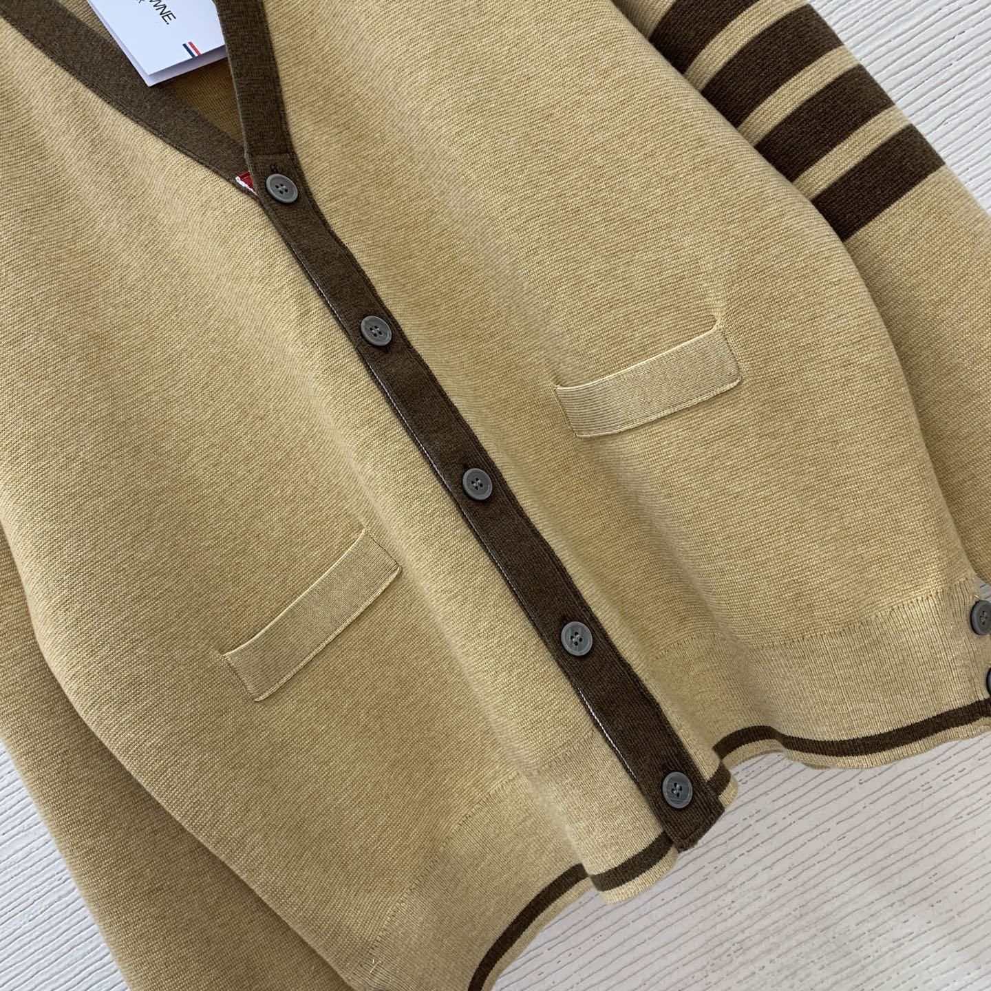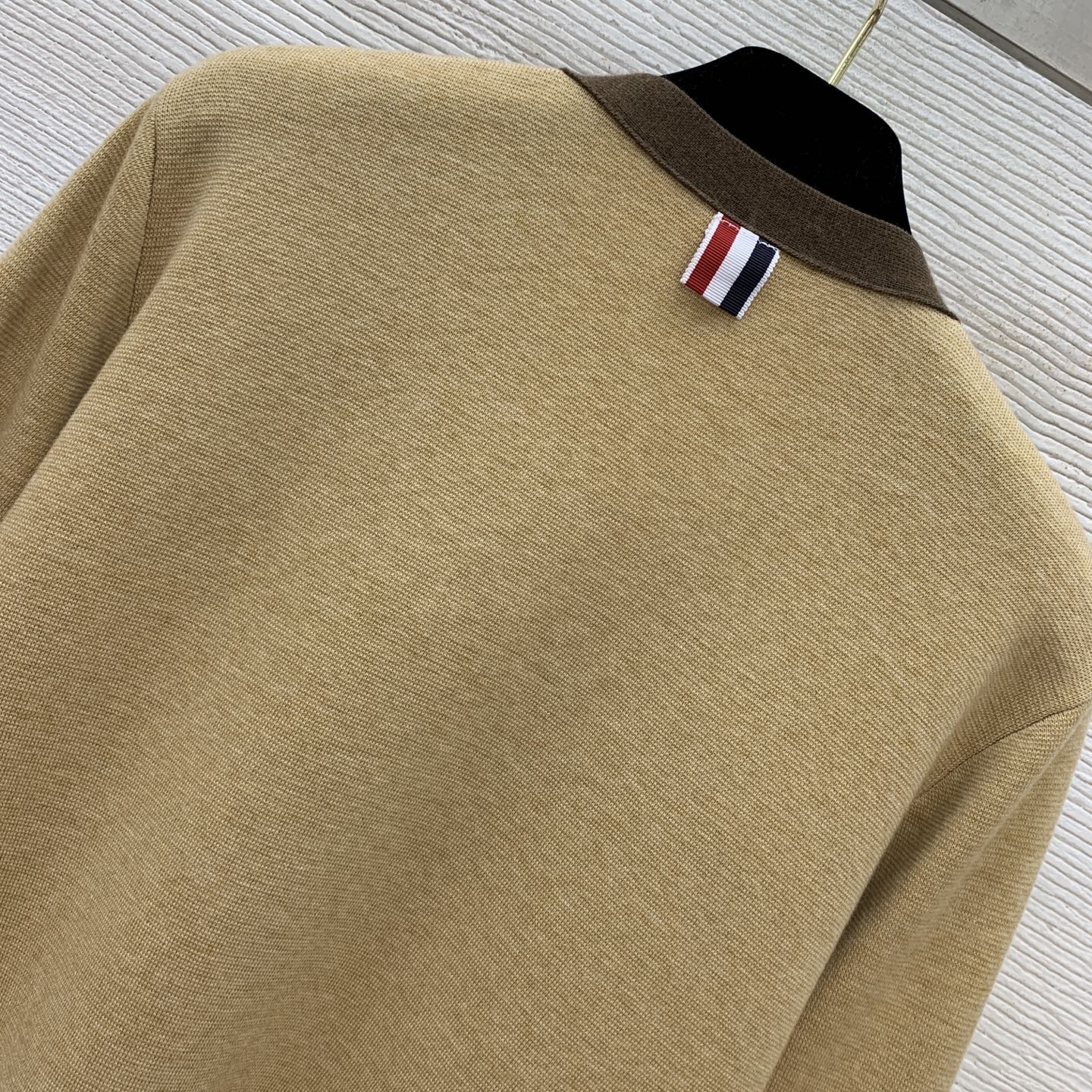 这款衣服是AAAAA 1:1 质量 (非常棒). 使用了和原版一模一样的材料. 商标部分也保持了和汤姆布朗/Thom Browne一样. 图片拍摄是实物衣服拍摄, 您所收到的实物保证和我们图片一模一样.