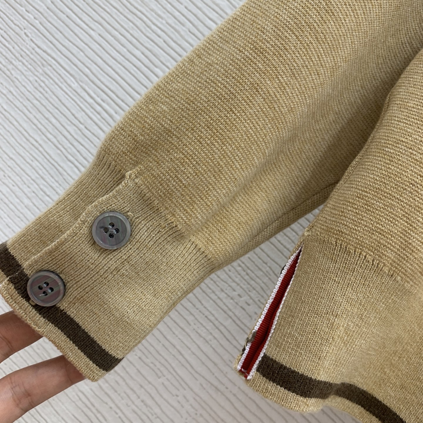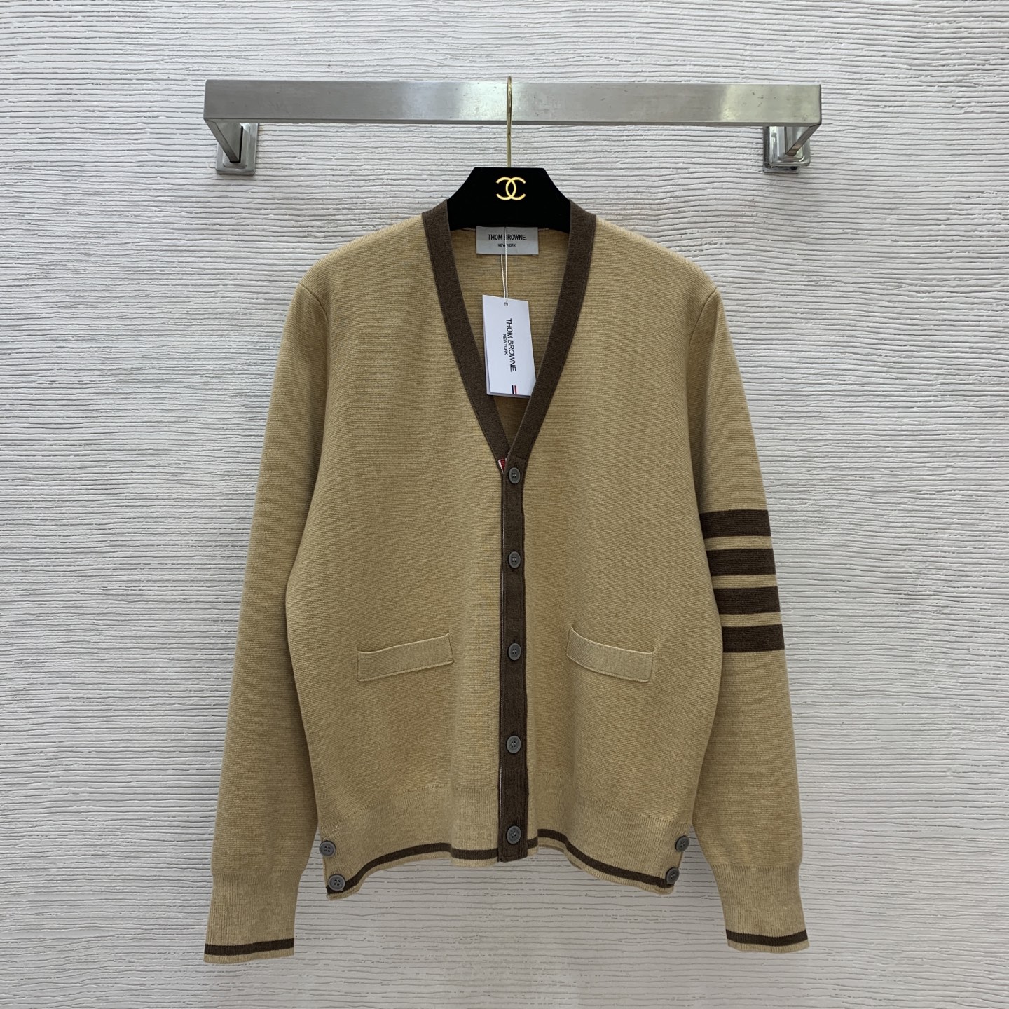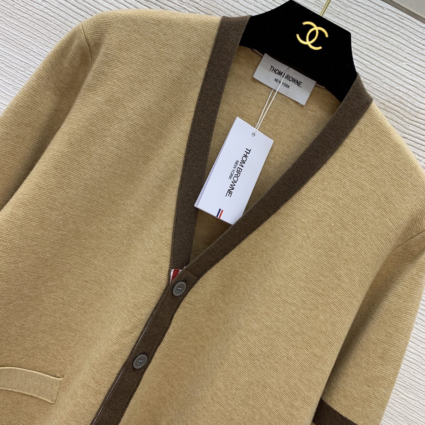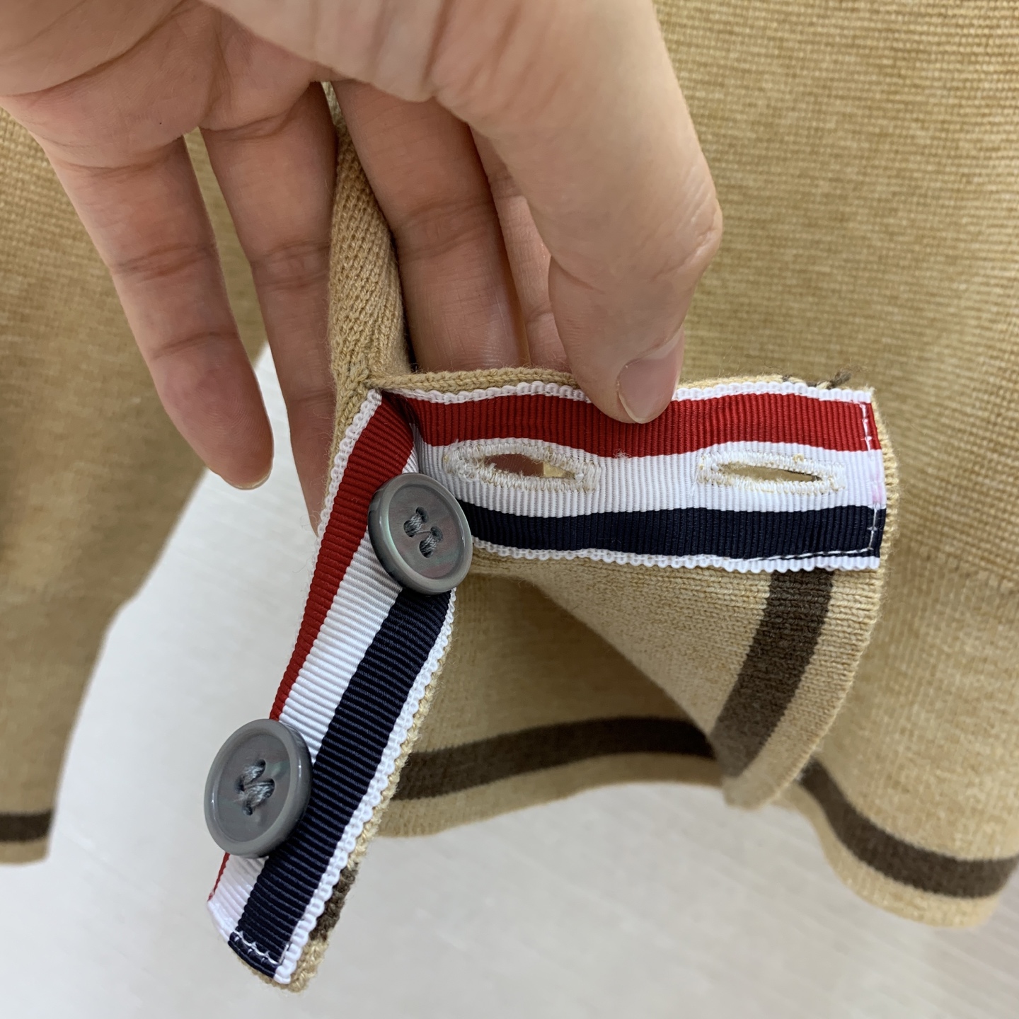 这款衣服是AAAAA 1:1 质量 (非常棒). 使用了和原版一模一样的材料. 商标部分也保持了和汤姆布朗/Thom Browne一样. 图片拍摄是实物衣服拍摄, 您所收到的实物保证和我们图片一模一样.